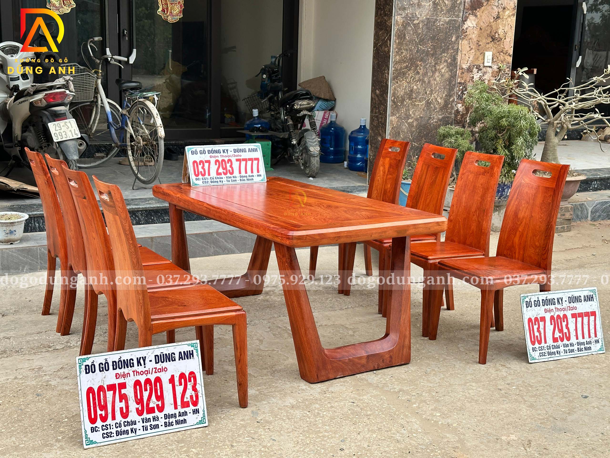 Đồ Gỗ Dũng Anh | Hoàn Thiện Sơn PU Bàn Ăn 8 Ghế Hiện Đại – Bàn Chữ Nhật – Gỗ Hương Đá