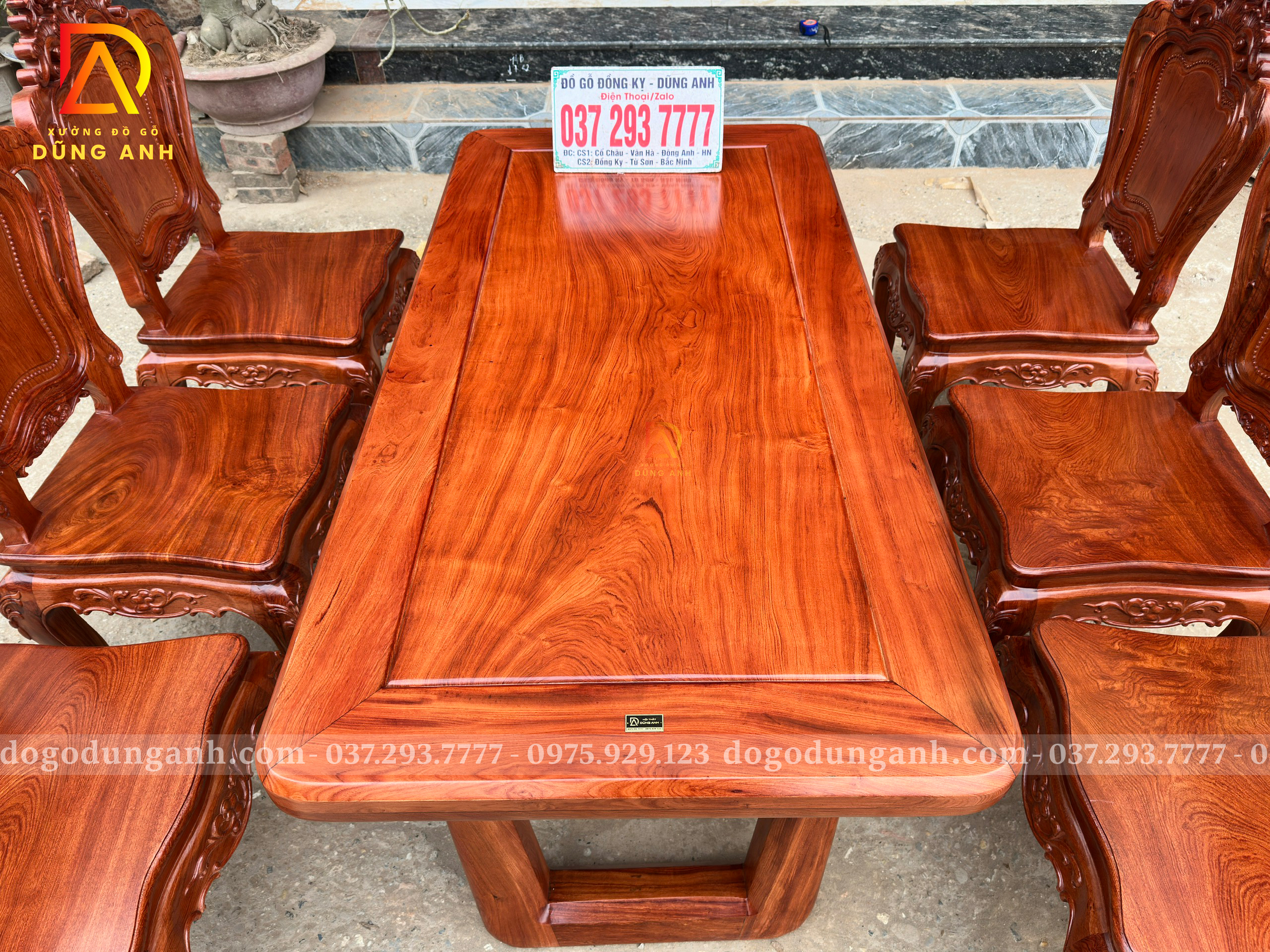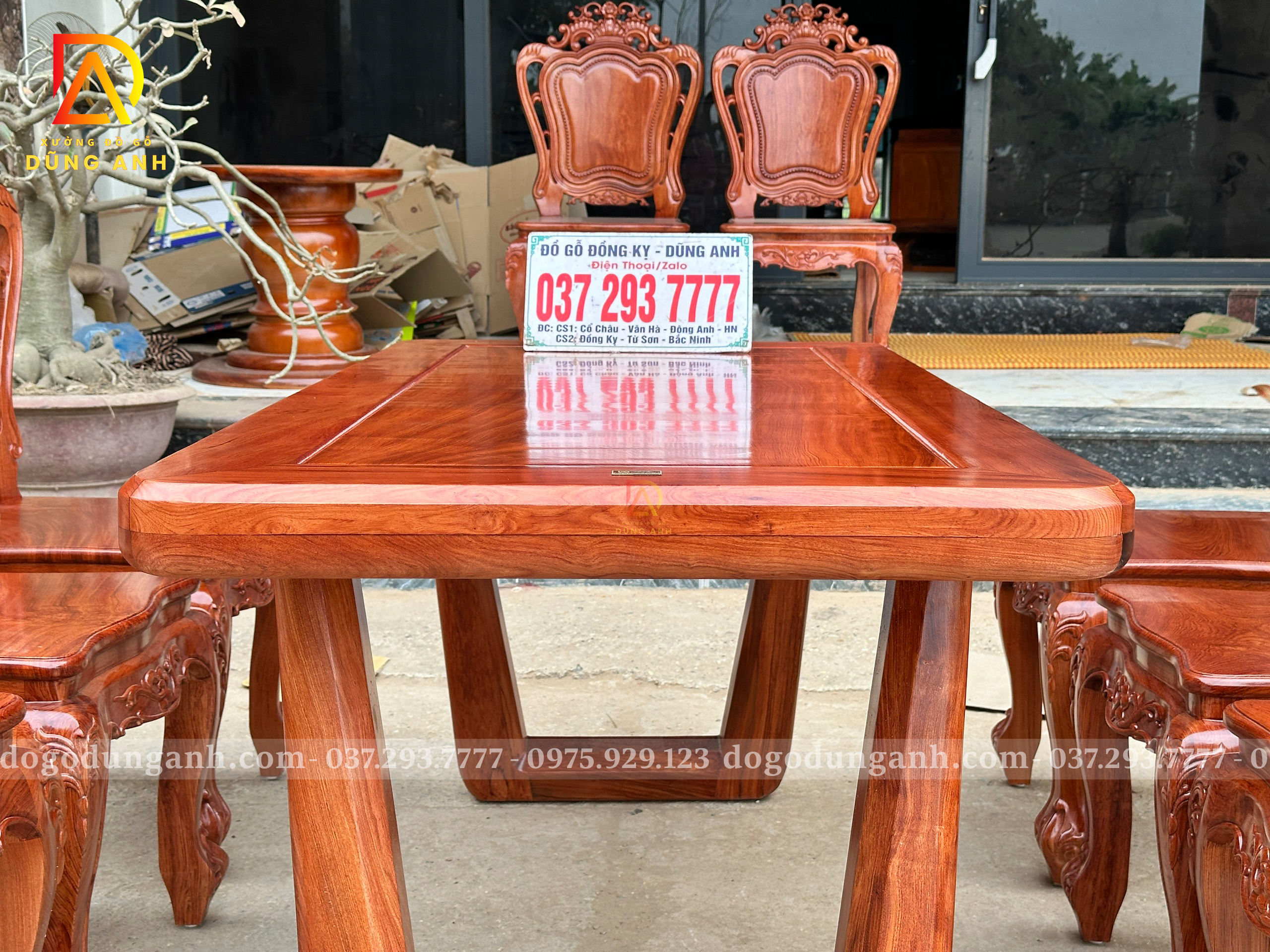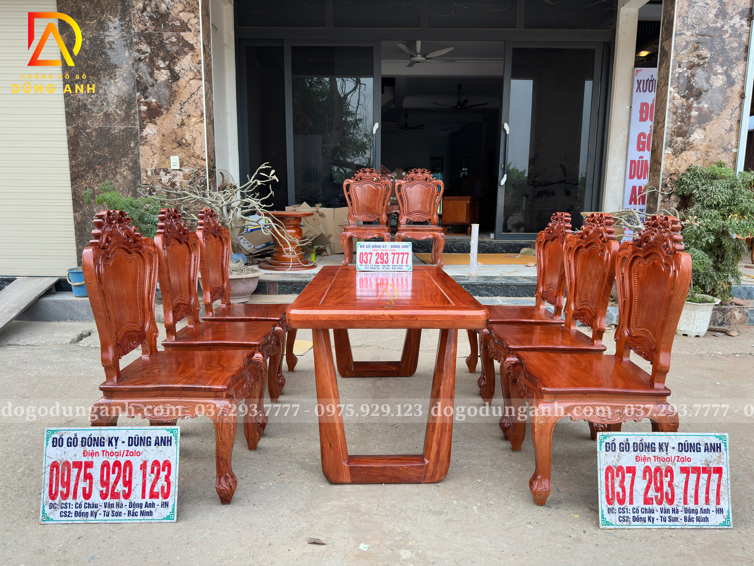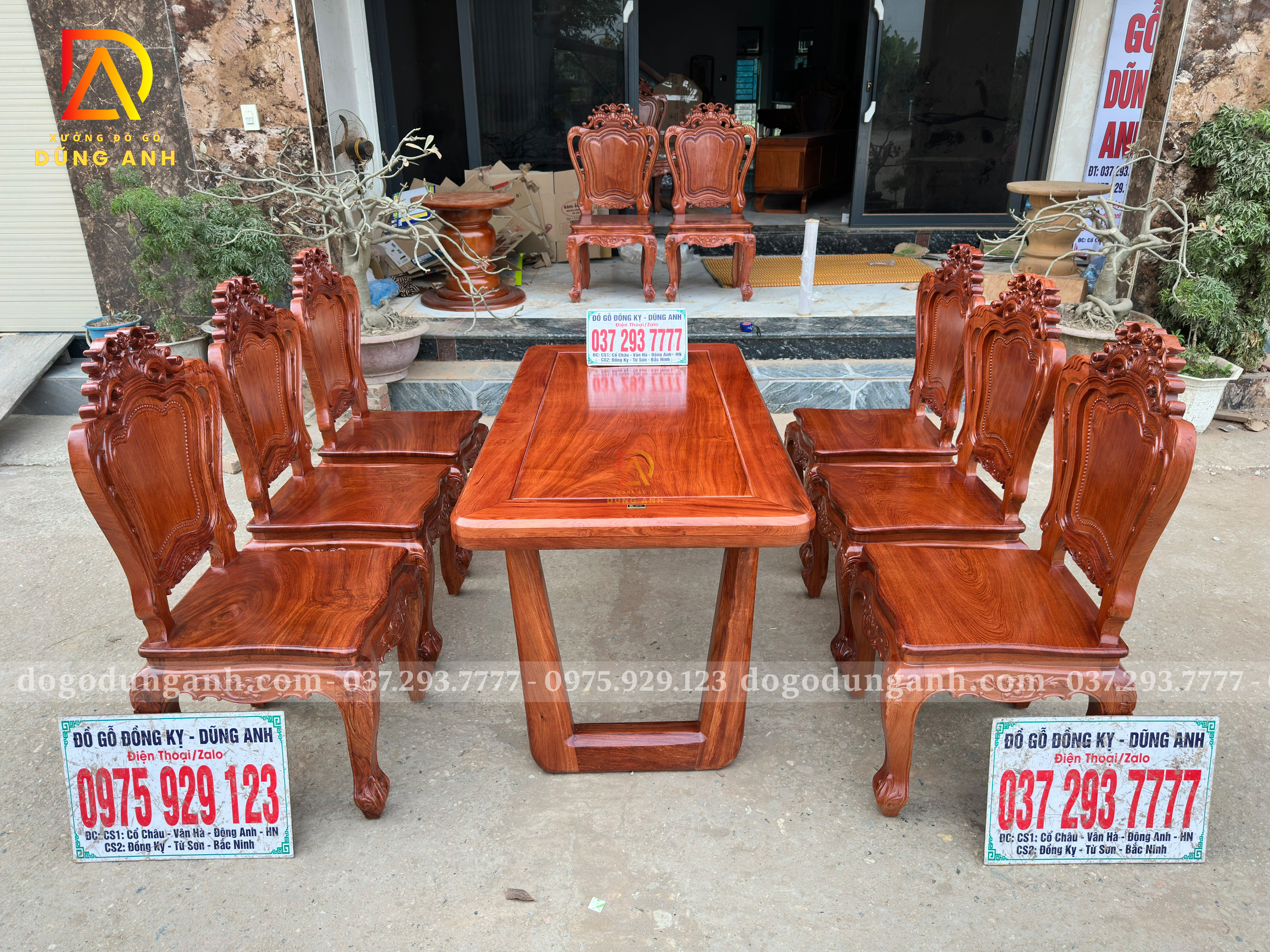 Đồ Gỗ Dũng Anh | Hoàn Thiện Sơn PU – Bộ Bàn Ăn 6 Ghế Louis Hoàng Gia + Bàn Chữ Nhật Hiện Đại + Gỗ Hương Đá