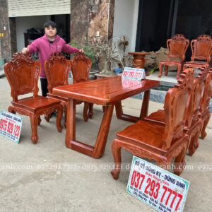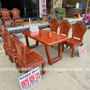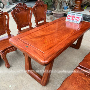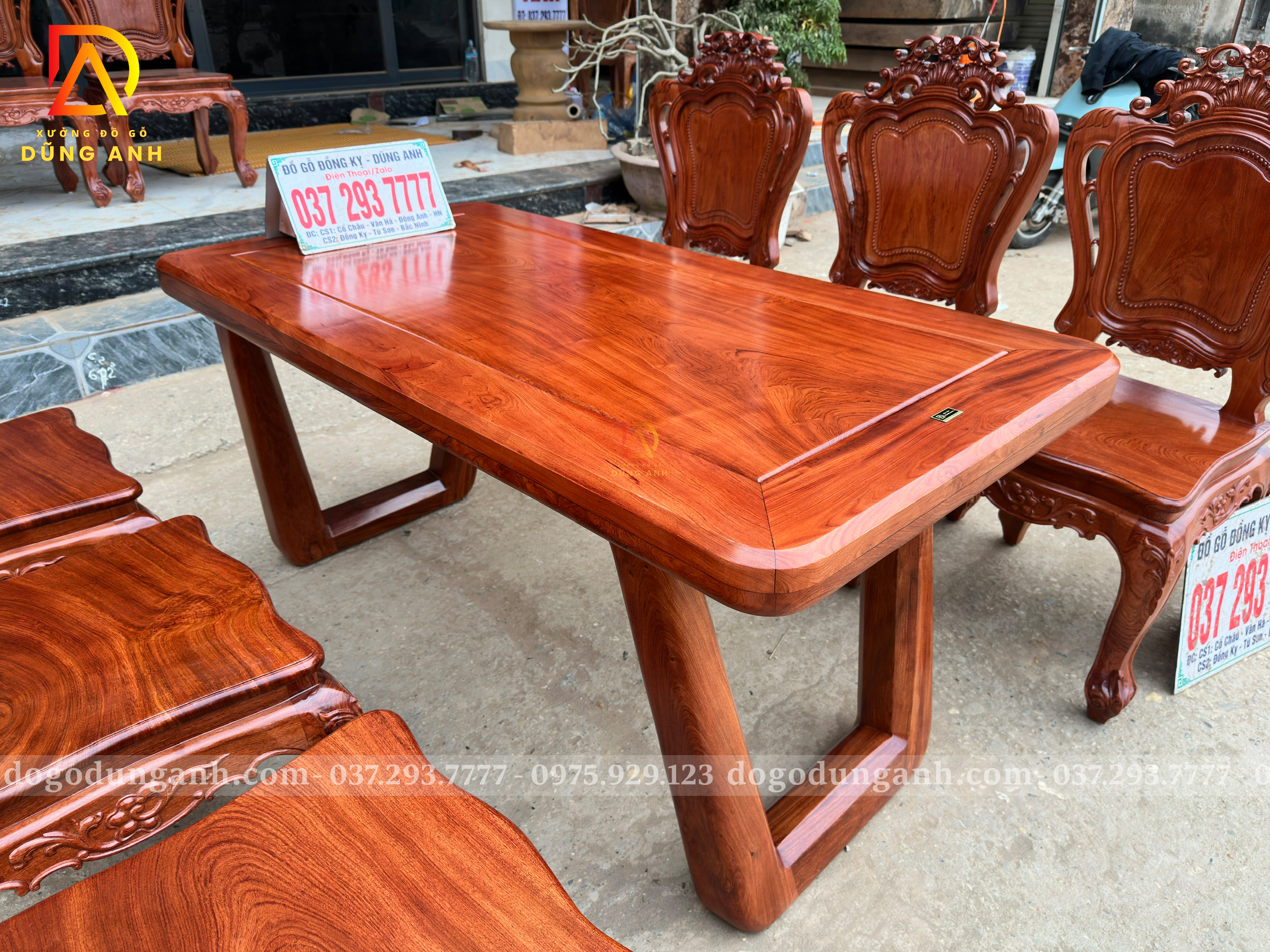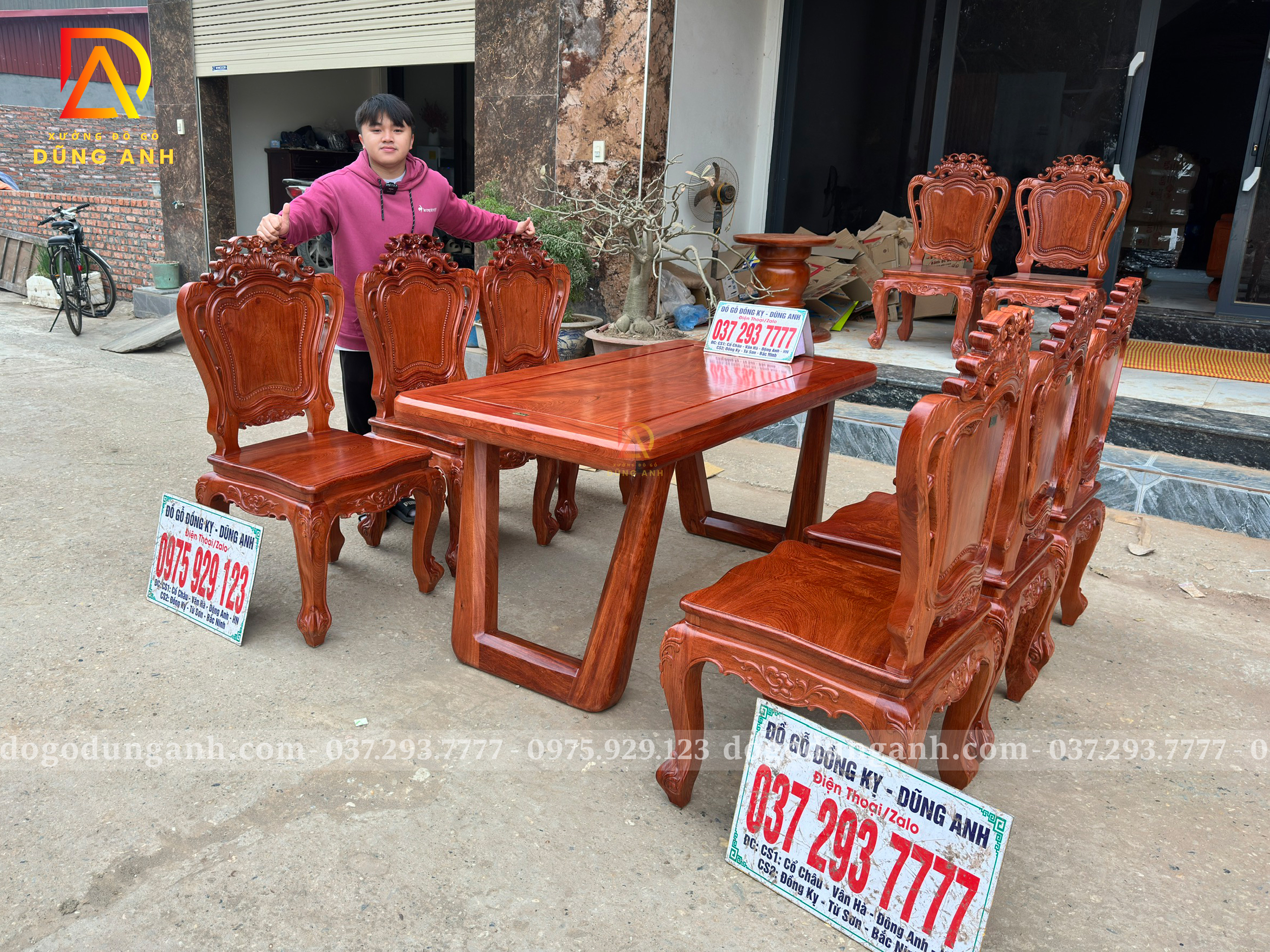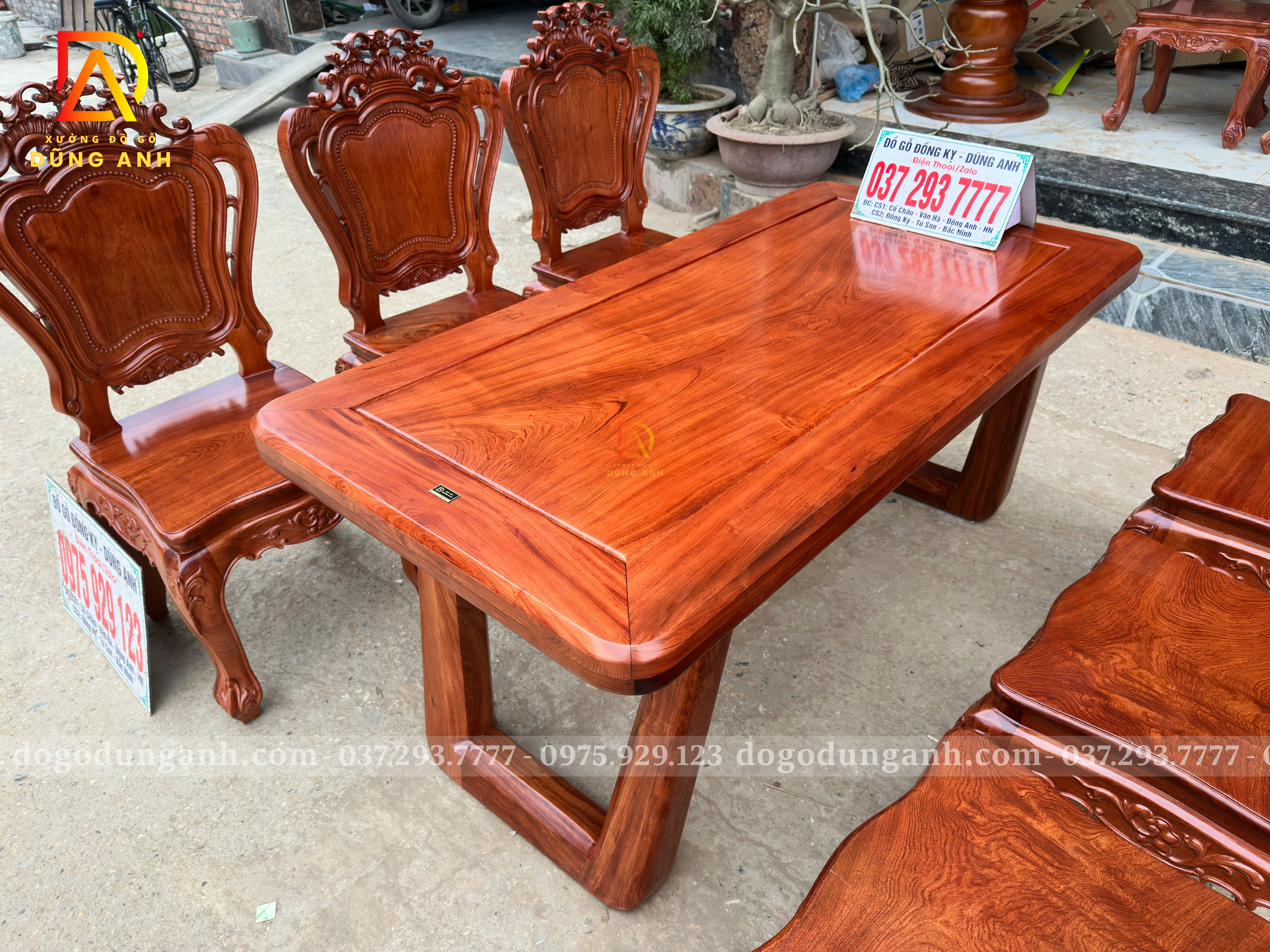 Đồ Gỗ Dũng Anh | Hoàn Thiện Sơn PU – Bộ Bàn Ăn 6 Ghế Louis Hoàng Gia + Bàn Chữ Nhật Hiện Đại + Gỗ Hương Đá