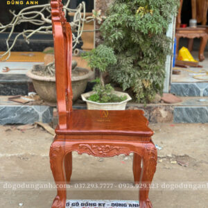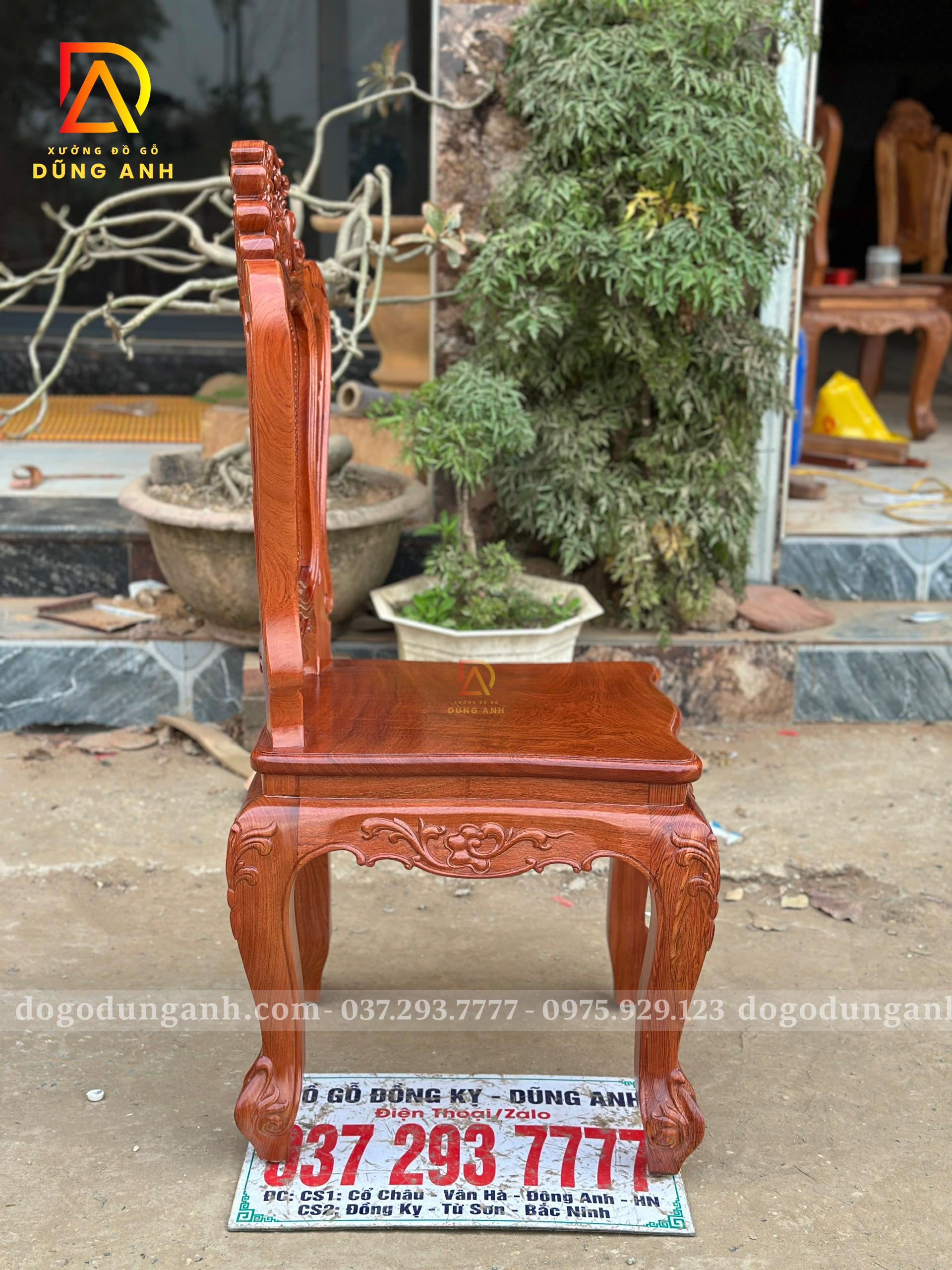Nổi bật với lưng tựa uốn cong mềm mại, chương ghế chạm trổ tinh xảo, vai ghế bo tròn duyên dáng. Mỗi đường nét đều toát lên sự khéo léo, tinh tế và tâm huyết của người thợ thủ công lành nghề.