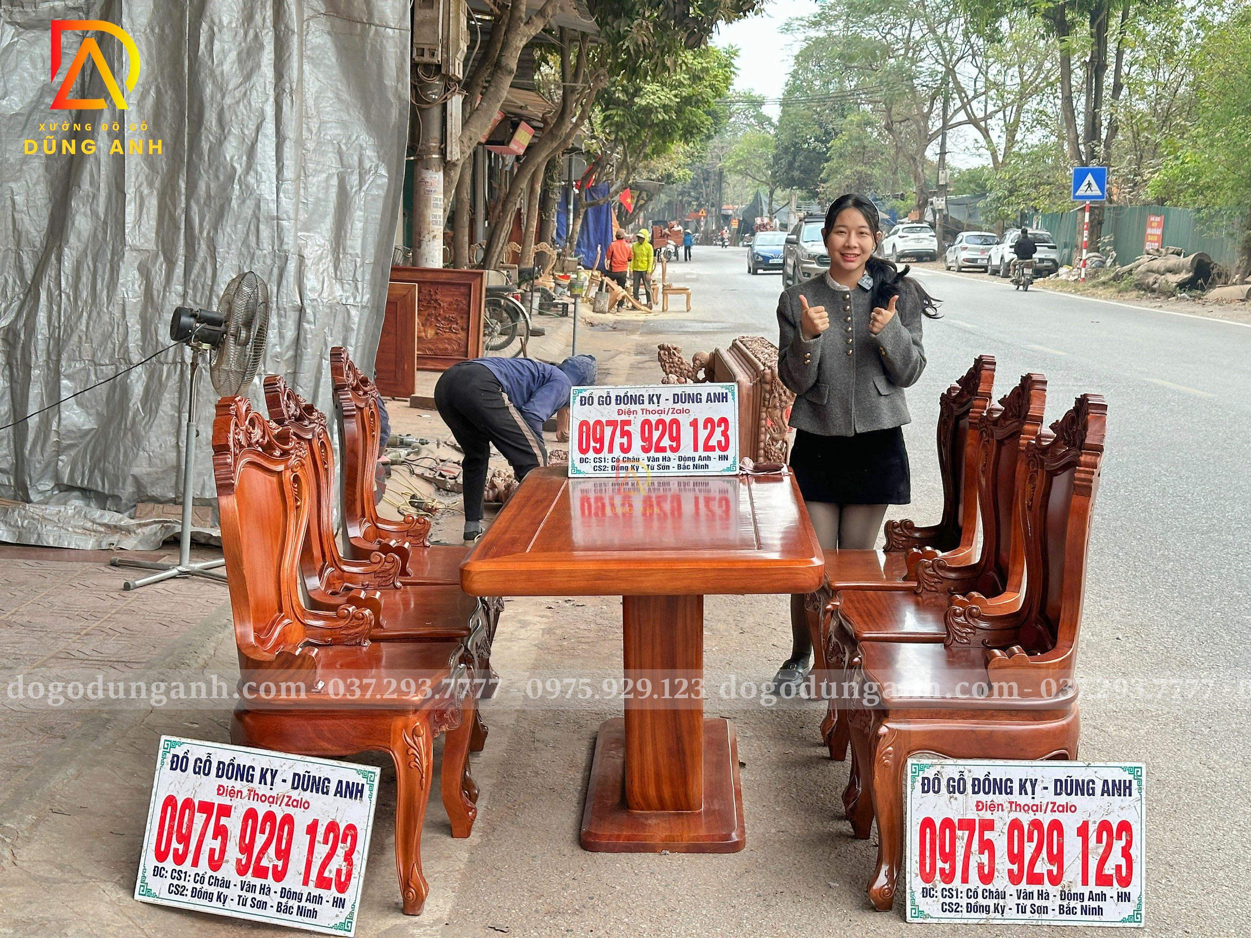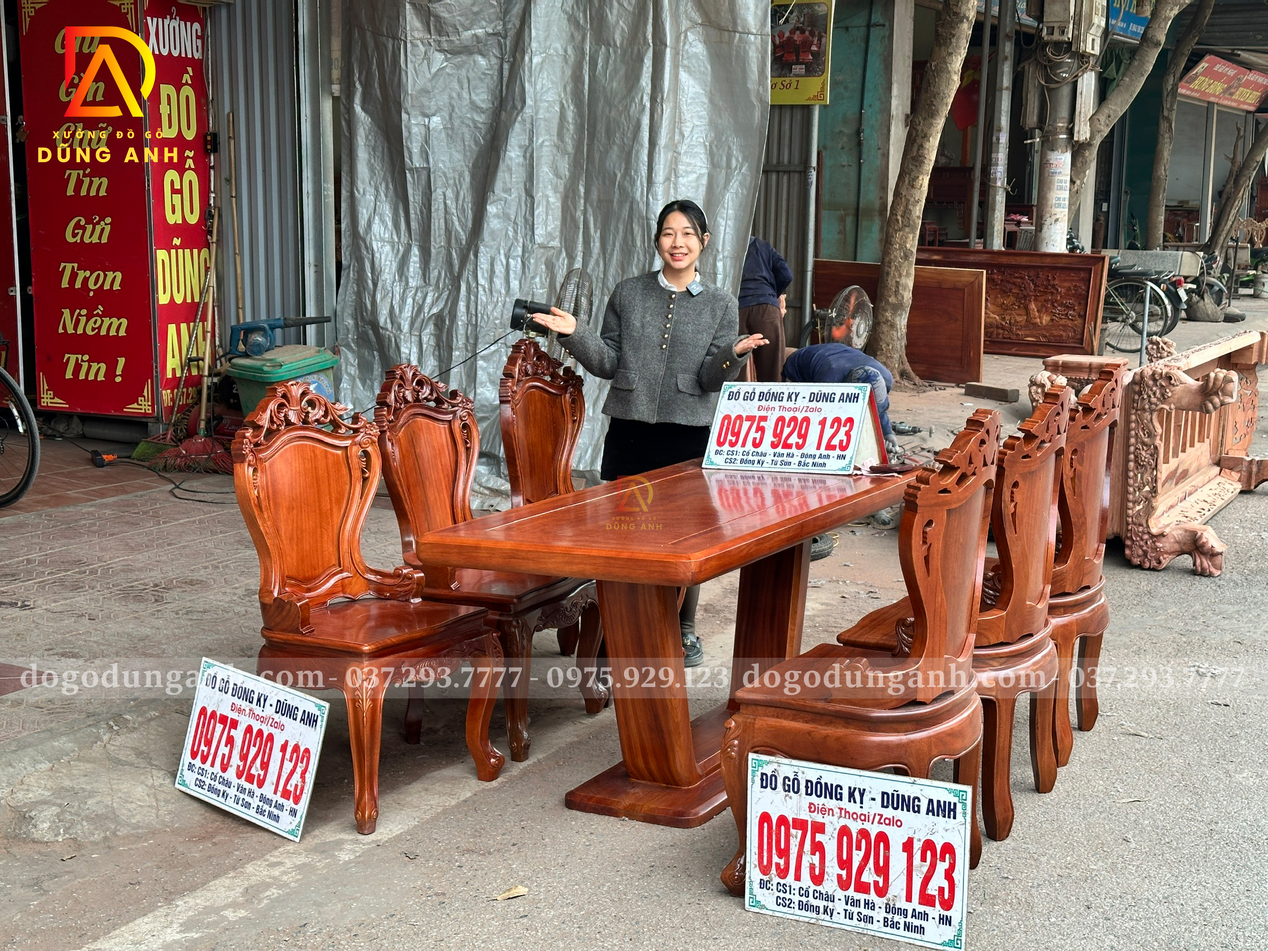 Để tạo ra sản phẩm nội thất đẹp và chất lượng, việc lựa chọn loại gỗ rất quan trọng. Đồ Gỗ Dũng Anh đã chọn gỗ gõ đỏ, phù hợp với yêu cầu của khách hàng thượng lưu, những người có hiểu biết và yêu cầu cao. Mỗi sản phẩm từ xưởng đều được chọn lọc kỹ lưỡng, thể hiện tâm huyết và tinh hoa của nghệ nhân. Khách hàng có thể tham khảo các mẫu bàn ghế ăn đẹp và bàn ghế nguyên khối bằng cách liên hệ với xưởng