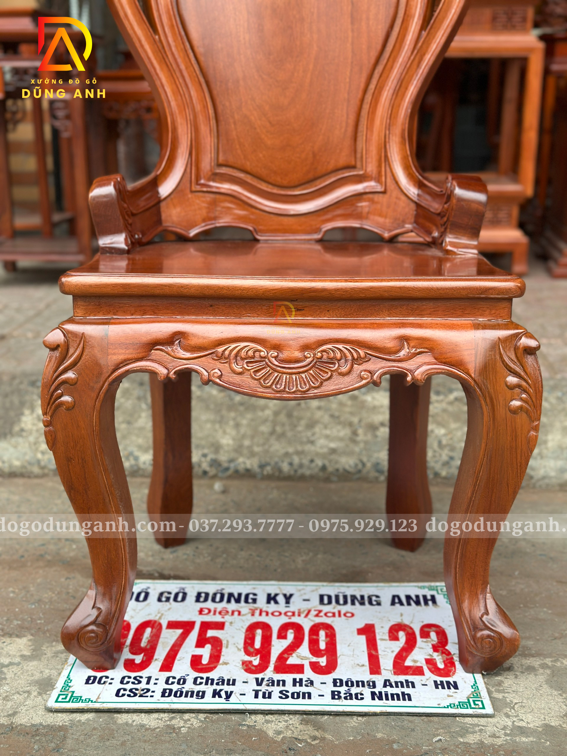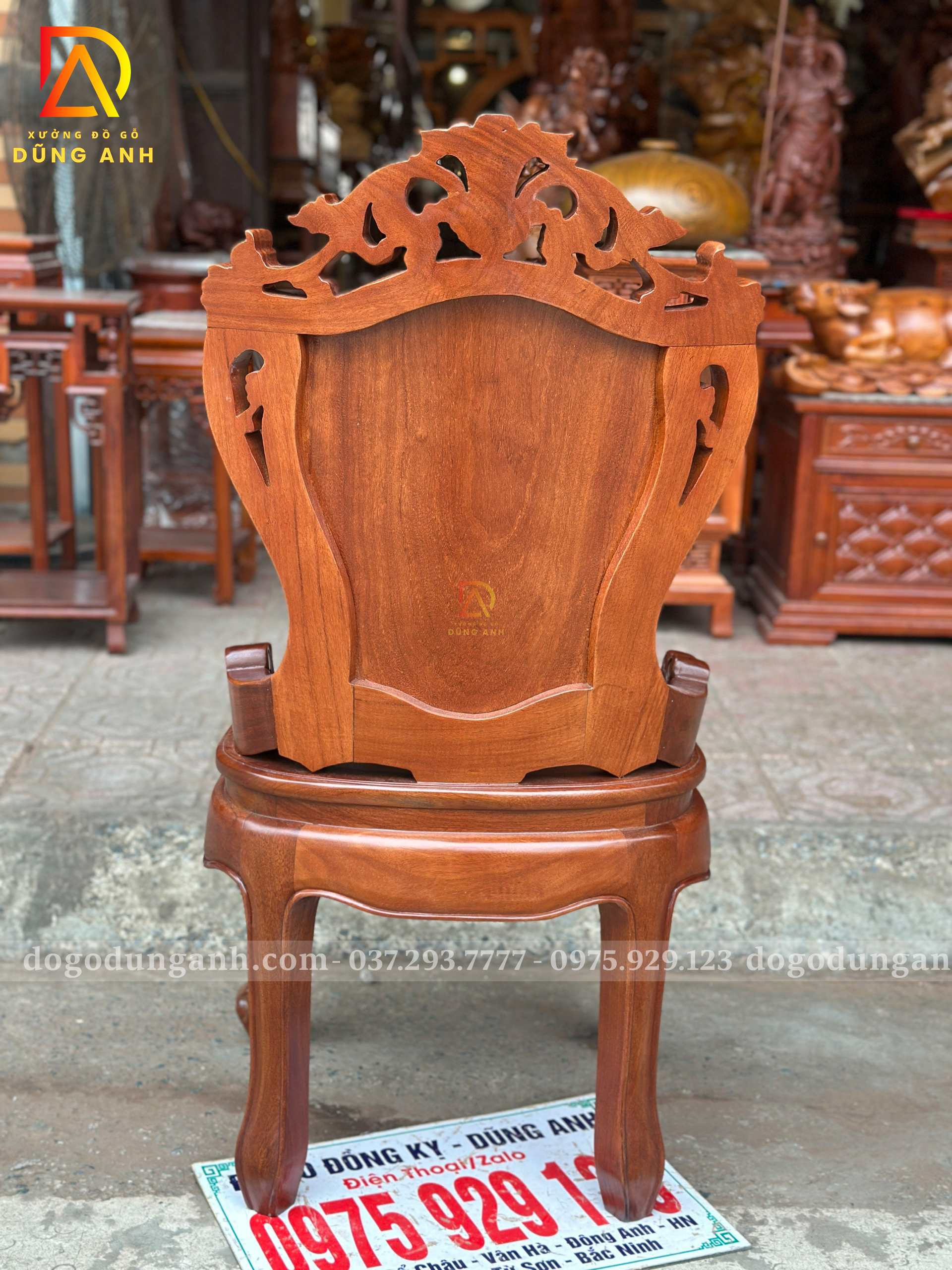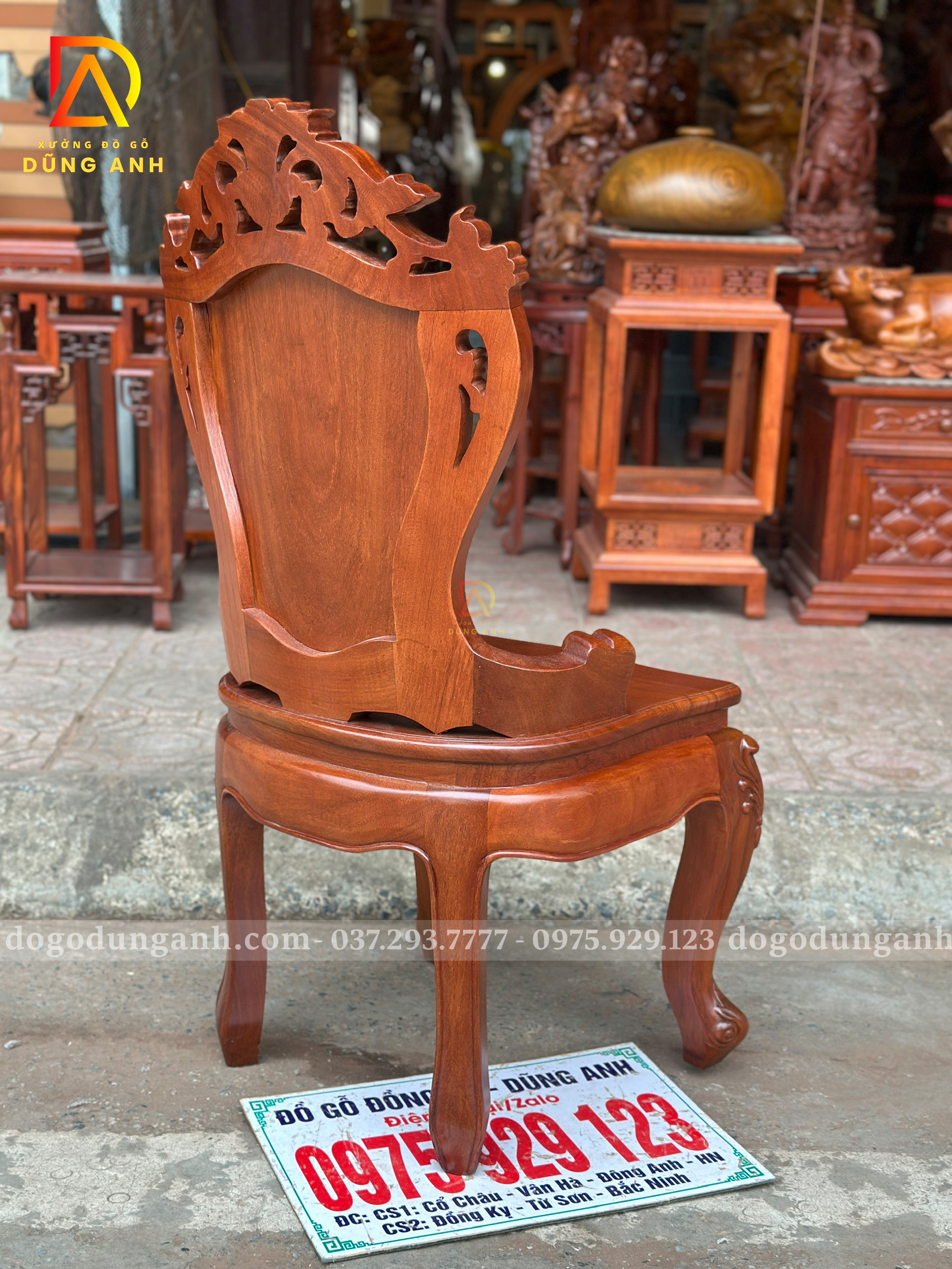 Nổi bật với lưng tựa uốn cong mềm mại, chương ghế chạm trổ tinh xảo, vai ghế bo tròn duyên dáng. Mỗi đường nét đều toát lên sự khéo léo, tinh tế và tâm huyết của người thợ thủ công lành nghề.