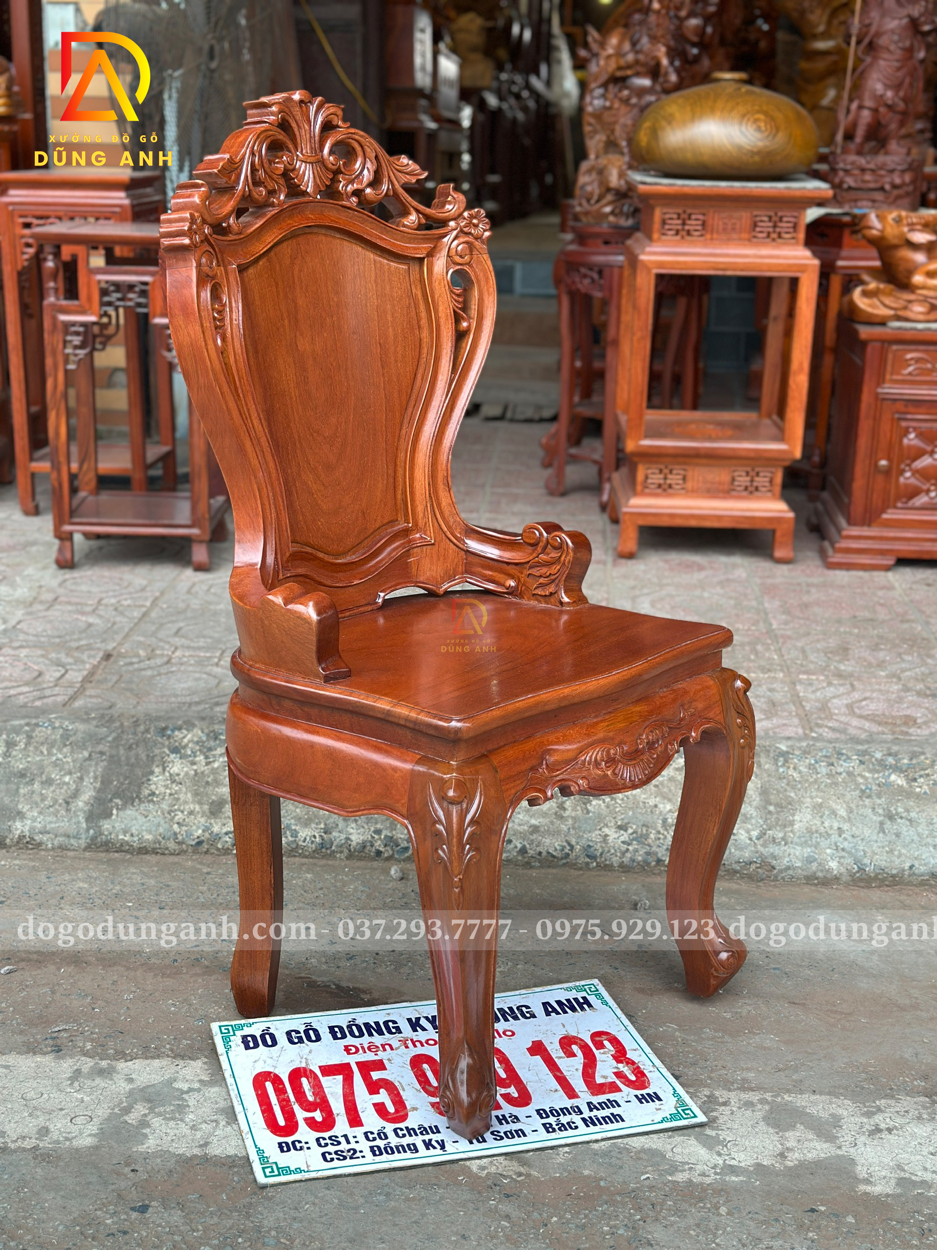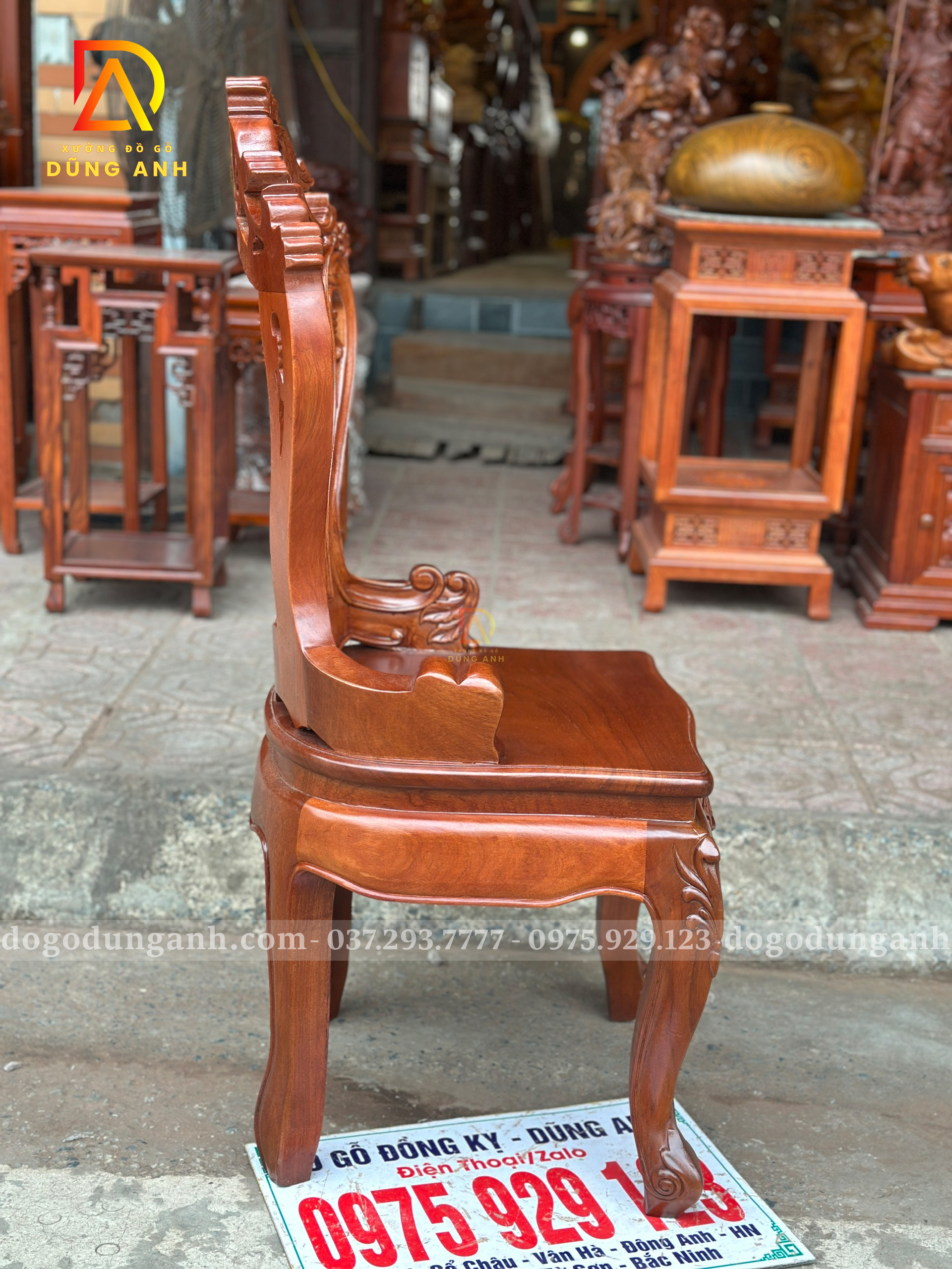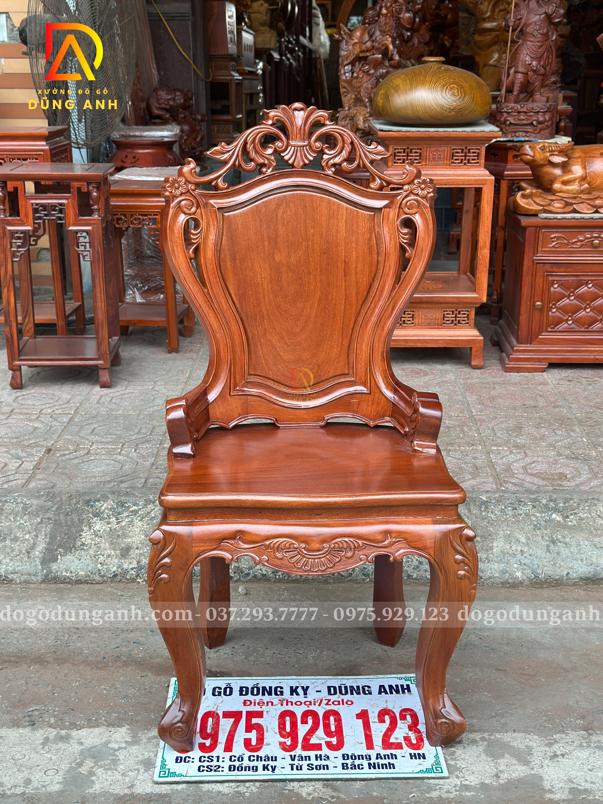 Nổi bật với lưng tựa uốn cong mềm mại, chương ghế chạm trổ tinh xảo, vai ghế bo tròn duyên dáng. Mỗi đường nét đều toát lên sự khéo léo, tinh tế và tâm huyết của người thợ thủ công lành nghề.
