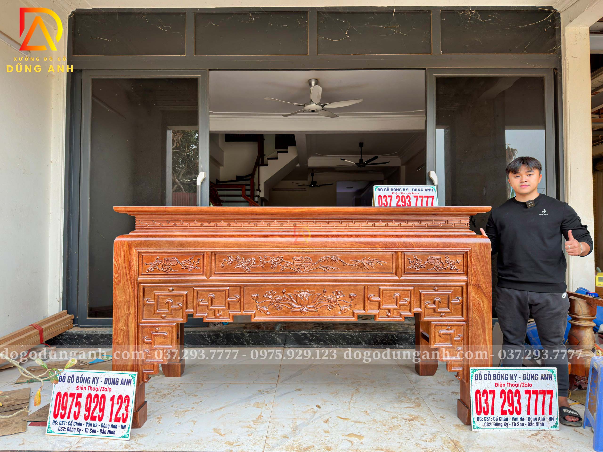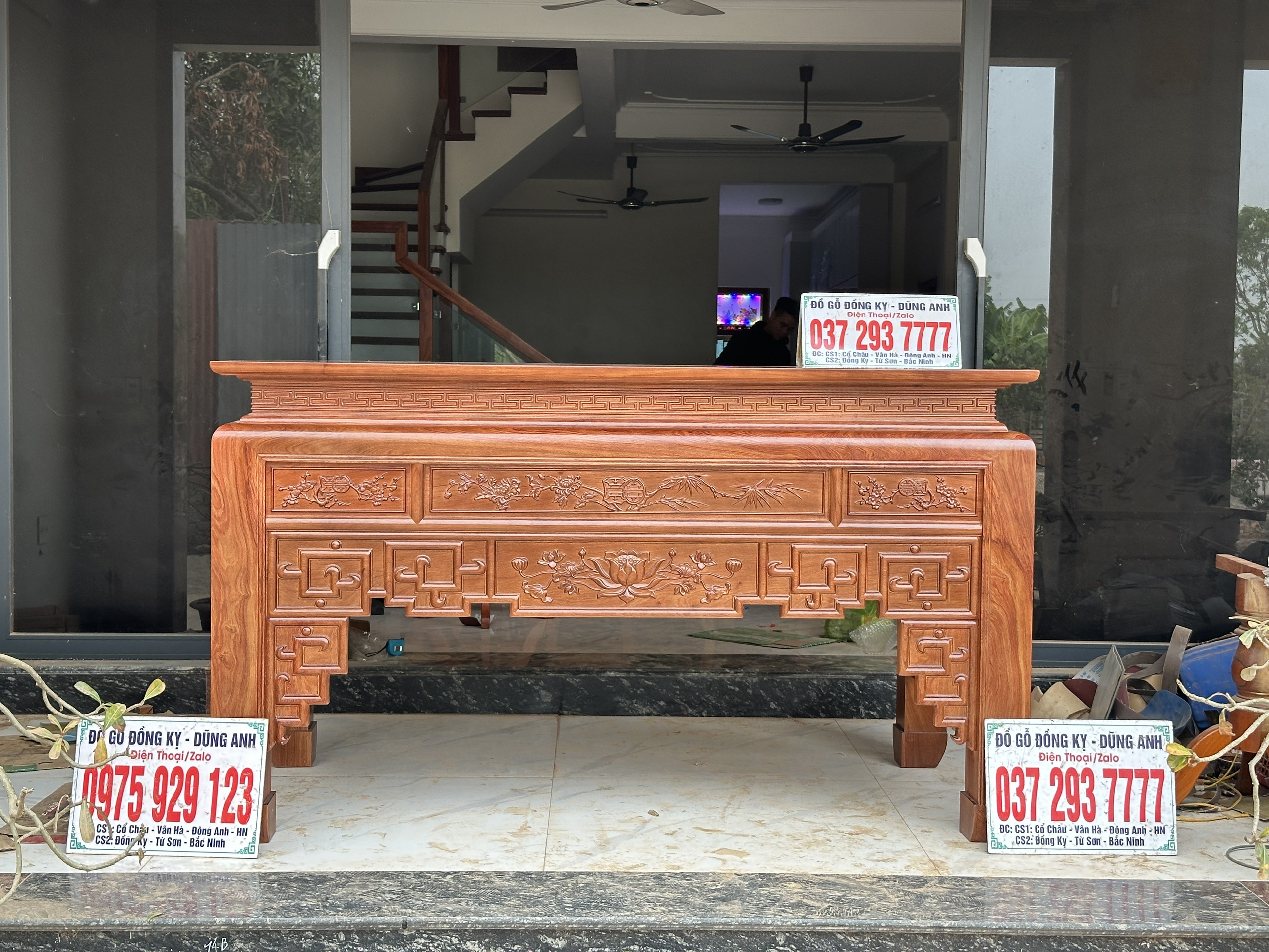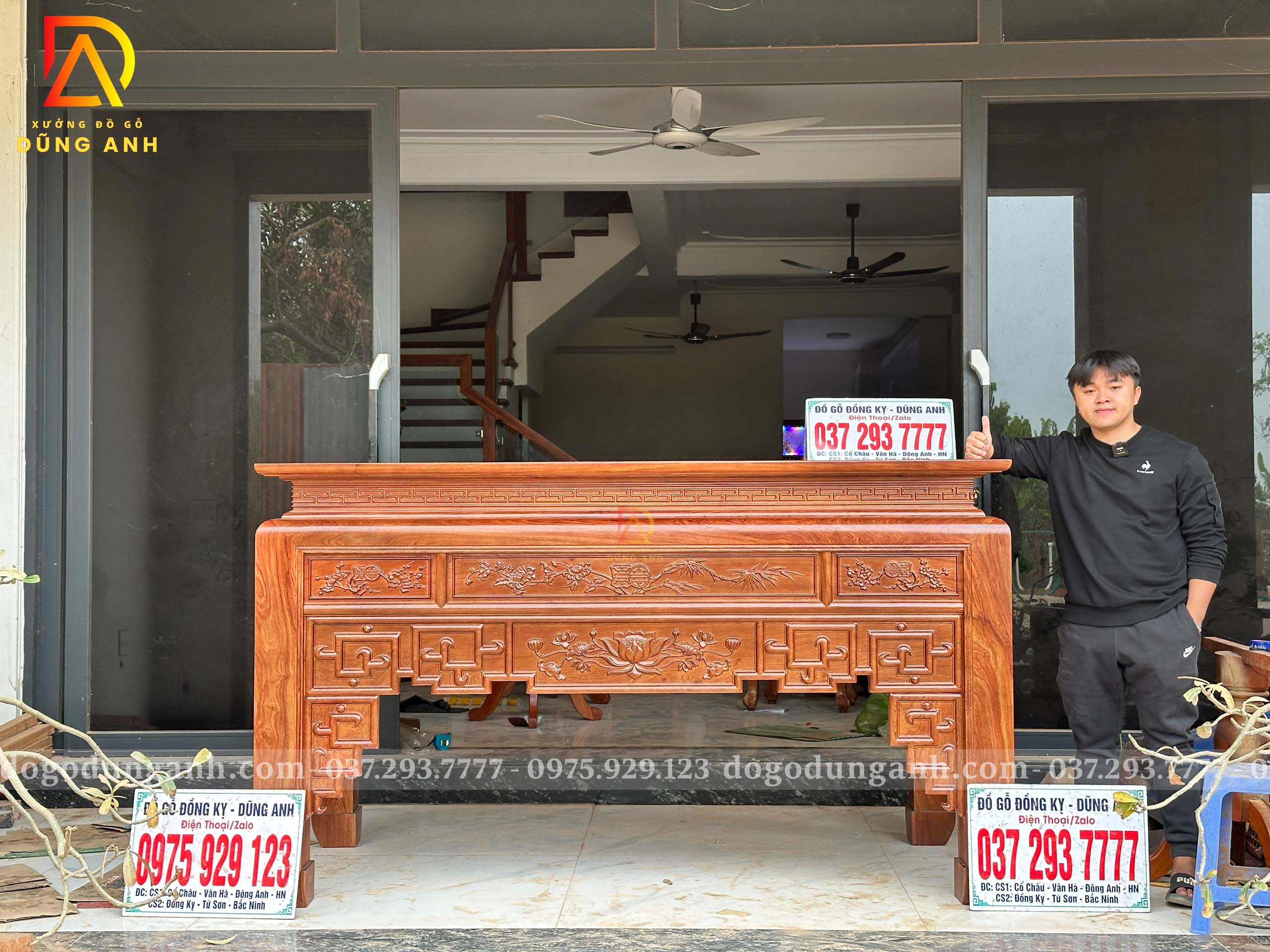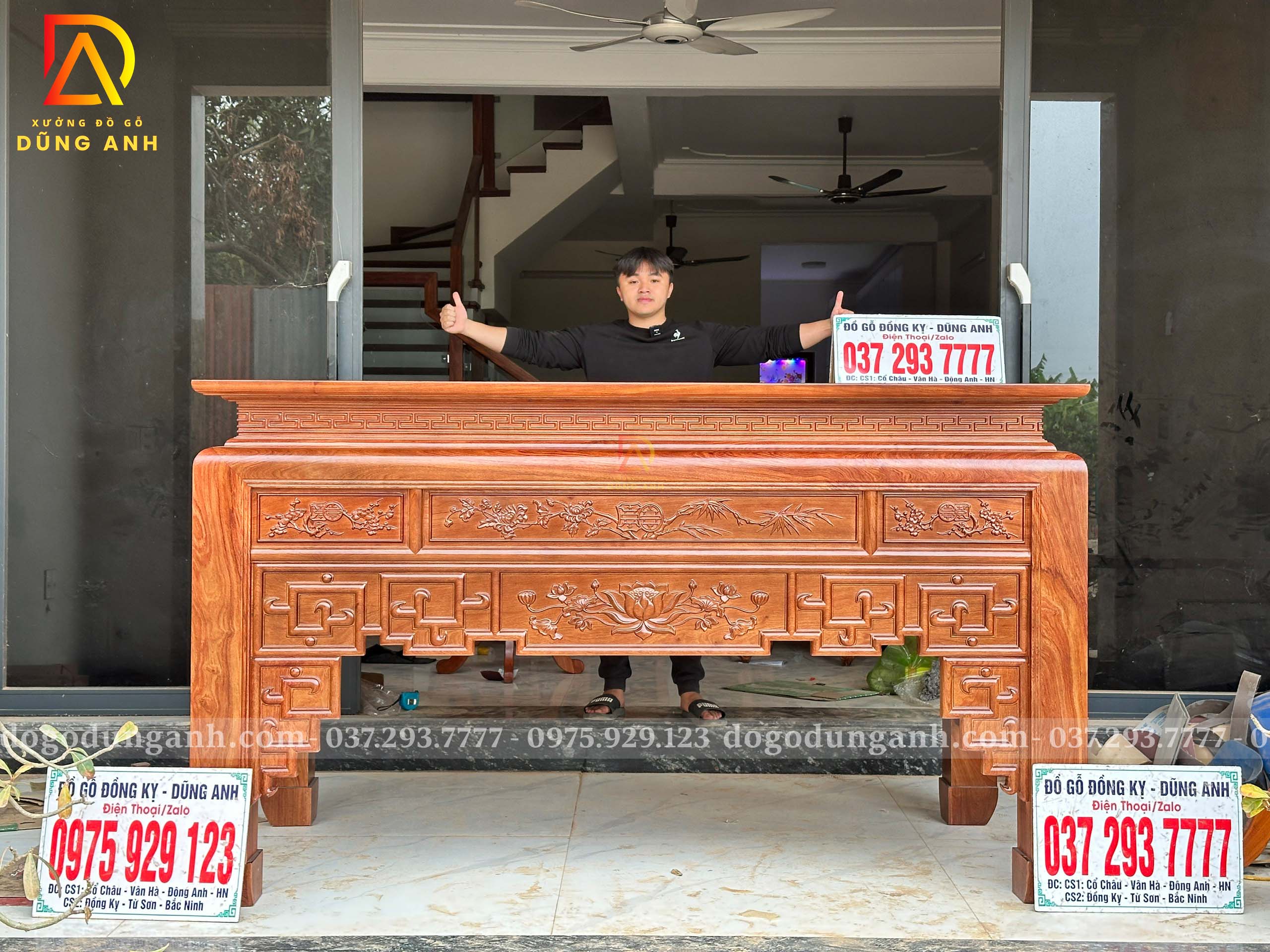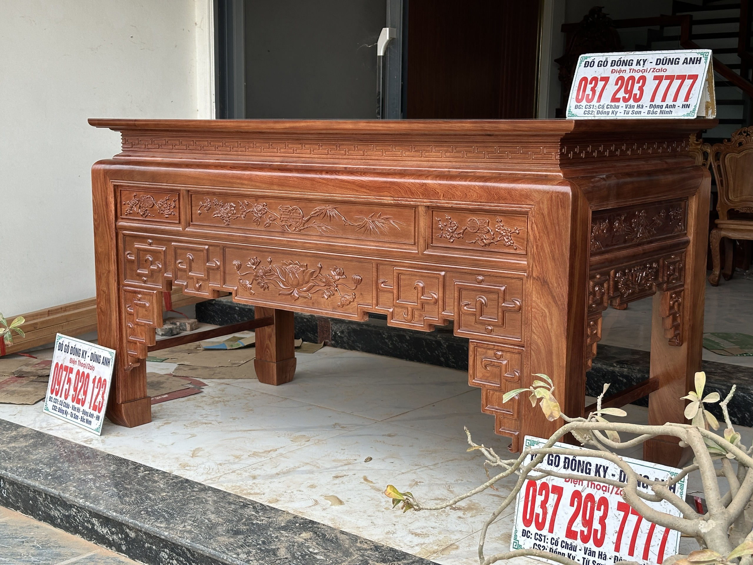 - Ban thờ to có kích thước : chiều dài 2m17cm . Rộng 1m07cm . Cao 127