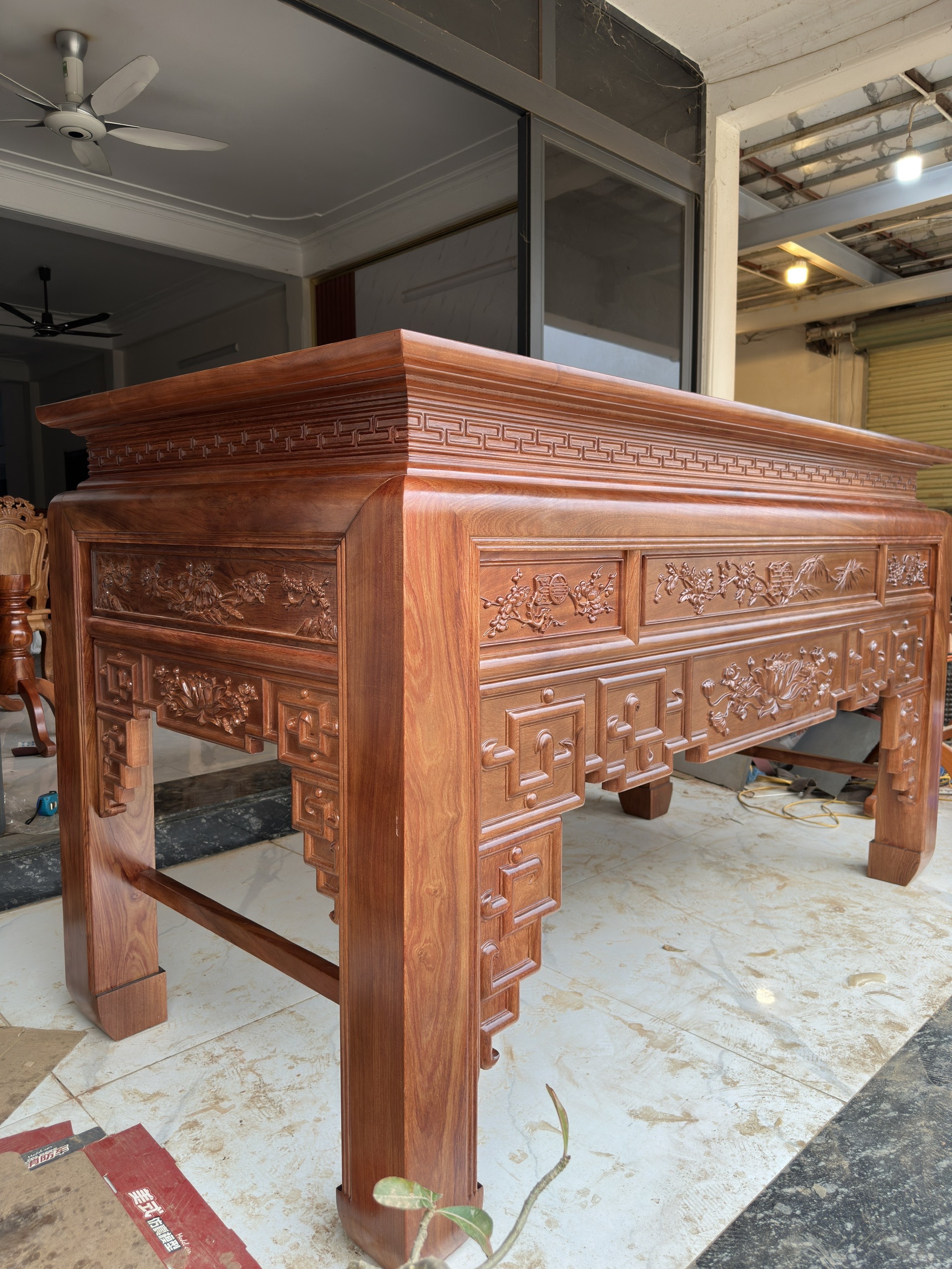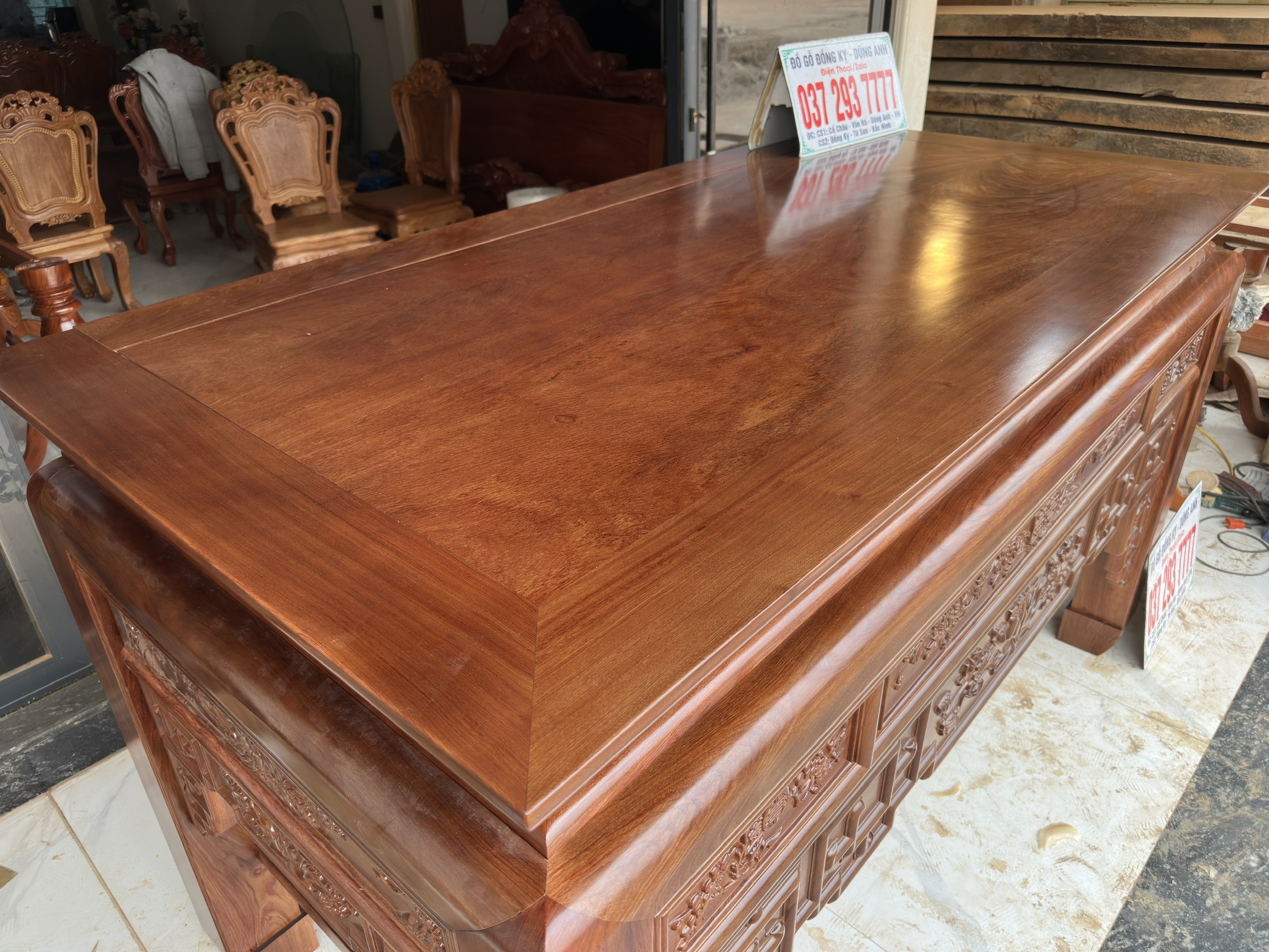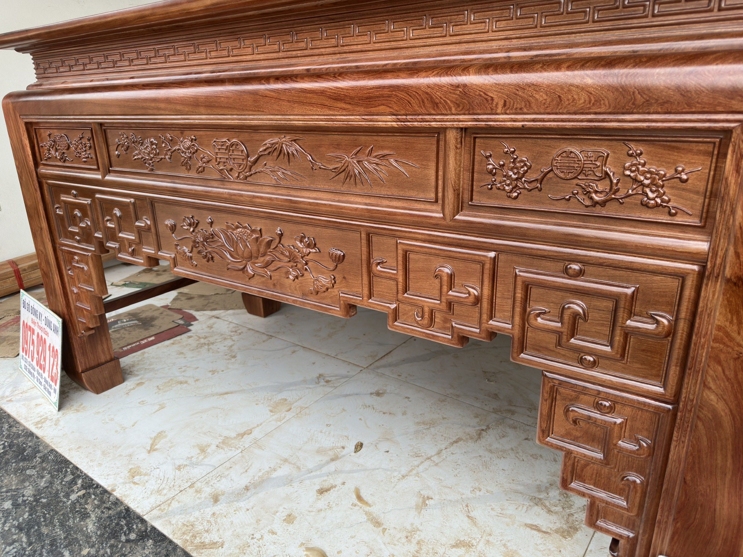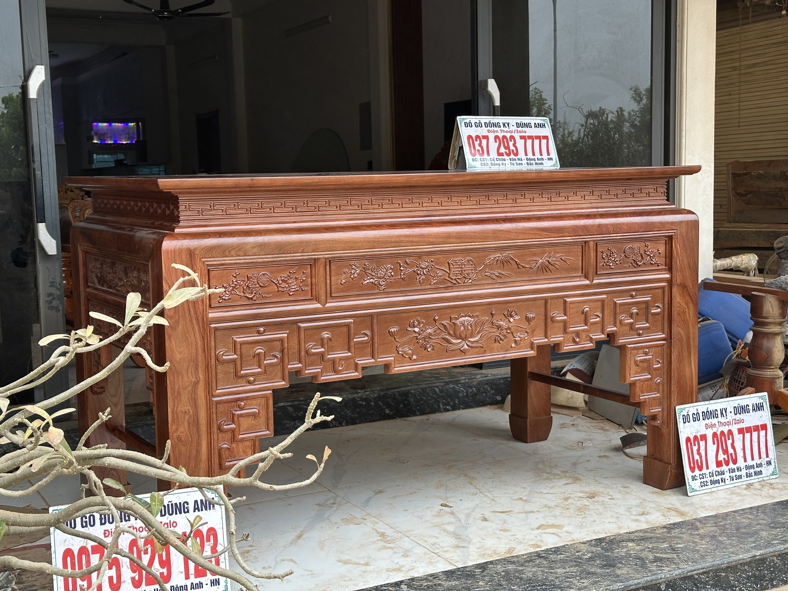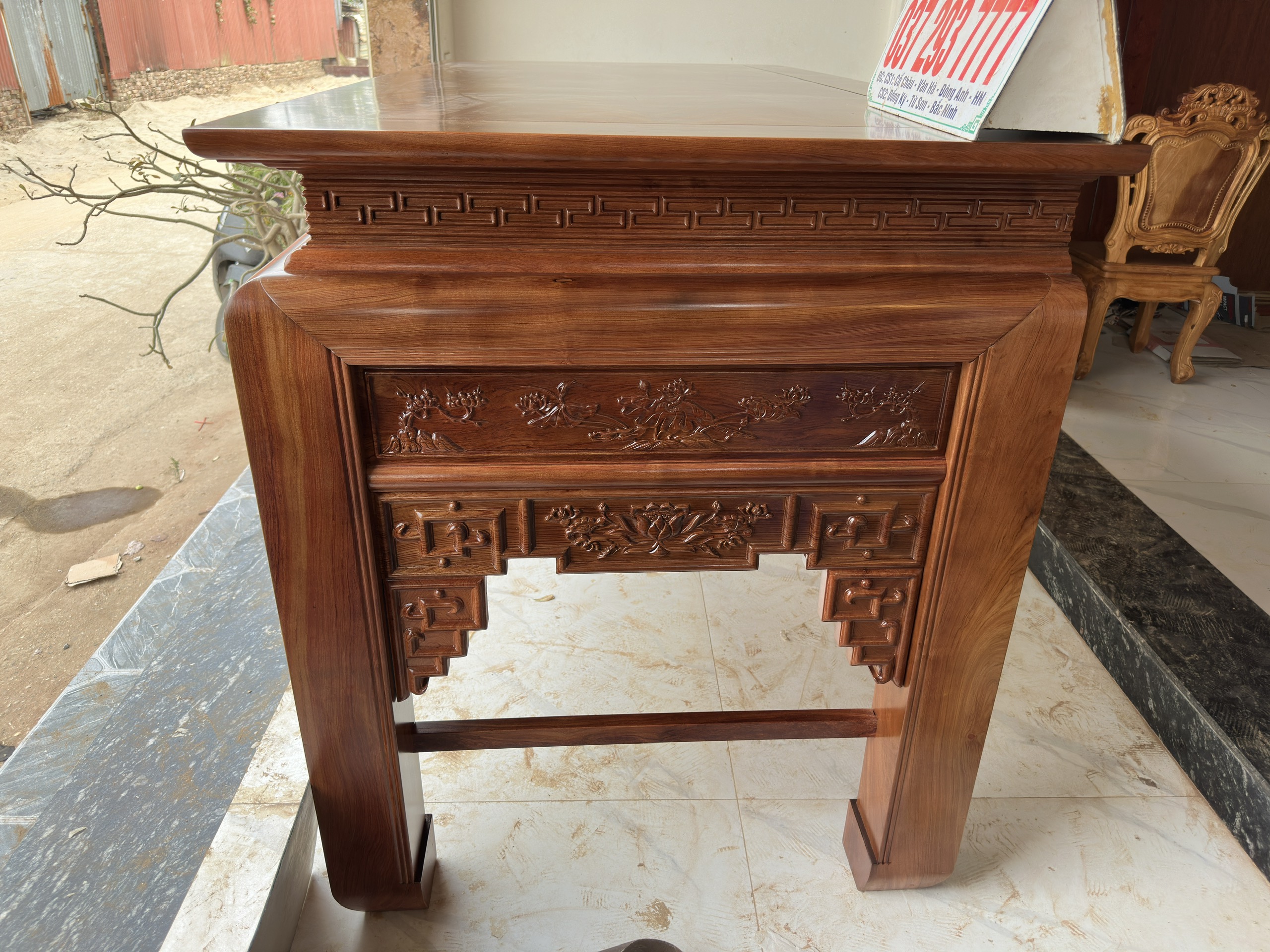 - Ban thờ to có kích thước : chiều dài 2m17cm . Rộng 1m07cm . Cao 127
