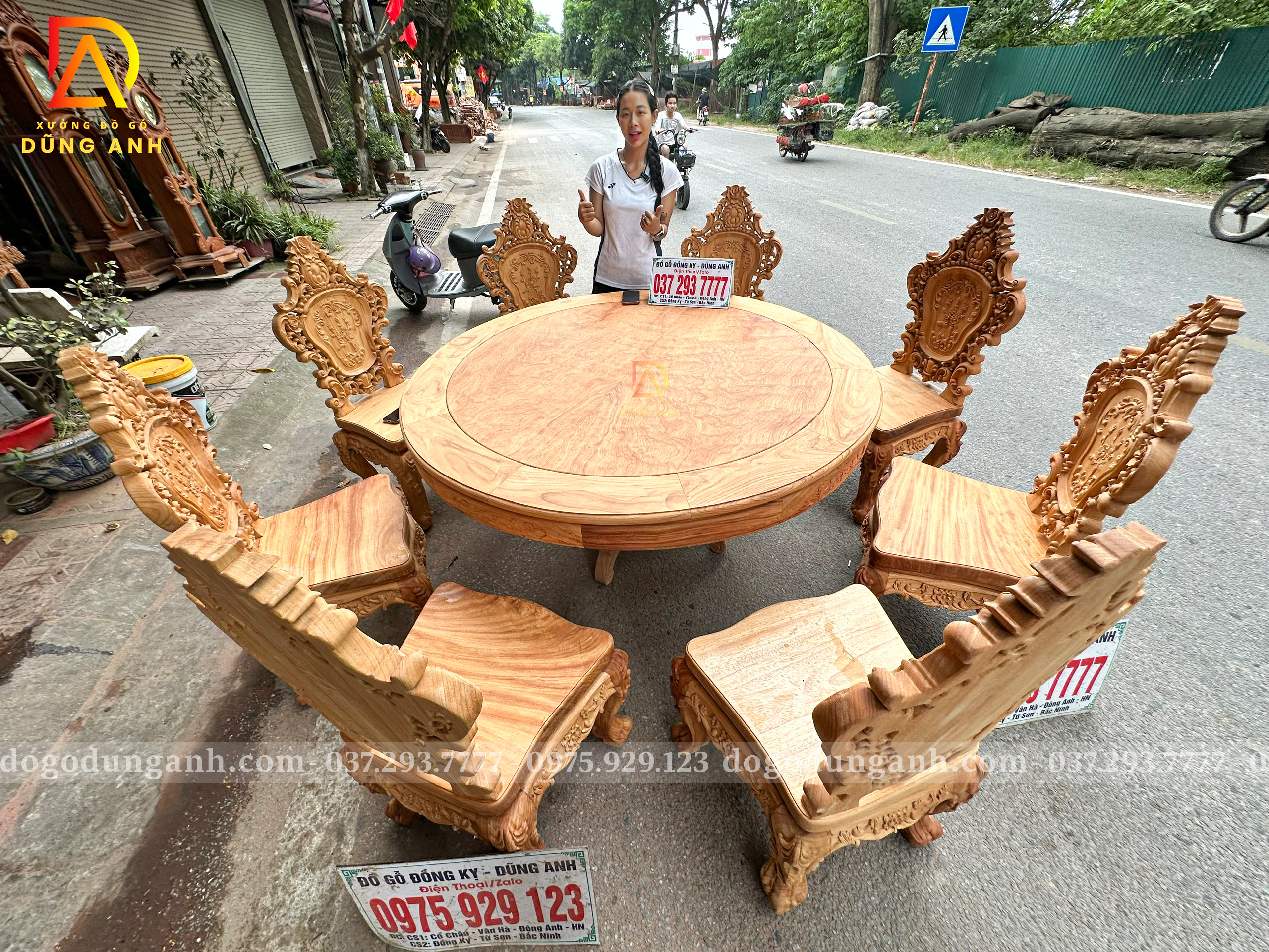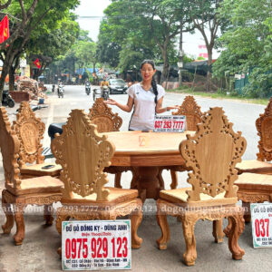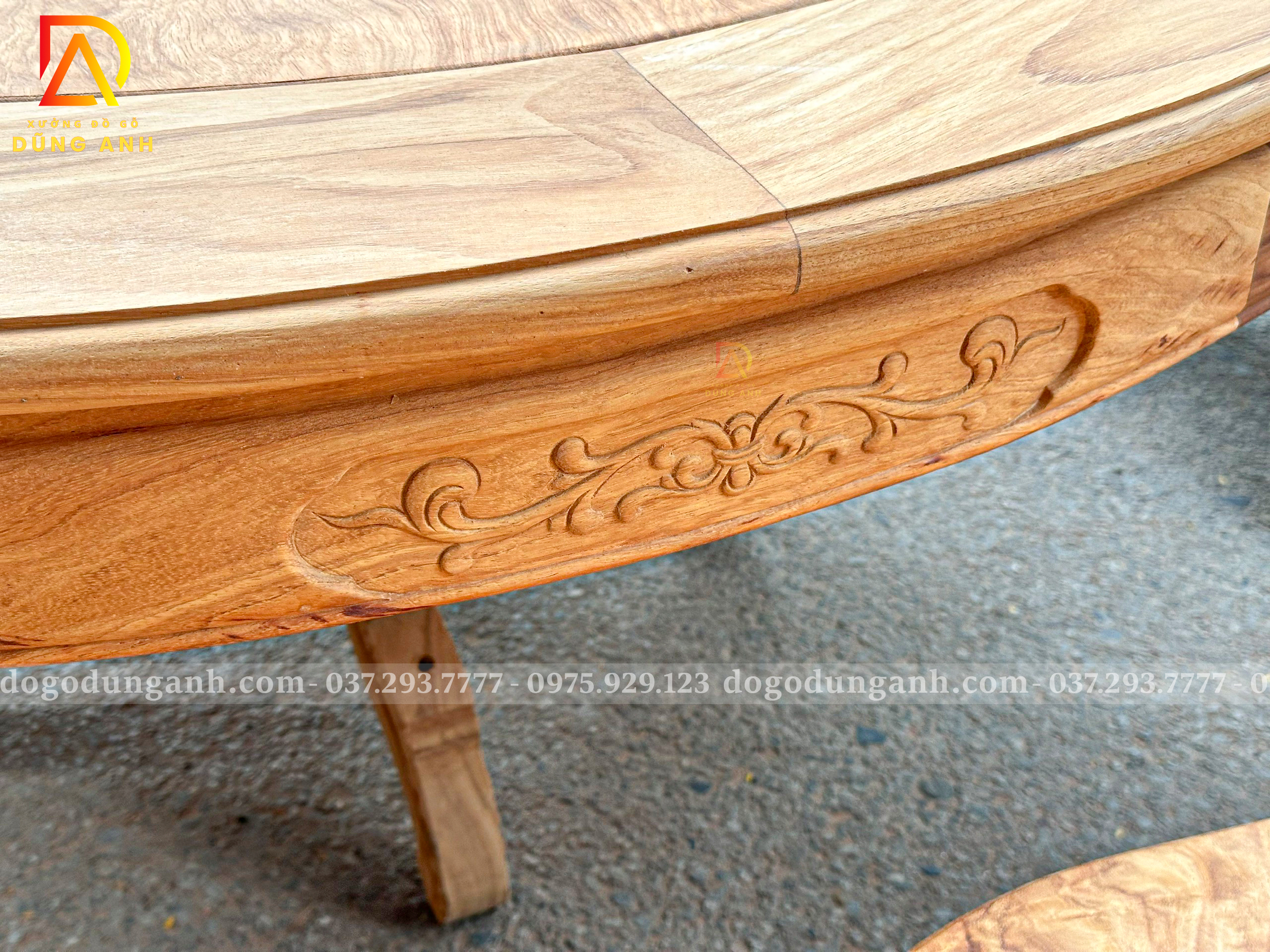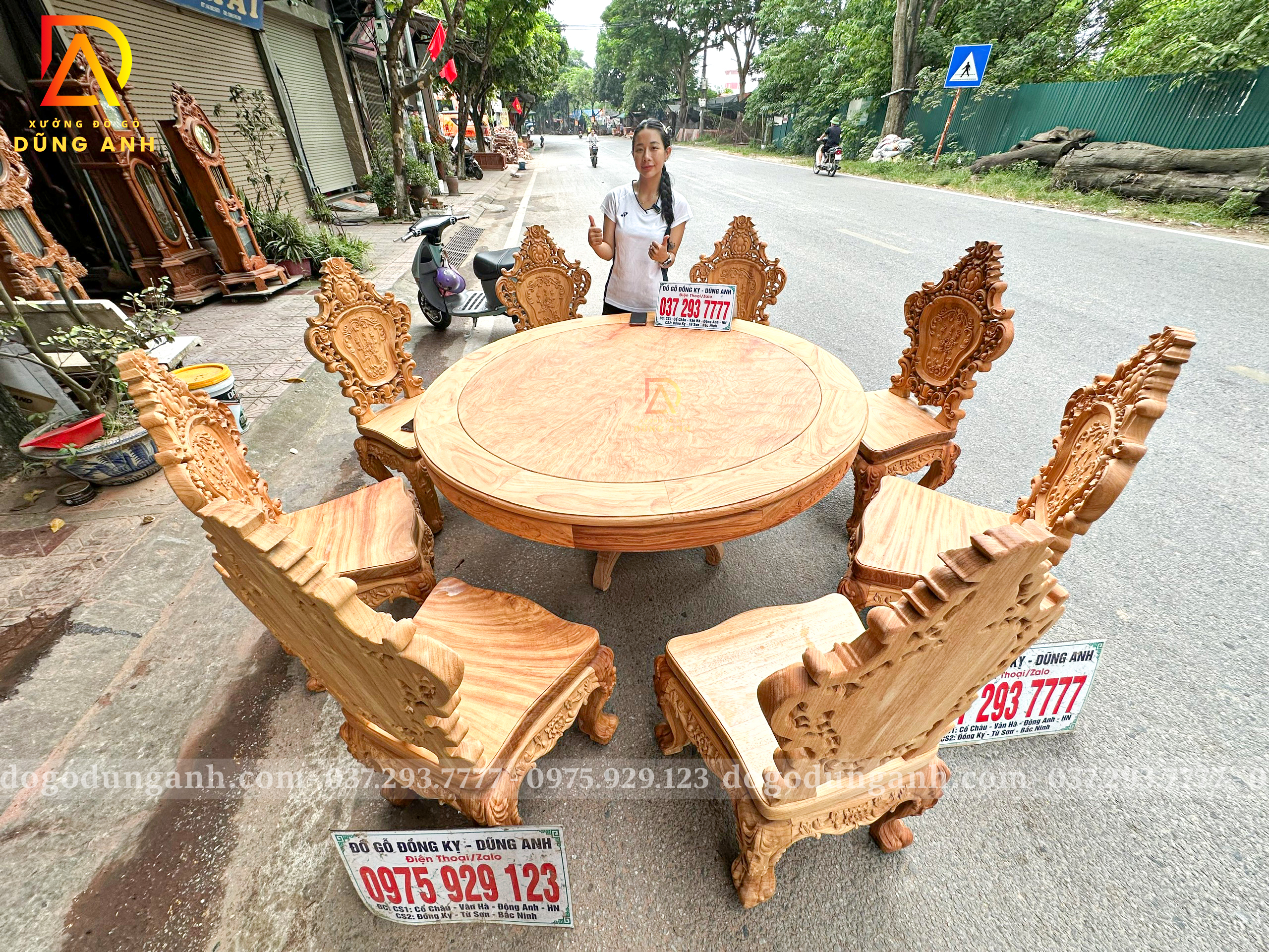 Bạn có thể yêu cầu điều chỉnh kích thước bàn, số lượng ghế hoặc chi tiết chạm khắc theo sở thích và không gian sử dụng. Chỉ cần liên hệ với Xưởng đồ gỗ Dũng Anh, mọi thiết kế sẽ được đáp ứng một cách linh hoạt và tận tâm.
