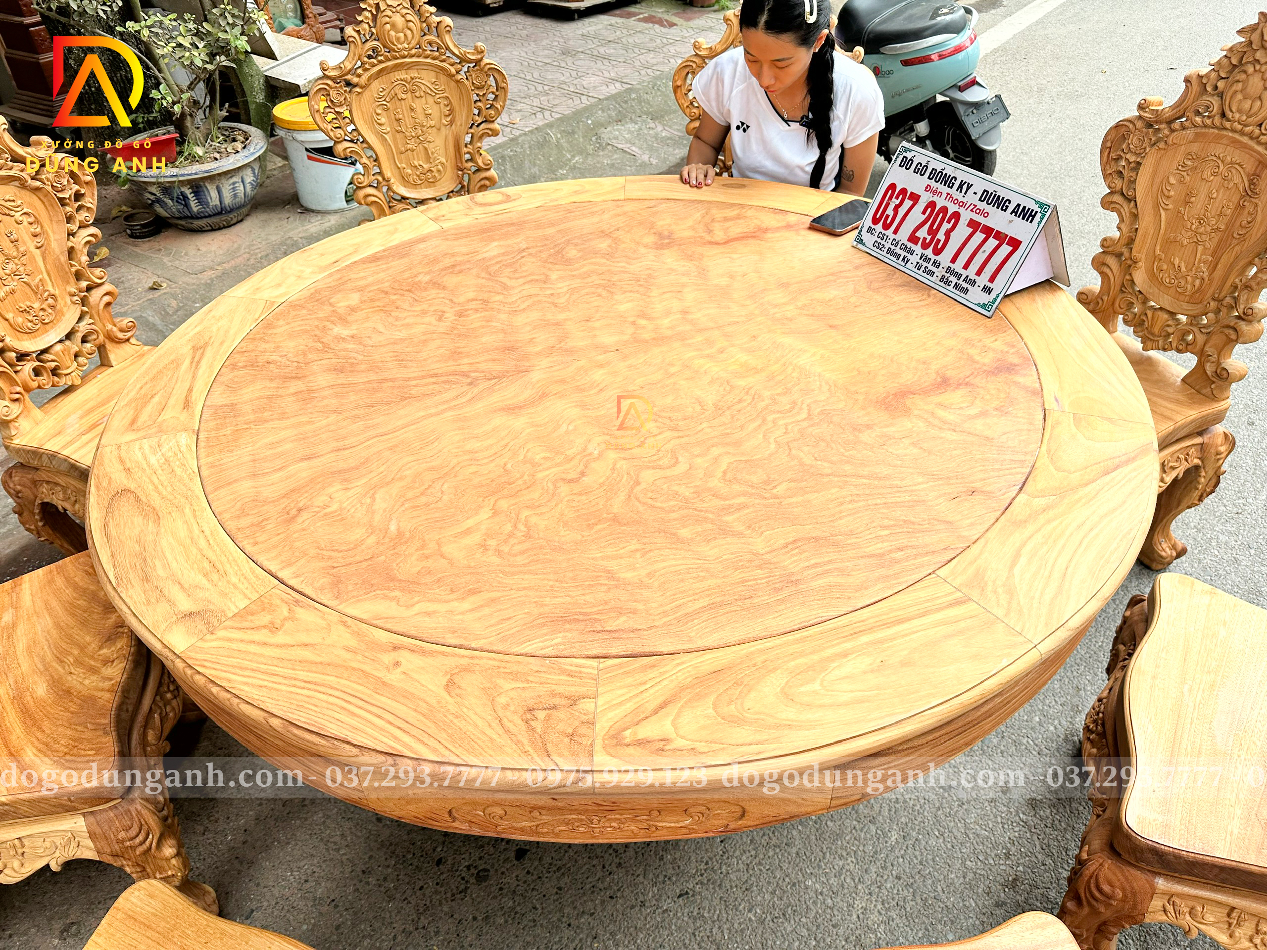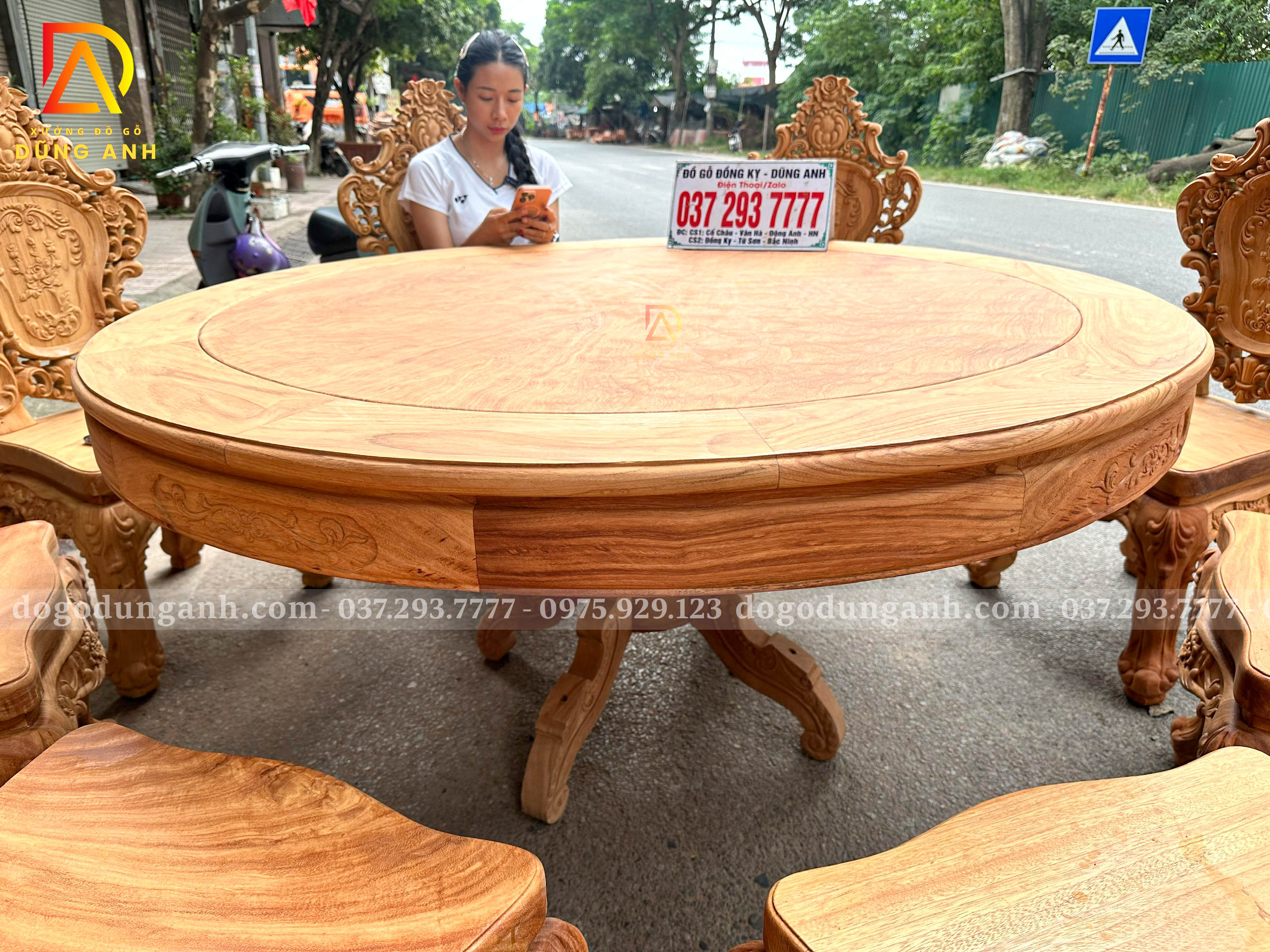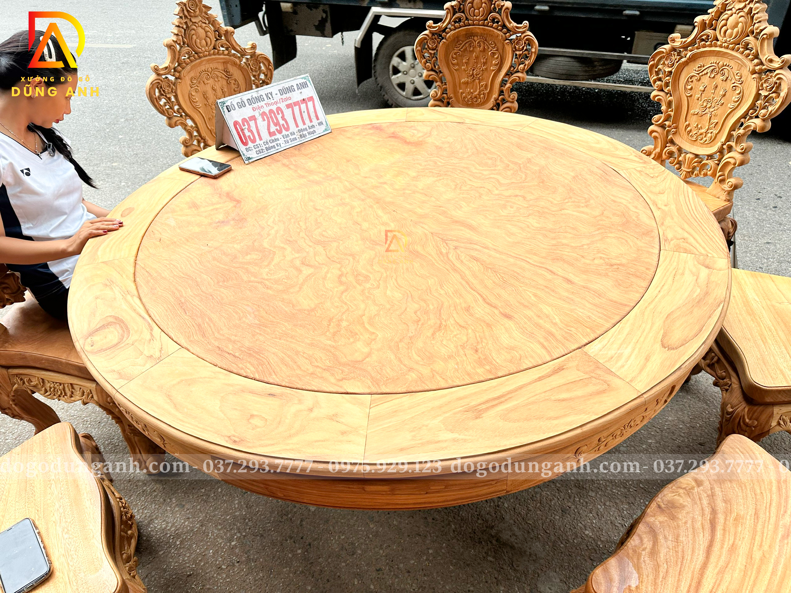 Bạn có thể yêu cầu điều chỉnh kích thước bàn, số lượng ghế hoặc chi tiết chạm khắc theo sở thích và không gian sử dụng. Chỉ cần liên hệ với Xưởng đồ gỗ Dũng Anh, mọi thiết kế sẽ được đáp ứng một cách linh hoạt và tận tâm.