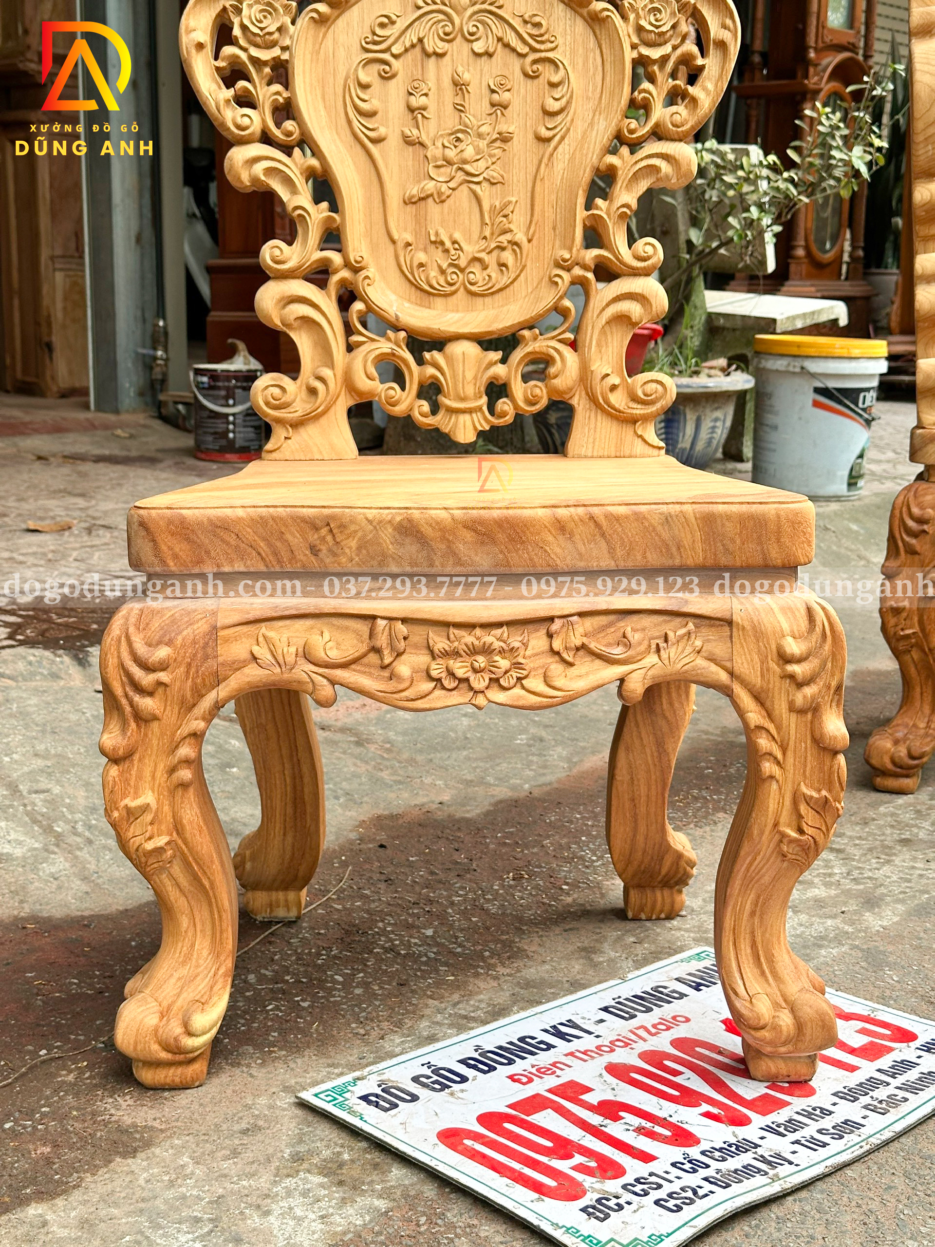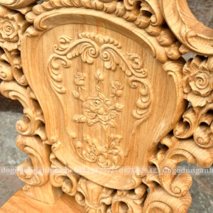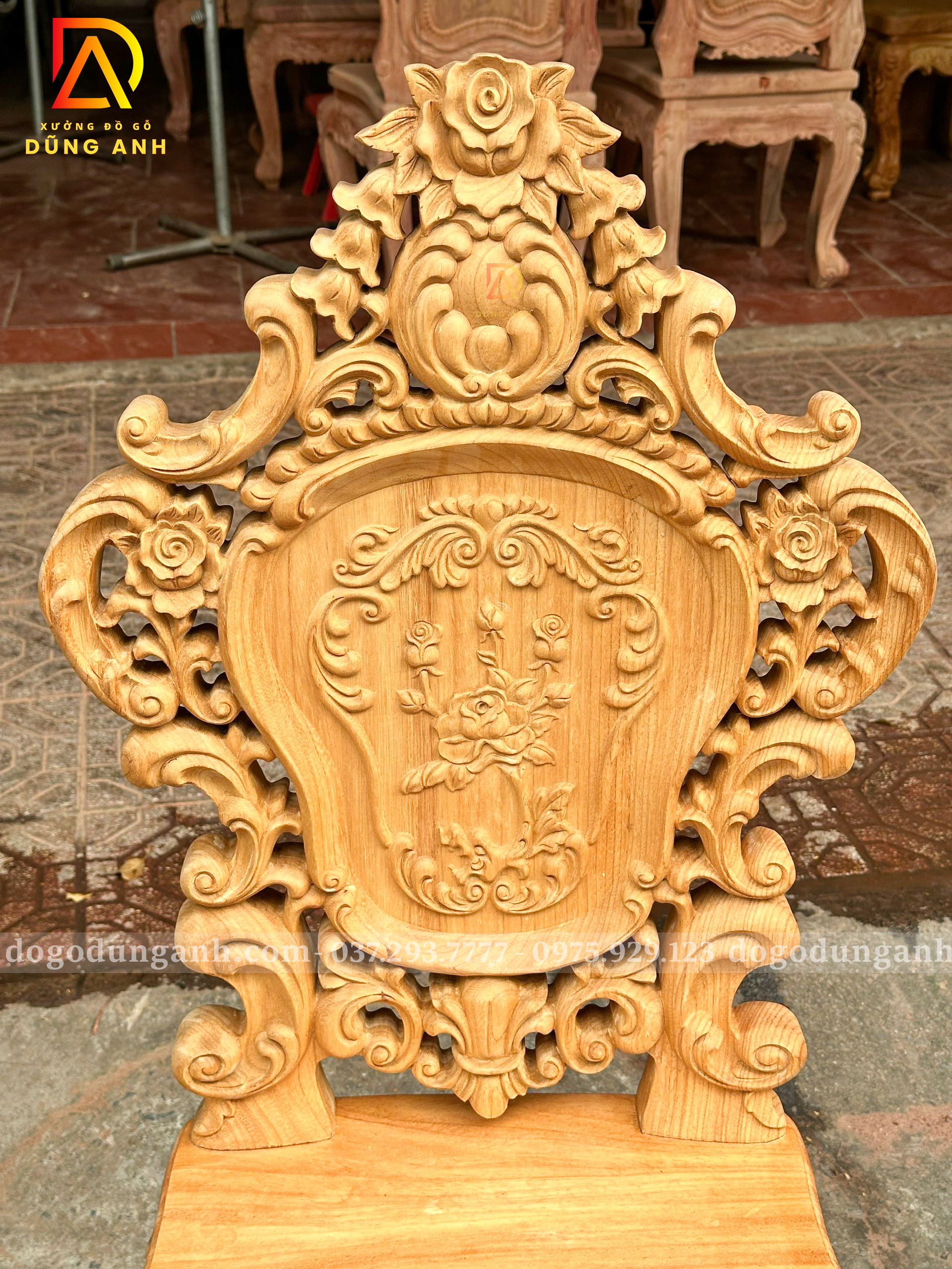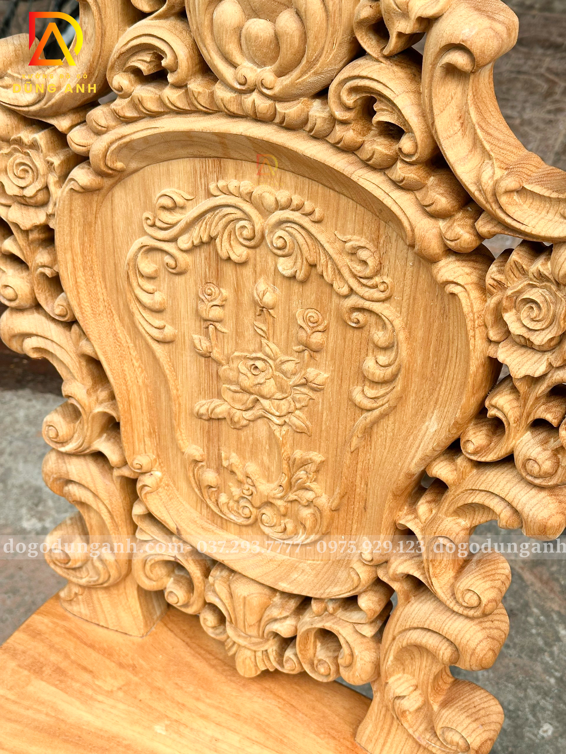Hoa văn tân cổ điển được những nghệ nhân Xưởng đồ gỗ Dũng Anh chạm khắc tỉ mỉ tạo ra những đường nét sâu nổi hoa văn. Hoa văn tân cổ điển được chạm khắc trên bộ ghế ăn đòi hỏi sáng tạo, cân xứng phải có tay nghề cứng am hiểu về hoa văn phương tây và đặc biệt bàn tay phải có sự gia công kỹ lưỡng