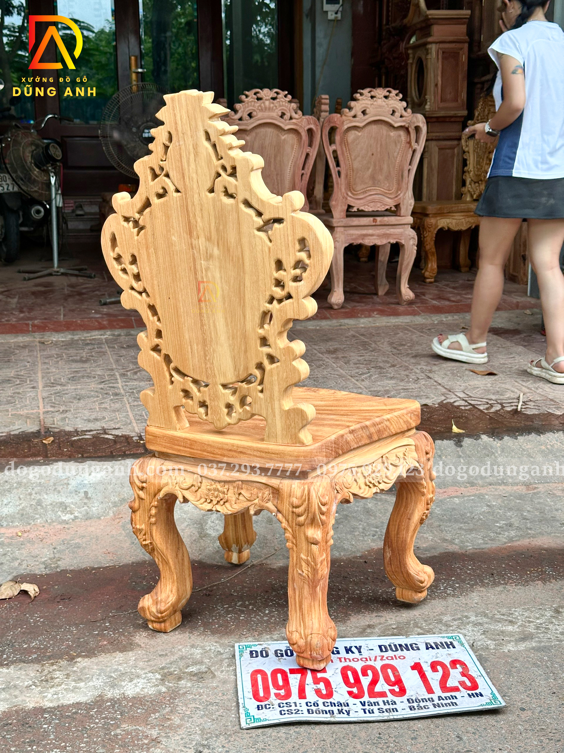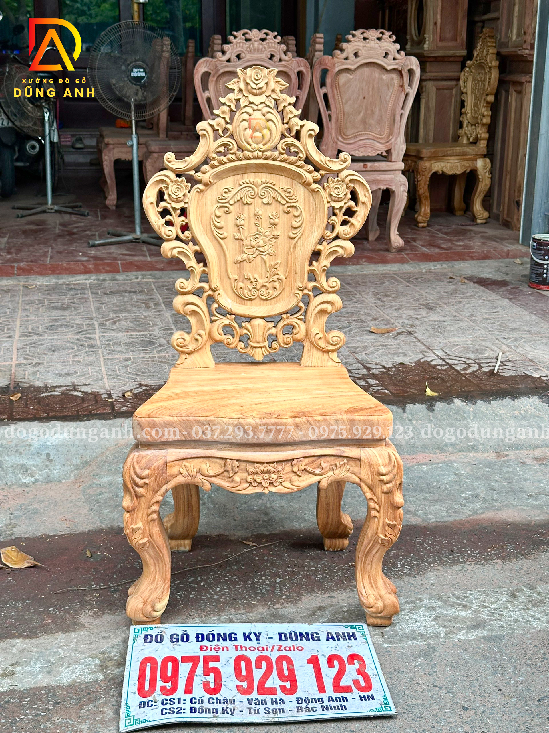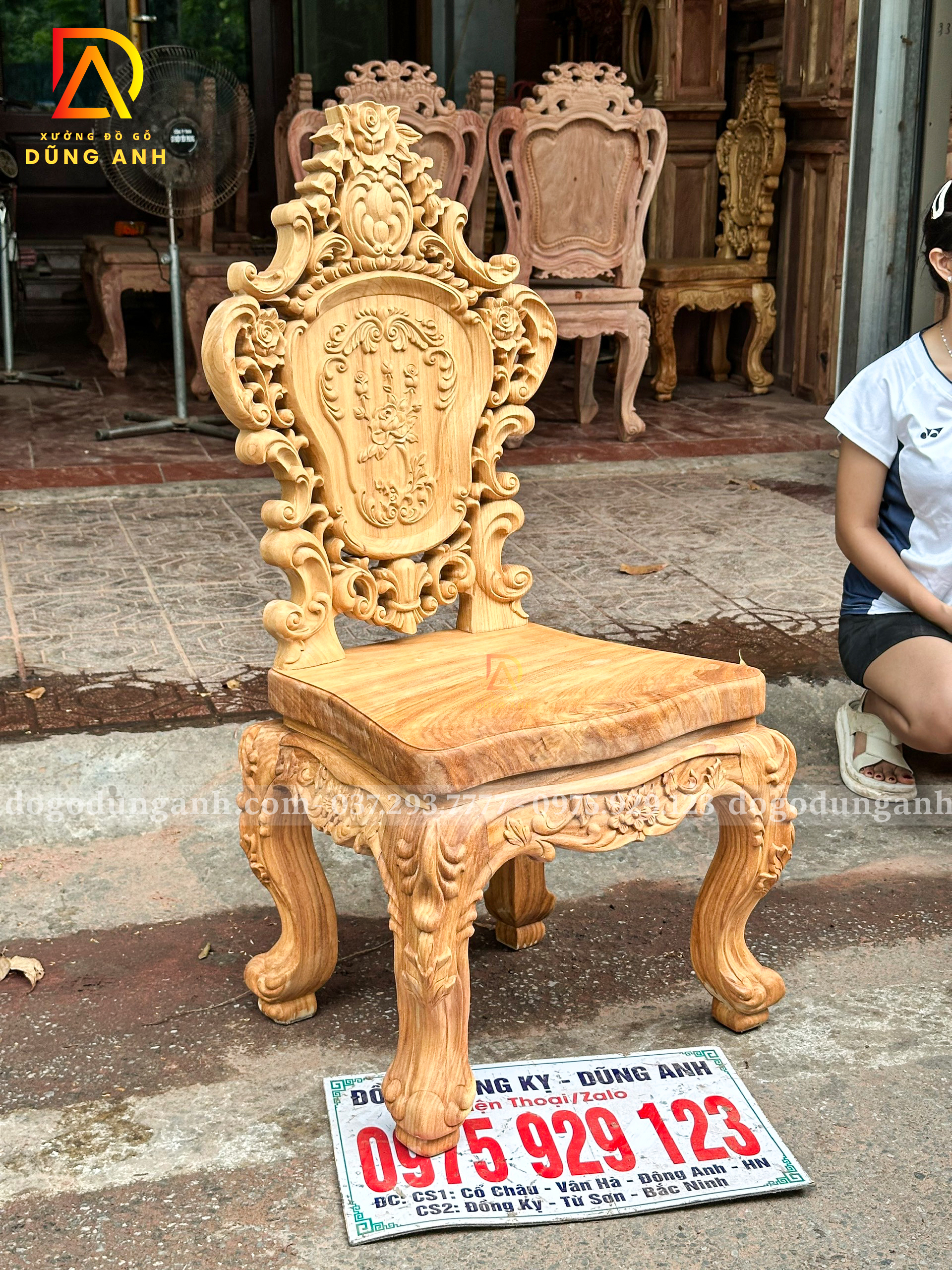 Hoa văn tân cổ điển được những nghệ nhân Xưởng đồ gỗ Dũng Anh chạm khắc tỉ mỉ tạo ra những đường nét sâu nổi hoa văn. Hoa văn tân cổ điển được chạm khắc trên bộ ghế ăn đòi hỏi sáng tạo, cân xứng phải có tay nghề cứng am hiểu về hoa văn phương tây và đặc biệt bàn tay phải có sự gia công kỹ lưỡng