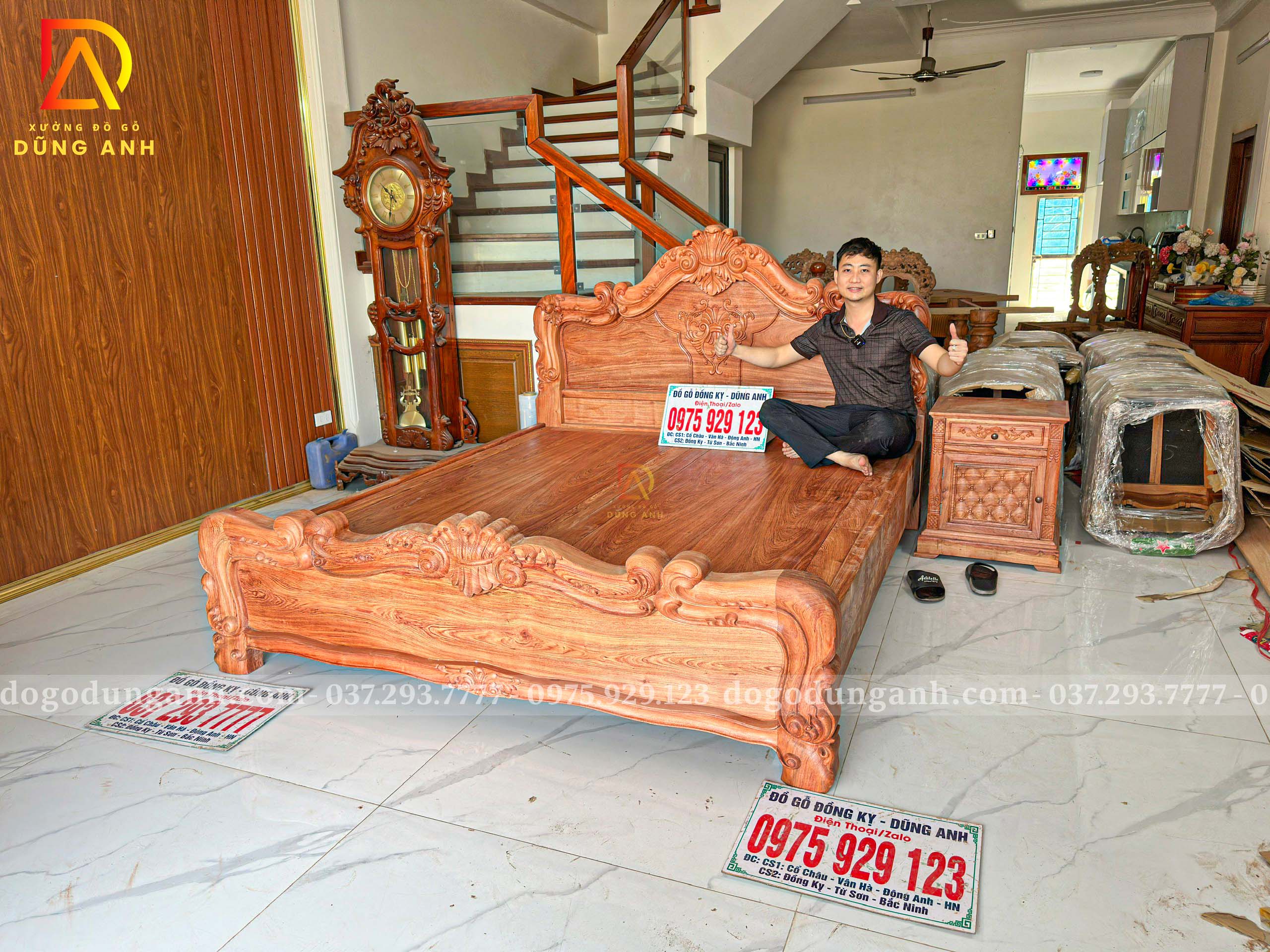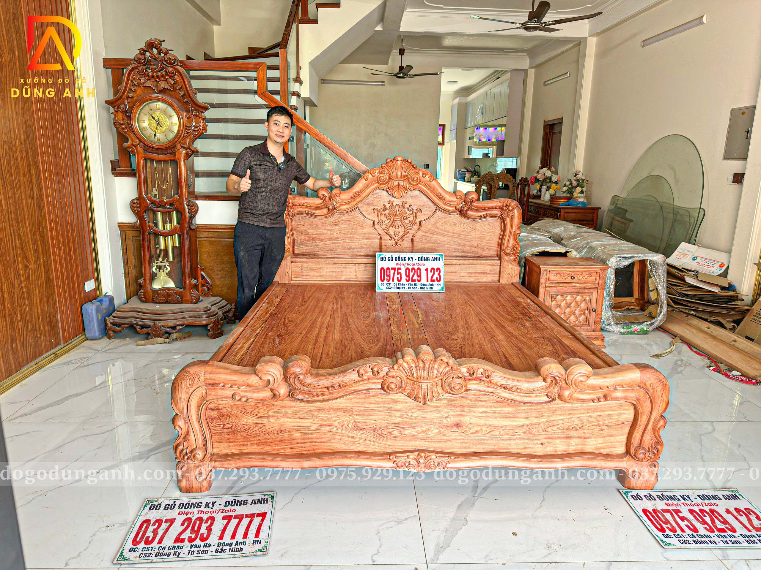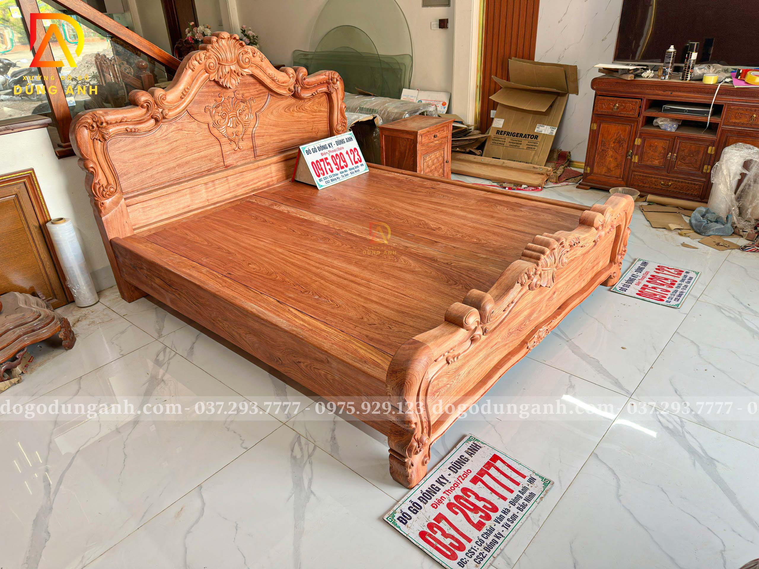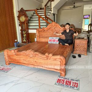 - Đầu giường được đục chạm hoa lá cây sang trọng , kênh bong đẳng cấp.