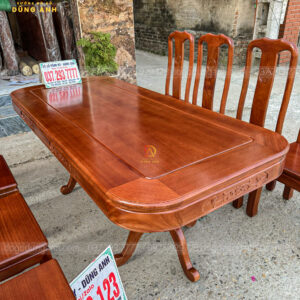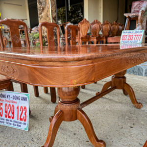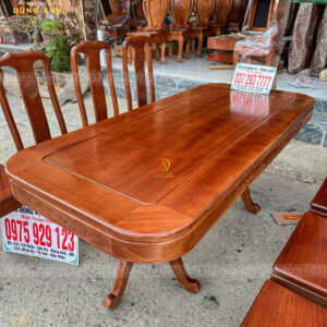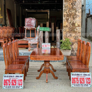 Bộ 6 ghế Triện Thọ mặt tràn và bàn chữ nhật bo góc từ gỗ Gõ Đỏ của Đồ Gỗ Dũng Anh không chỉ là những món đồ nội thất cao cấp mà còn là tác phẩm nghệ thuật, mang đến sự sang trọng và tiện ích cho không gian sống. Sản phẩm này xứng đáng là sự lựa chọn hàng đầu cho những ai yêu thích vẻ đẹp mộc mạc nhưng vẫn đầy sang trọng và đẳng cấp.