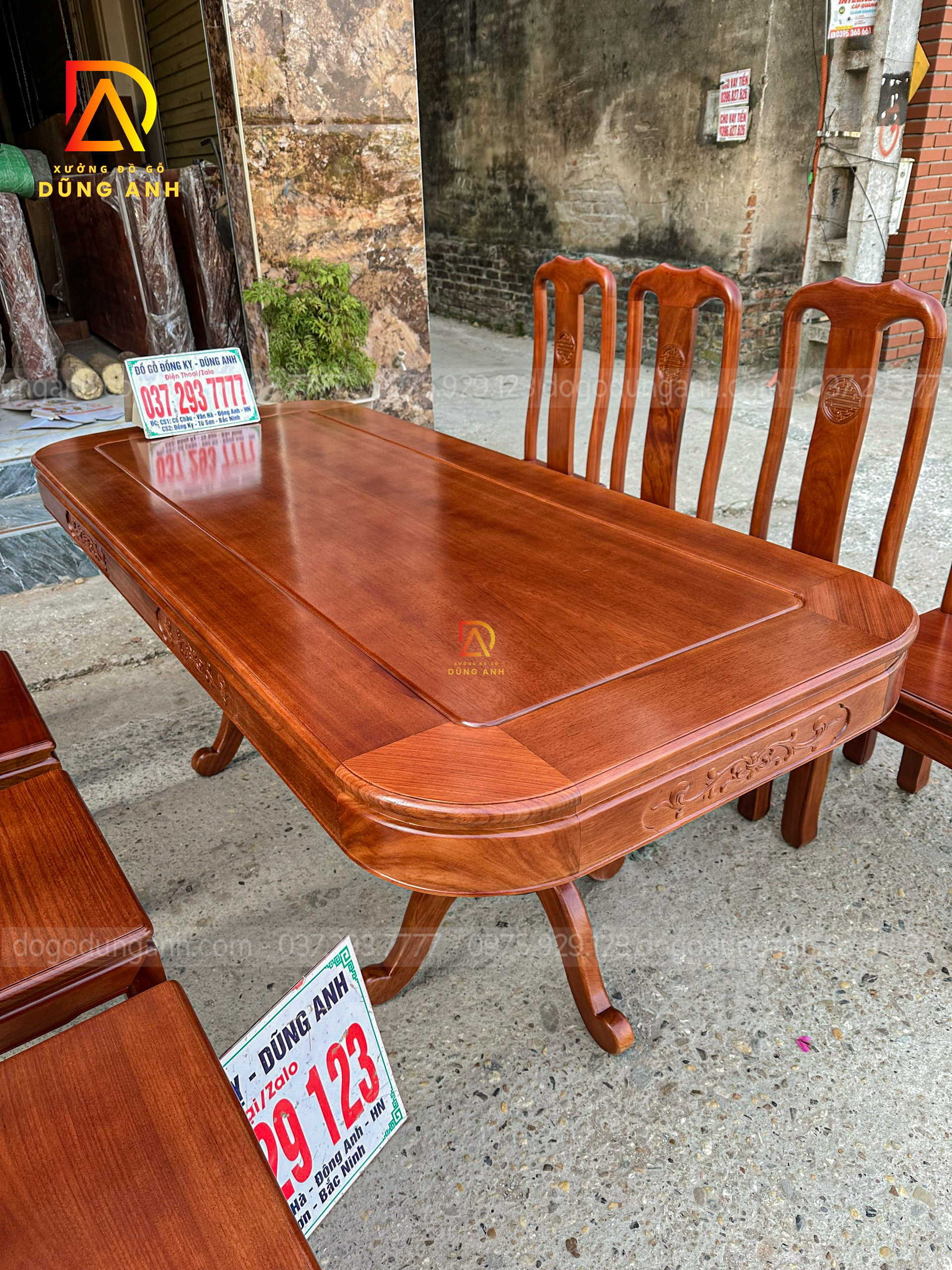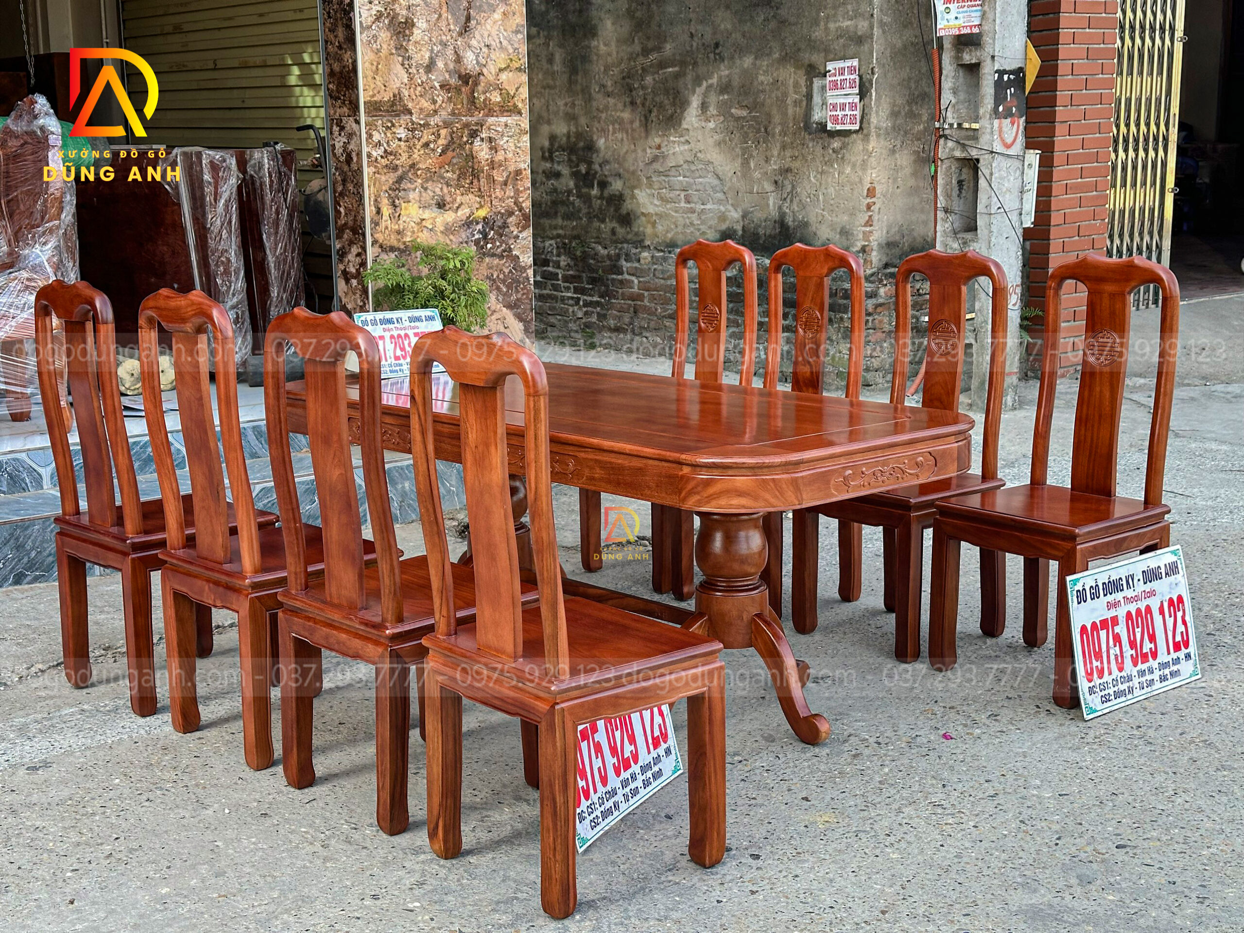 Quý khách có thể tham khảo thêm các mẫu bàn ghế ăn đẹp, bàn ghế ăn nguyên khối, các mẫu ghế ăn đẹp thì có thể liên hệ ngay với Xưởng đồ gỗ Dũng Anh qua:
