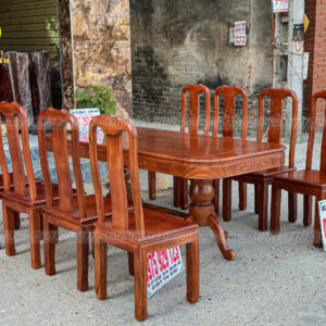 Đồ Gỗ Dũng Anh | Mẫu 6 ghế Triện Thọ mặt tràn + Bàn chữ nhật bo góc – gỗ Gõ Đỏ