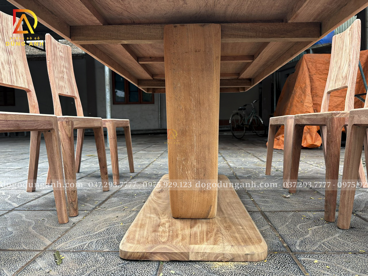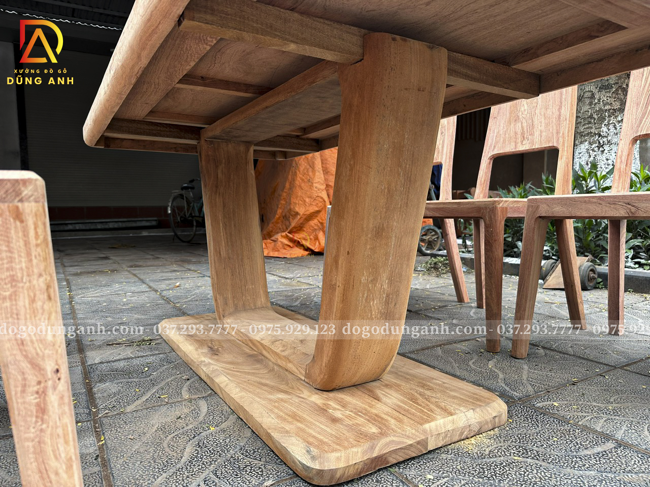 Đồ Gỗ Dũng Anh | Bộ 8 ghế hiện đại + Bàn chữ nhật chân thuyền | Gỗ Hương Đá