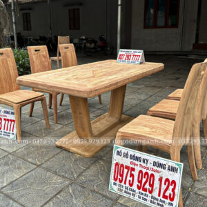 Đồ Gỗ Dũng Anh | Mẫu Bàn Ăn 6 Ghế Hiện Đại ( Cong ) + Bàn Chữ Nhật Chân Thuyền Ng.khối – Gỗ Hương Đá