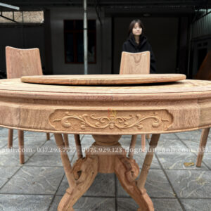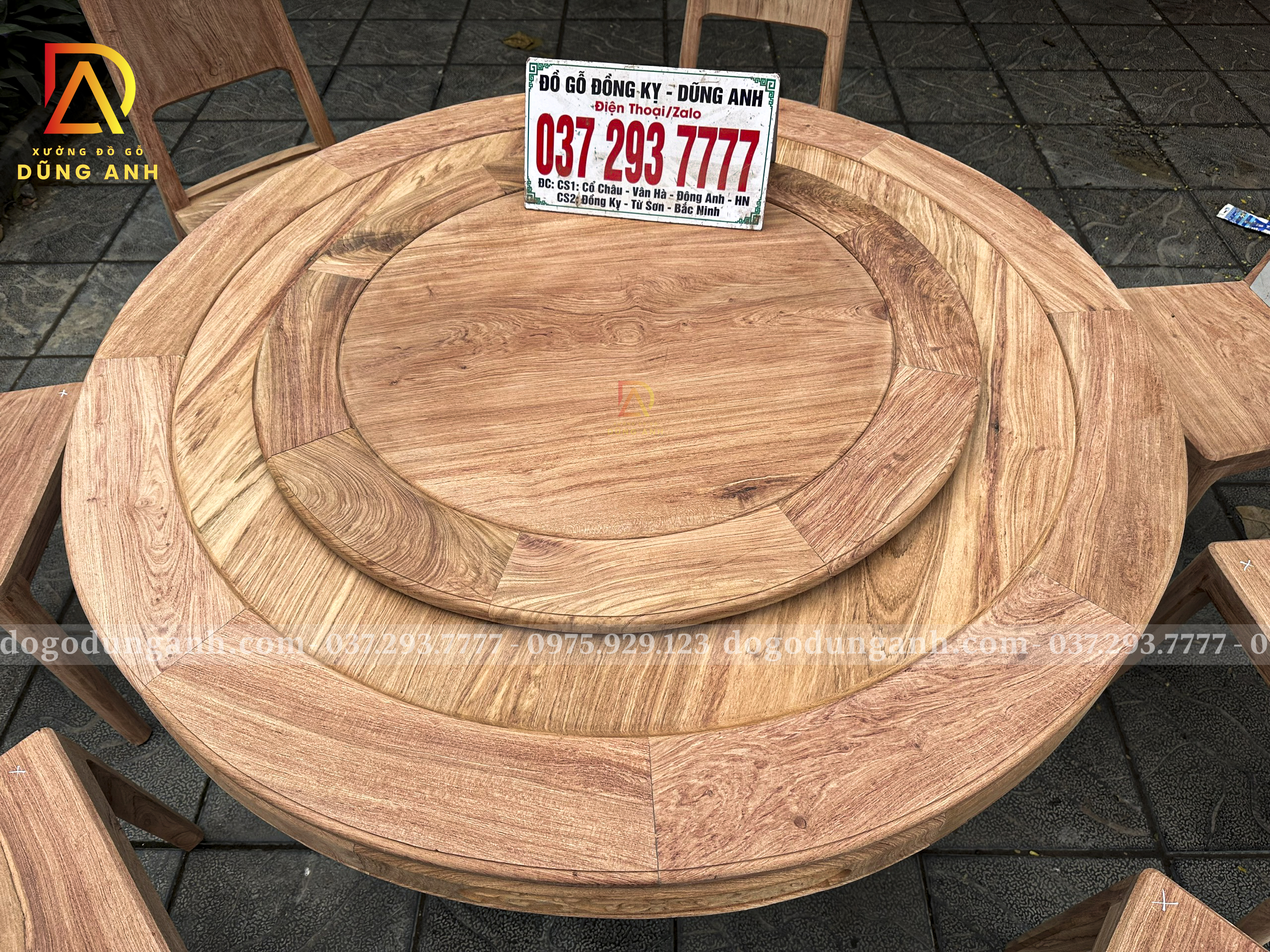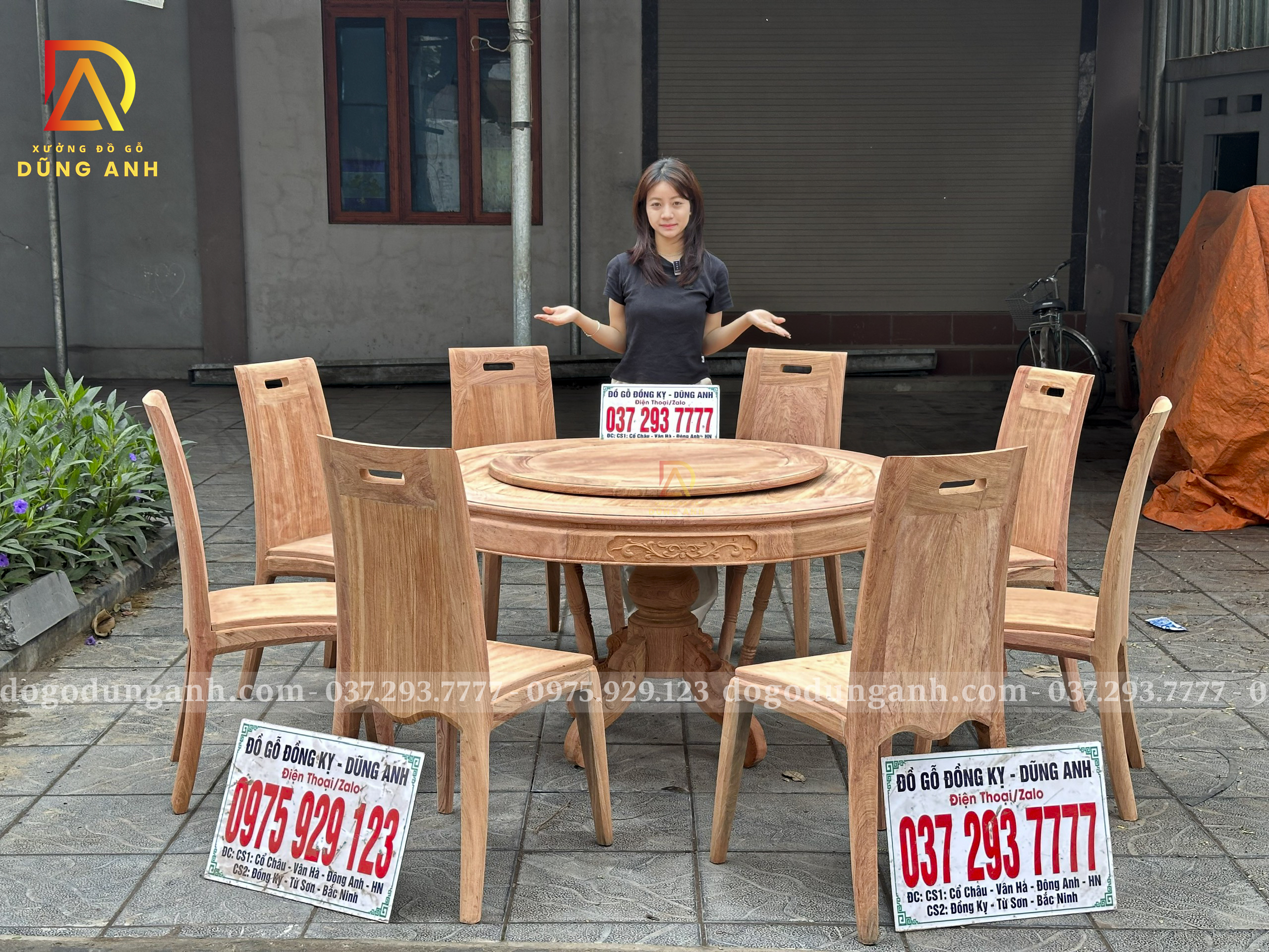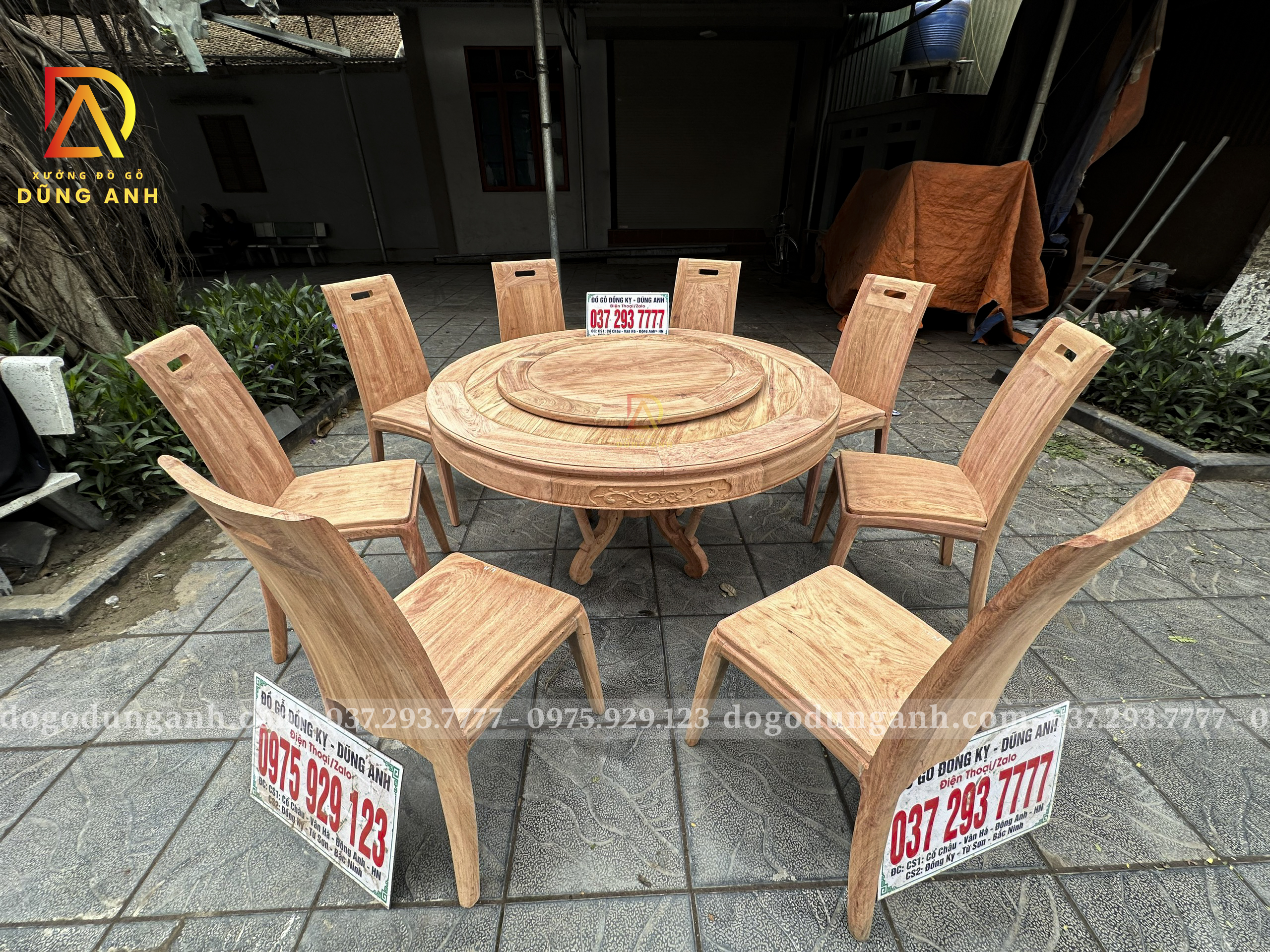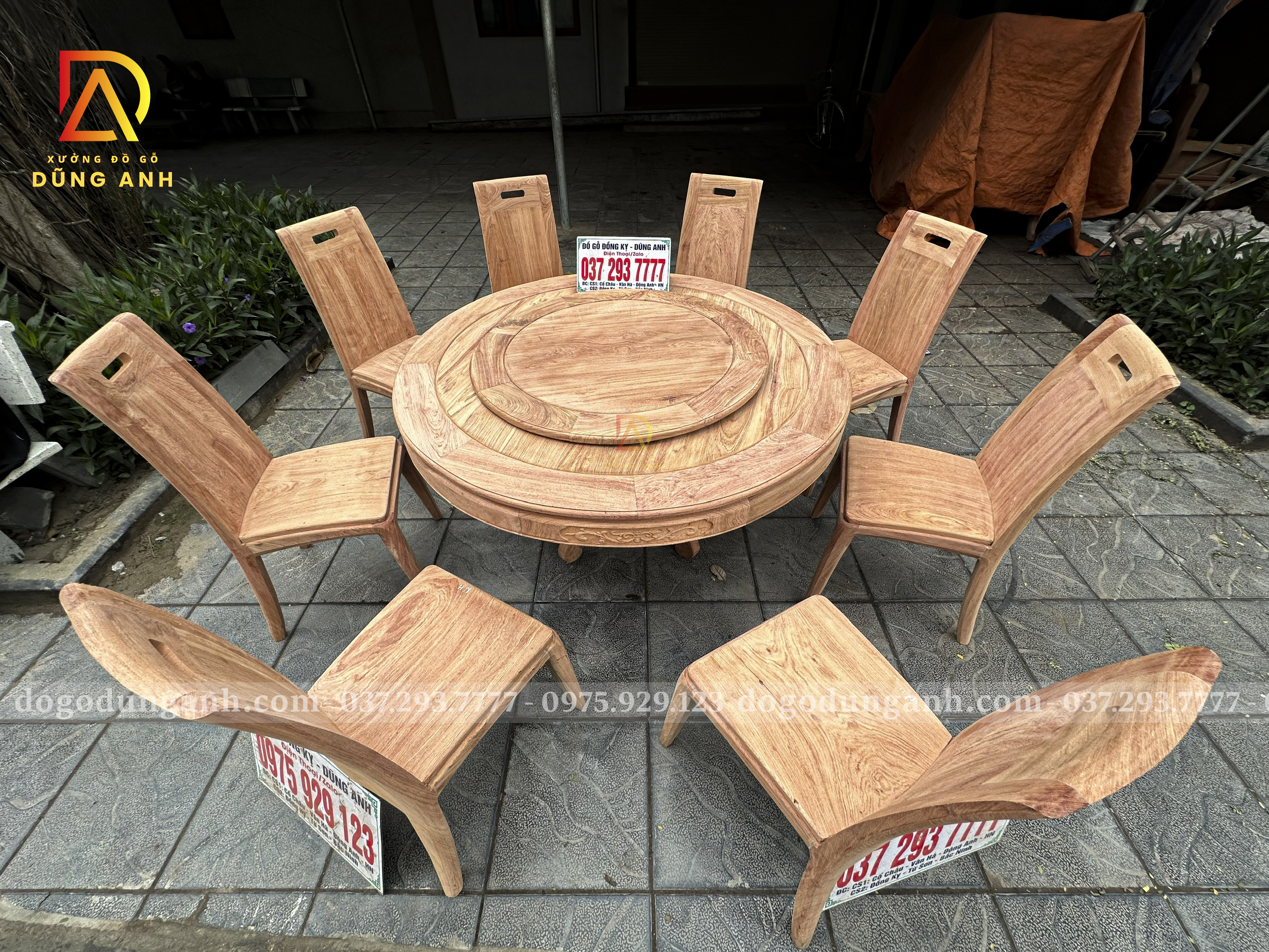 Đồ Gỗ Dũng Anh | Mẫu Bàn Ăn 8 Ghế Hiện Đại Cong + Bàn tròn yếm bo kèm mâm xoay gỗ – Gỗ Hương Đá