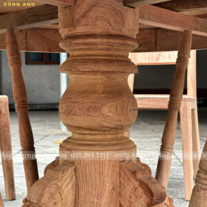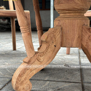 - Chiếc chân trụ đặc liền Nguyên Khối được tiện tròn thủ công hoàn toàn bằng tay có kích thước đường kính 20cm , đi cùng với hai chiếc chân trụ là 3 chiếc chân chó tạo thêm độ vững chãi để có thể đỡ được mặt bàn