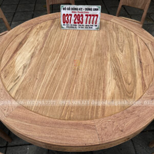 - Mặt bàn được ghép từ 2 tấm gỗ trên cùng 1 thân cây với độ dày 1.2 cm , bên xưởng em đã chọn gỗ lọc vân kỹ lưỡng, kích thước Đường Kính của chiếc bàn này là 1m38