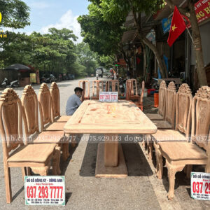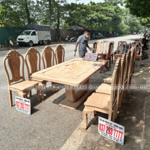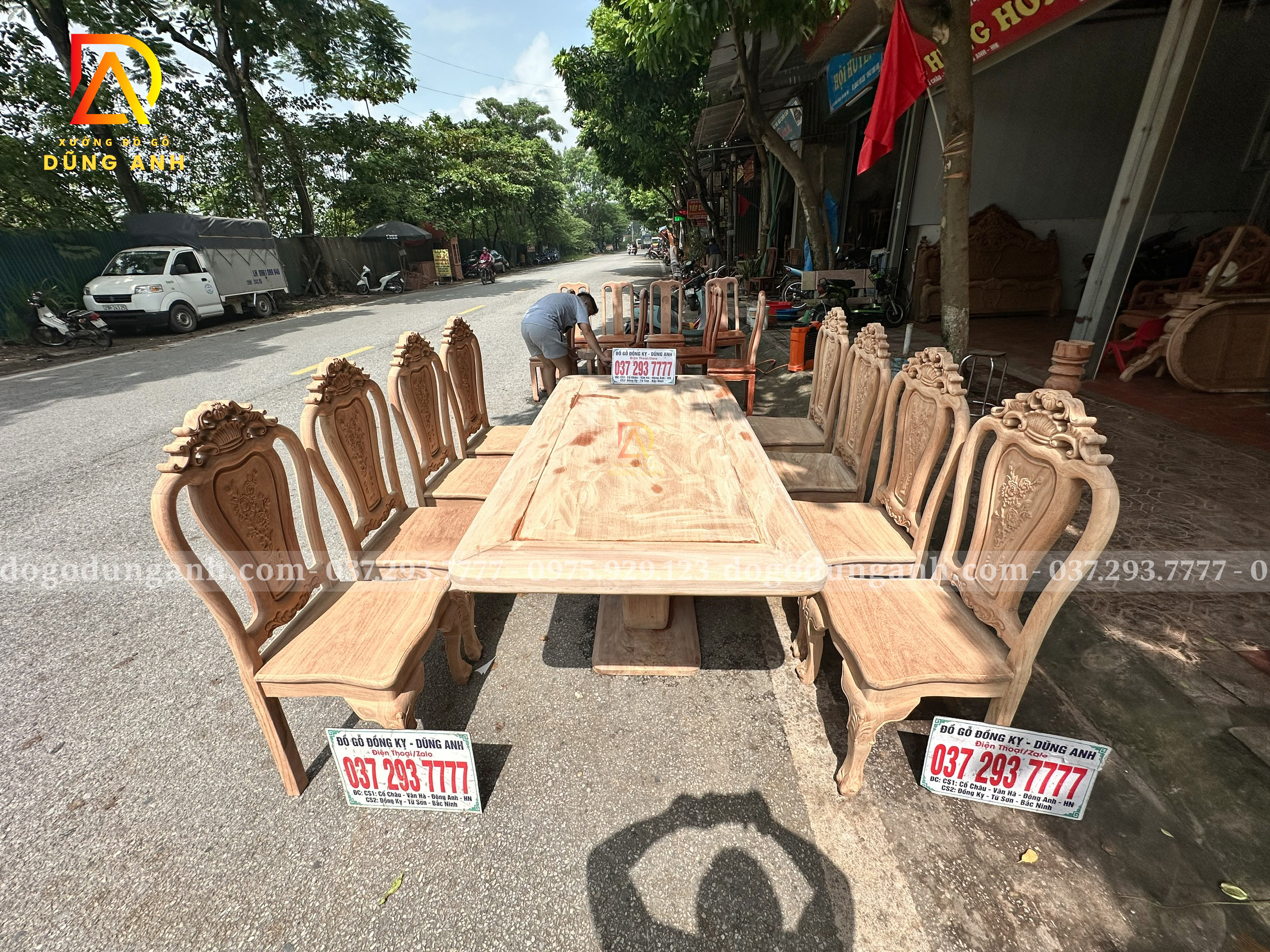 Đồ Gỗ Dũng Anh | Mẫu Bàn Ăn 8 Ghế Hoa Cúc Kết Hợp Bàn Chữ Nhật Chân Trụ Nguyên Khối – Gỗ Gõ Đỏ