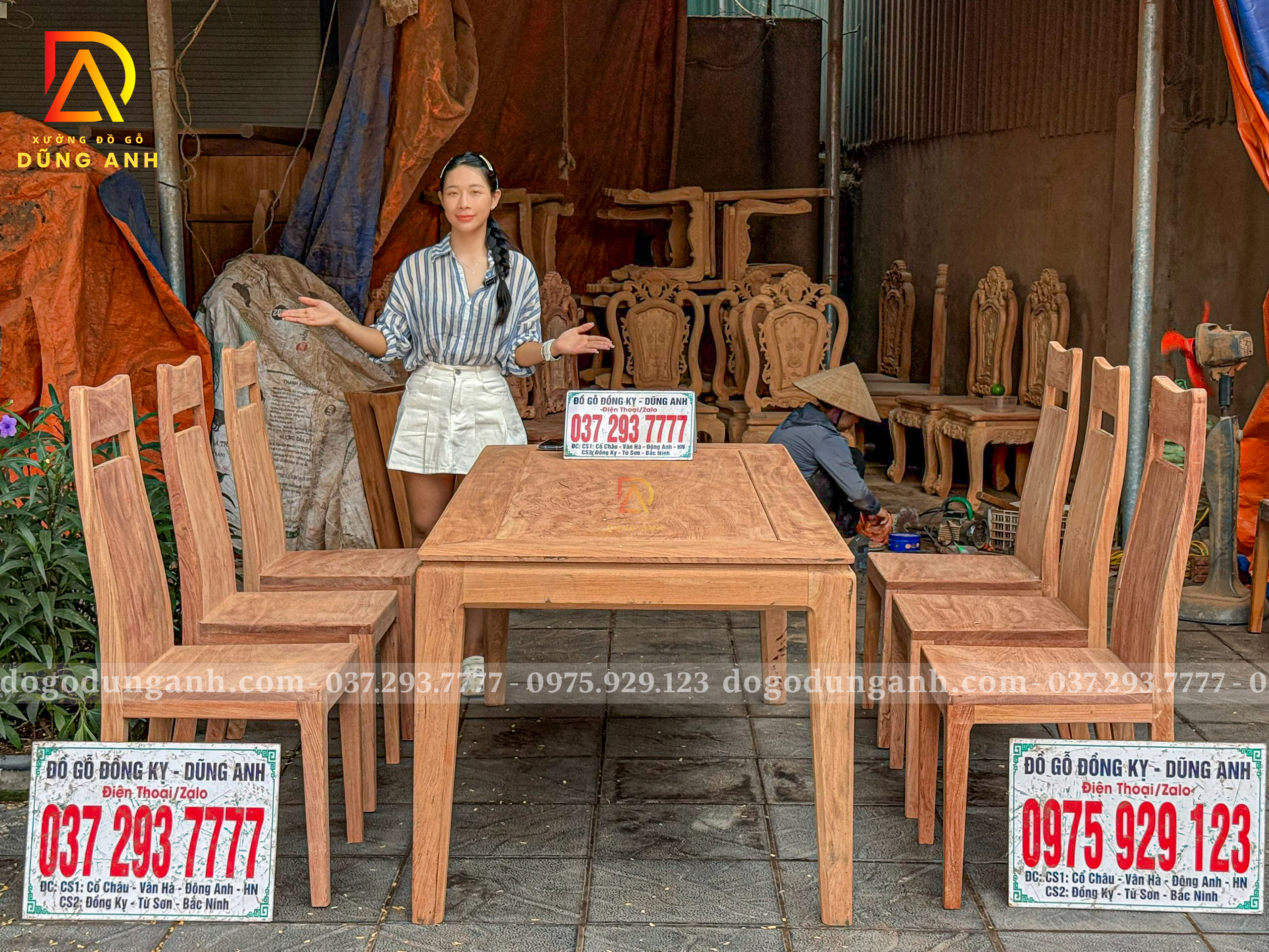 Để tạo ra sản phẩm nội thất đẹp và chất lượng, việc lựa chọn loại gỗ rất quan trọng. Đồ Gỗ Dũng Anh đã chọn gỗ gõ đỏ, phù hợp với yêu cầu của khách hàng thượng lưu, những người có hiểu biết và yêu cầu cao. Mỗi sản phẩm từ xưởng đều được chọn lọc kỹ lưỡng, thể hiện tâm huyết và tinh hoa của nghệ nhân. Khách hàng có thể tham khảo các mẫu bàn ghế ăn đẹp và bàn ghế nguyên khối bằng cách liên hệ với xưởng