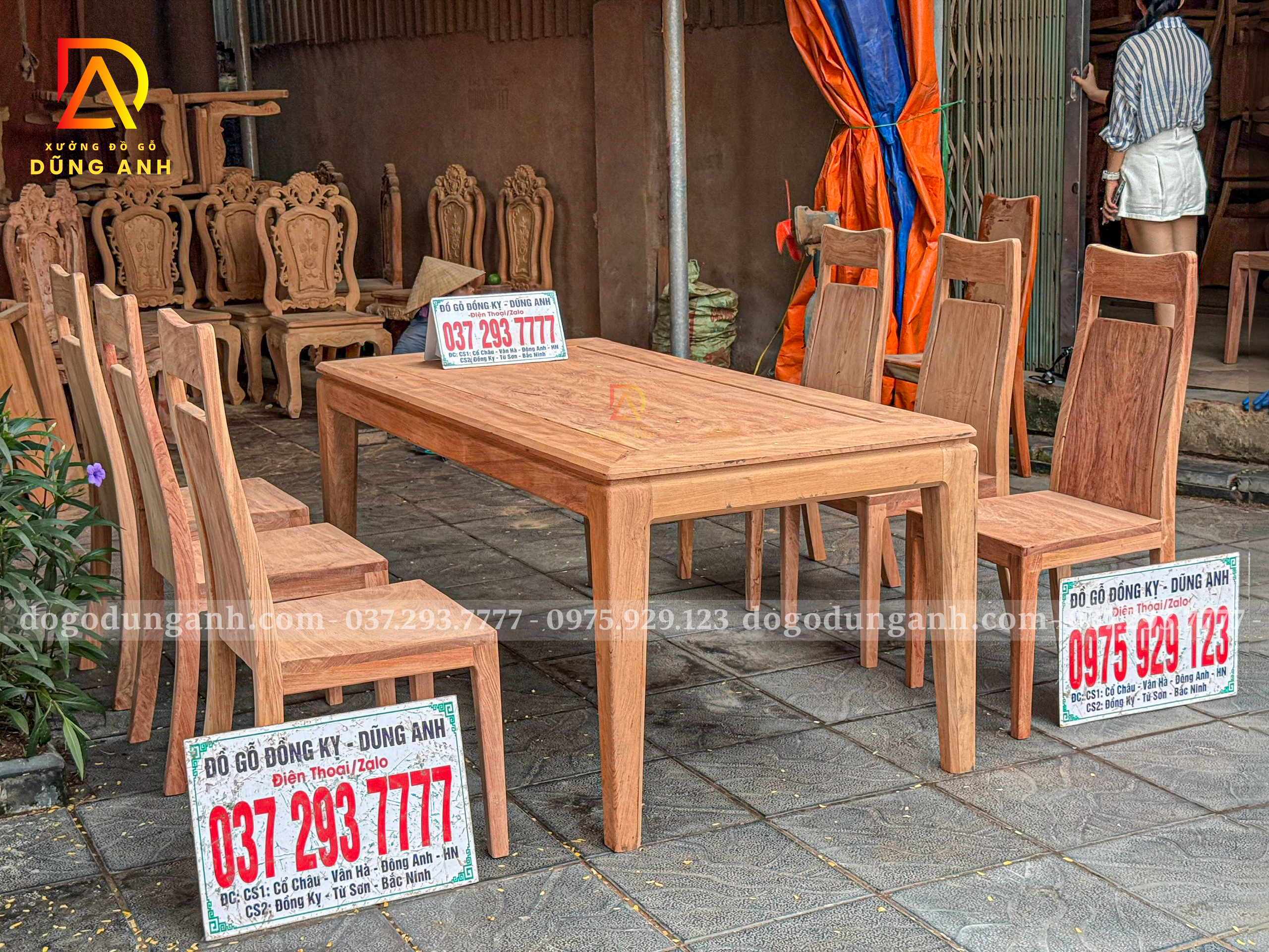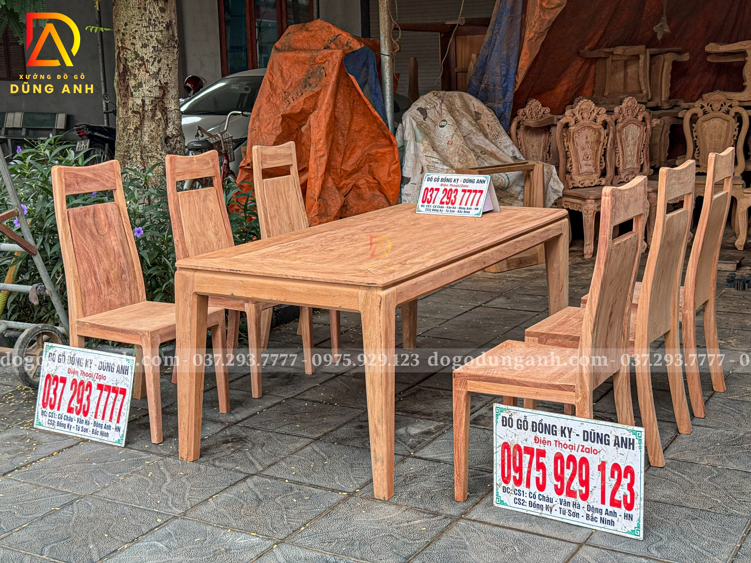 Đồ Gỗ Dũng Anh | Mẫu Bàn Ăn Hiện Đại Kiểu Dáng Zito – 6 Ghế kết hợp Bàn Chữ Nhật 4 Chân Gỗ Hương Đá