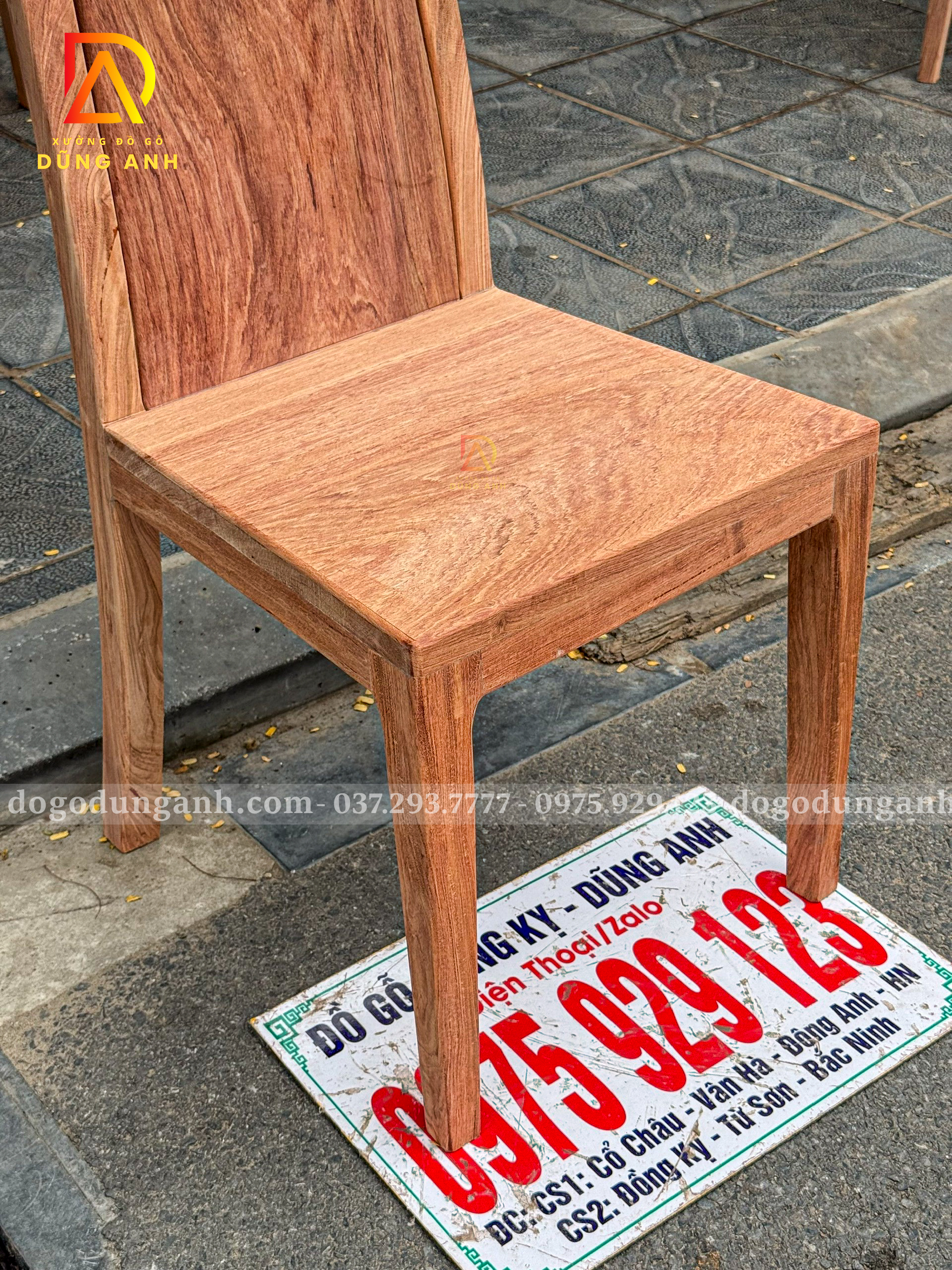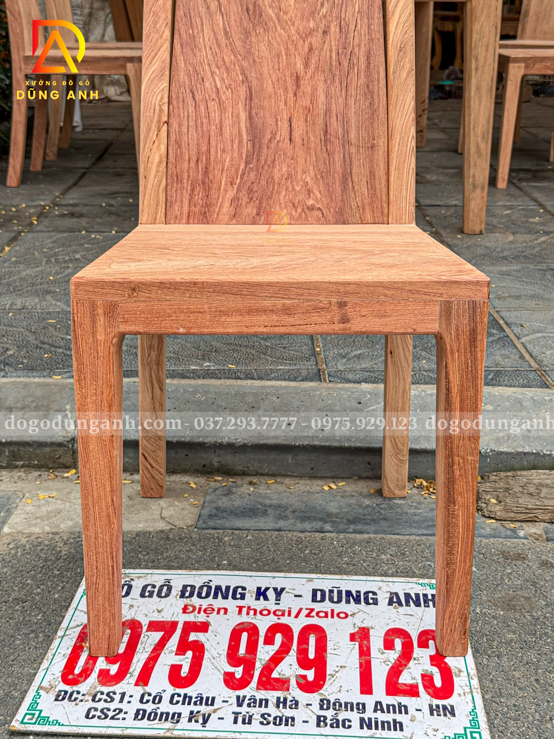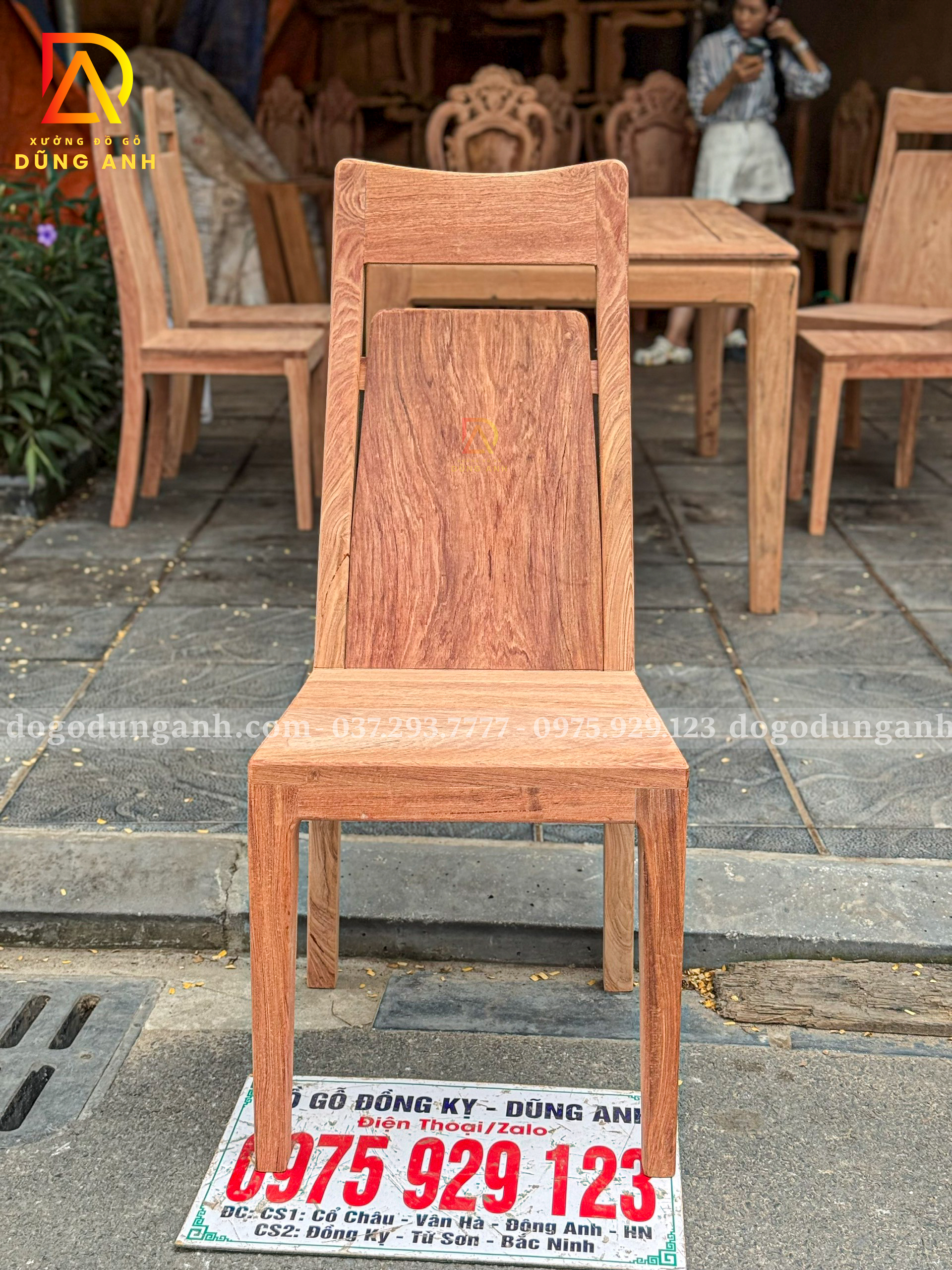 Mẫu ghế ăn được chế tác 100% từ gỗ hương đá tự nhiên, nổi bật với thiết kế hiện đại, thanh thoát – lý tưởng cho không gian sống tối giản như căn hộ, nhà phố, phòng ăn gia đình