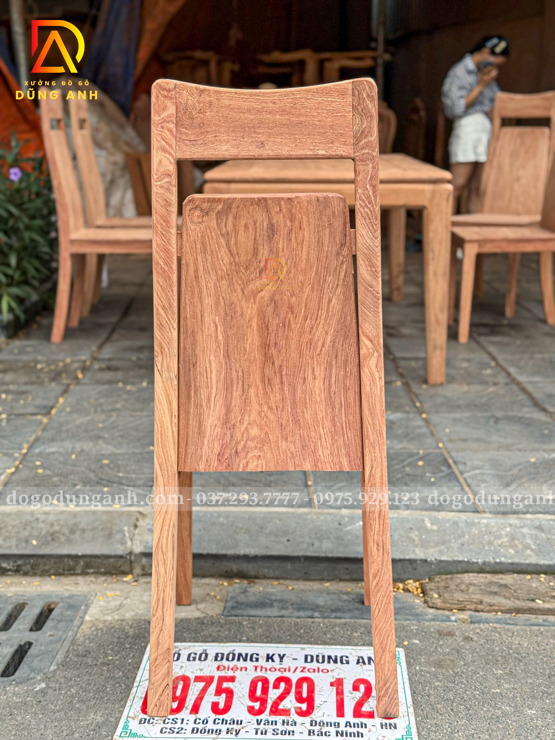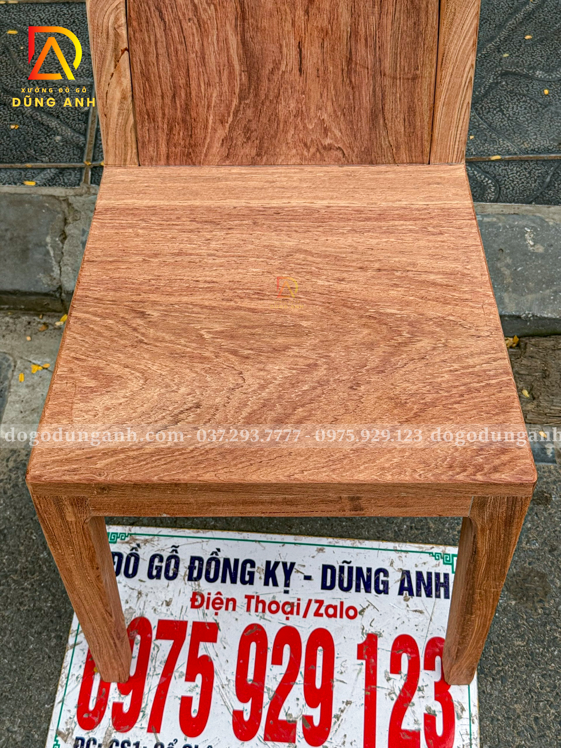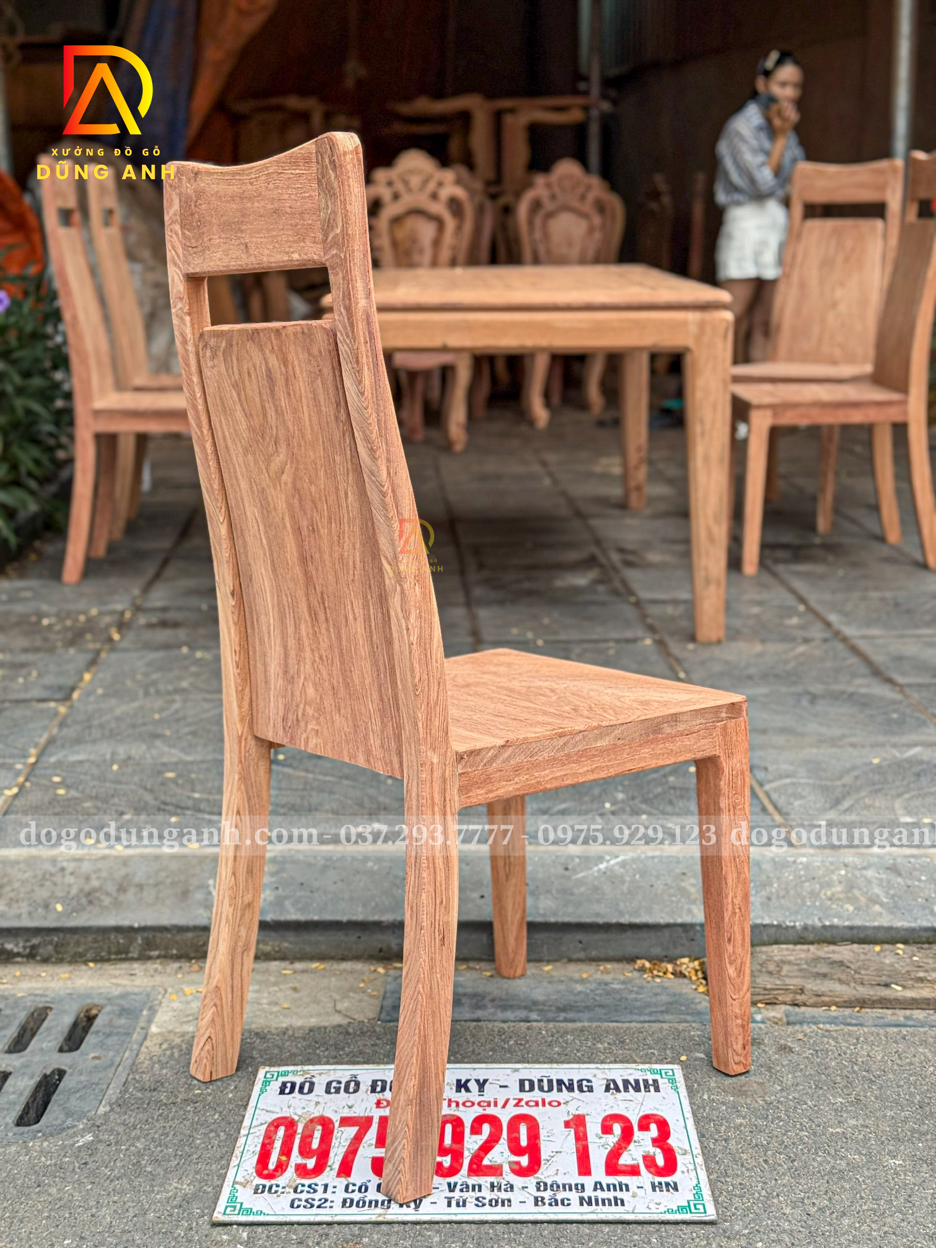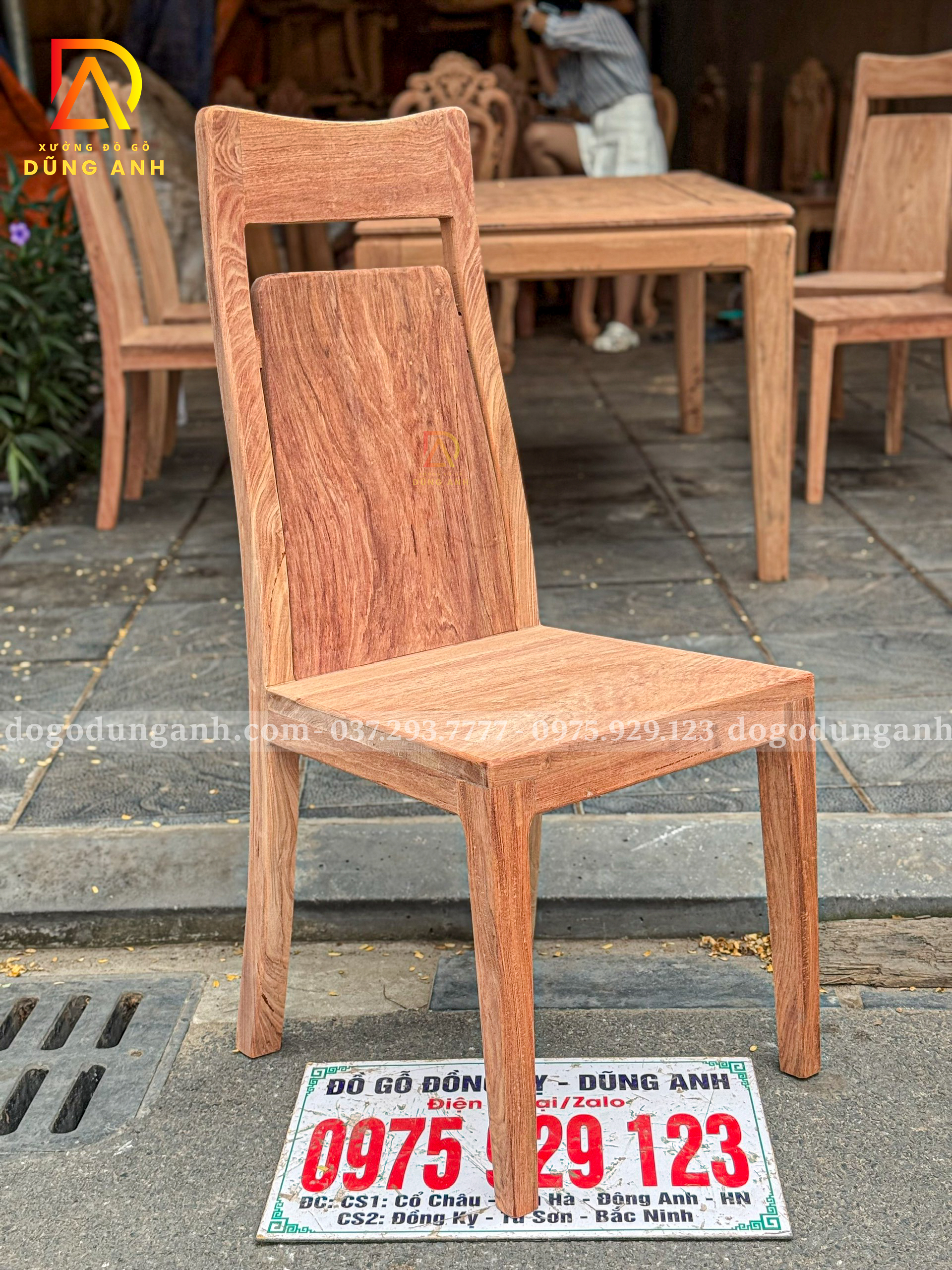 Mẫu ghế ăn được chế tác 100% từ gỗ hương đá tự nhiên, nổi bật với thiết kế hiện đại, thanh thoát – lý tưởng cho không gian sống tối giản như căn hộ, nhà phố, phòng ăn gia đình