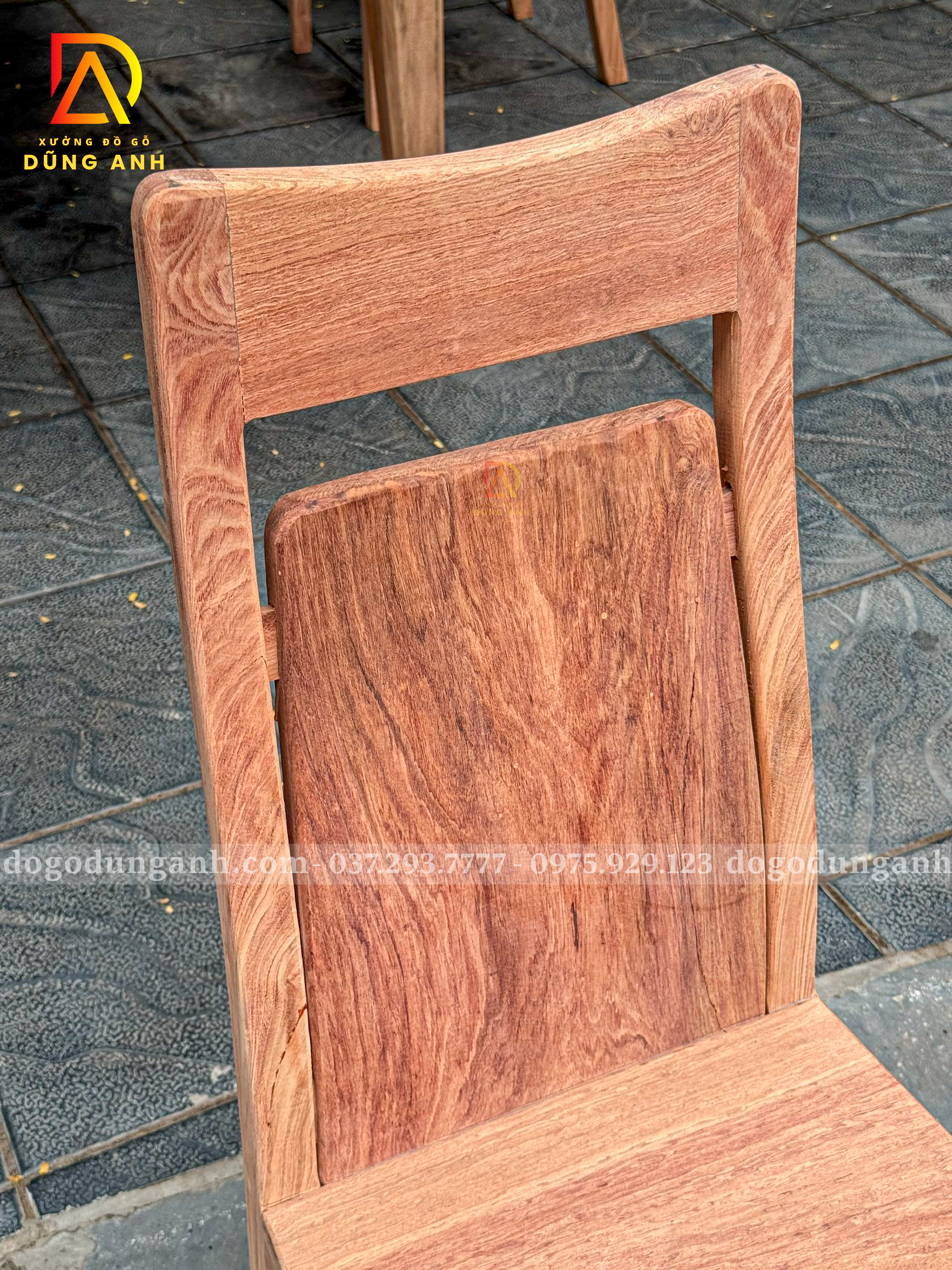 Phần tựa ghế được uốn cong nhẹ theo dáng lưng người ngồi, tạo sự thoải mái và nâng đỡ tốt. Gỗ hương đá sở hữu vân gỗ sắc nét, màu sắc trầm ấm, bề mặt thớ mịn, nặng tay và bền bỉ với thời gian. Đặc biệt, gỗ có khả năng chống mối mọt, không cong vênh, cùng mùi thơm nhẹ tự nhiên dễ chịu