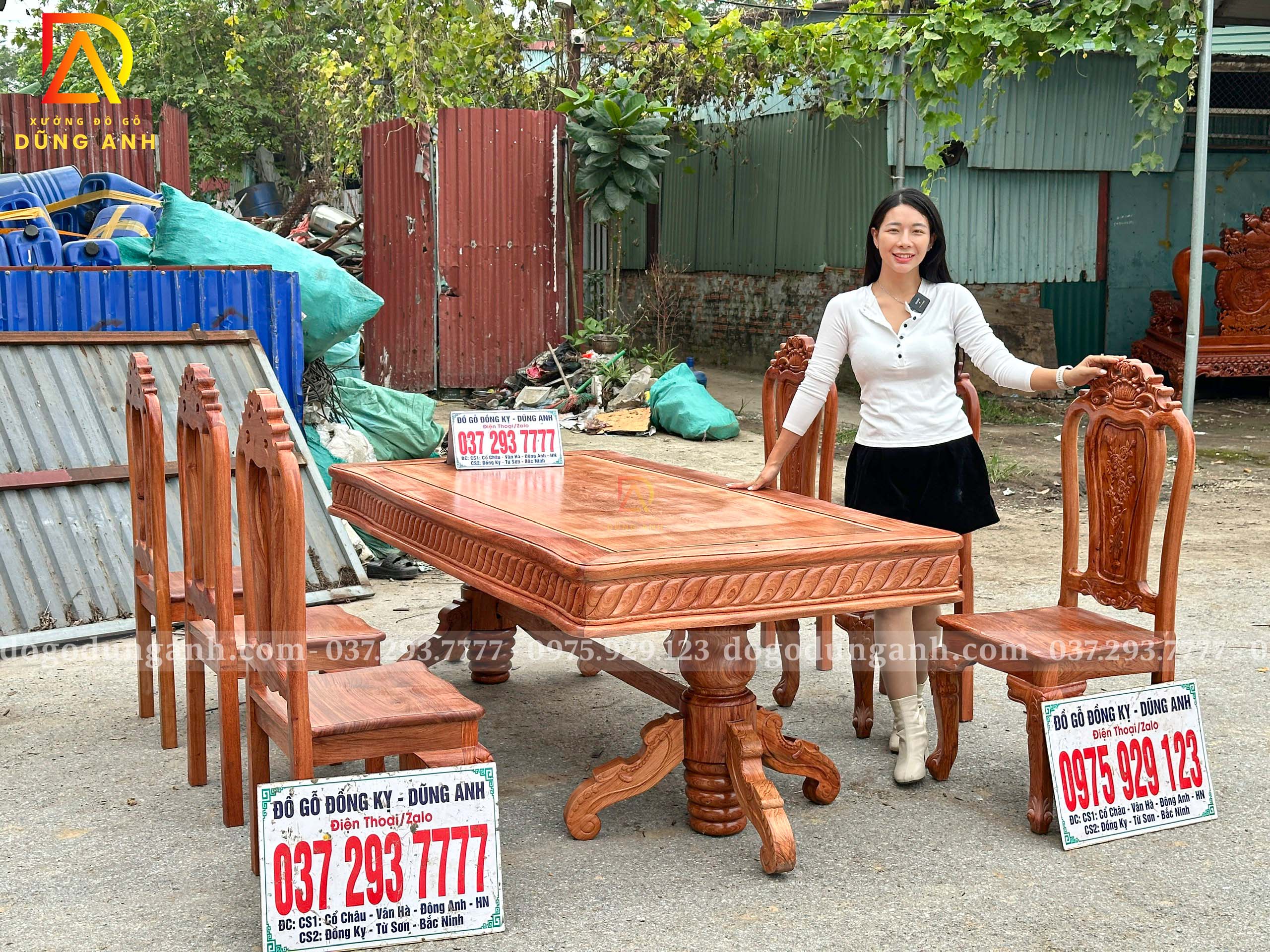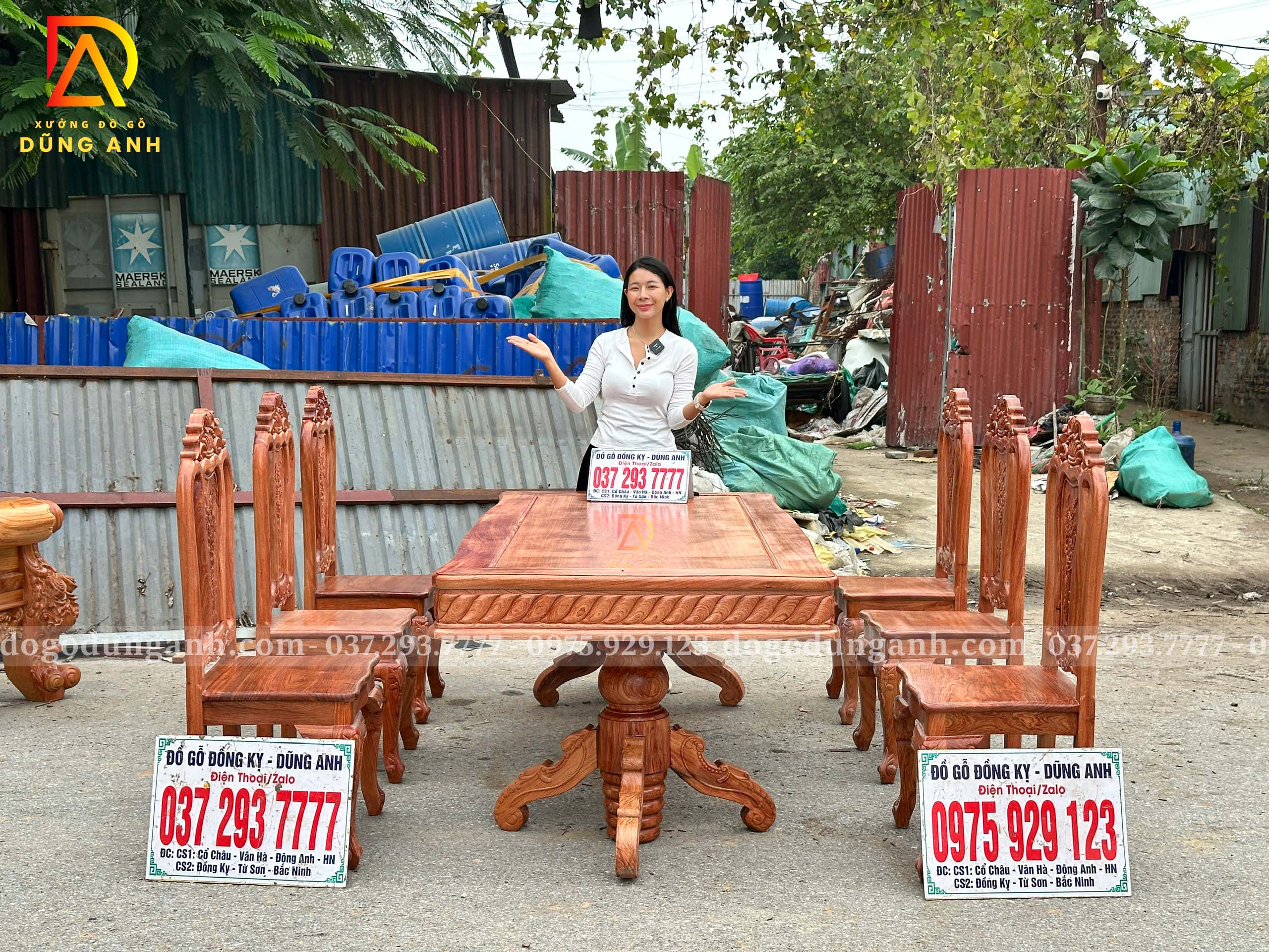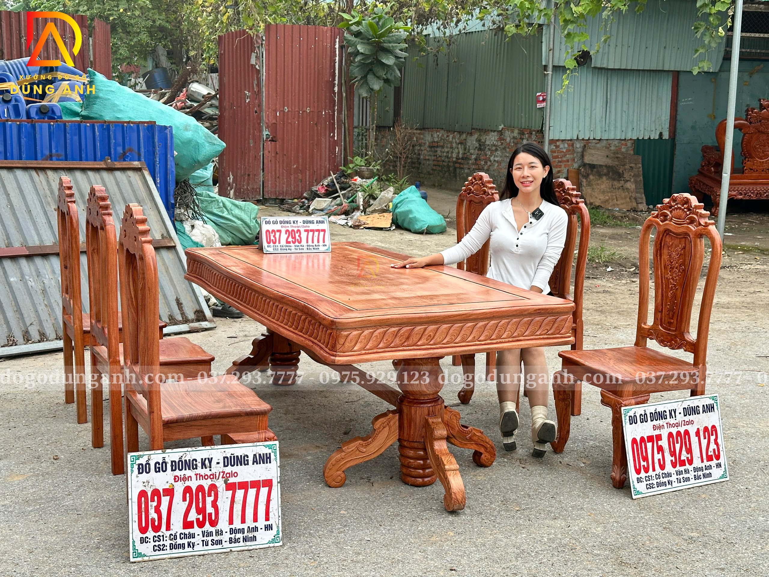 Đồ Gỗ Dũng Anh | Mẫu Bàn Ăn Siêu Vip 6 Ghế Hoa Cúc – Bàn Củ Lạc Siêu Vip – Gỗ Hương Đá