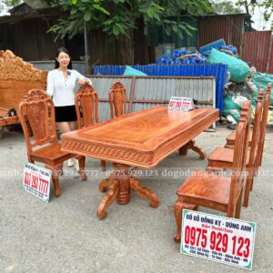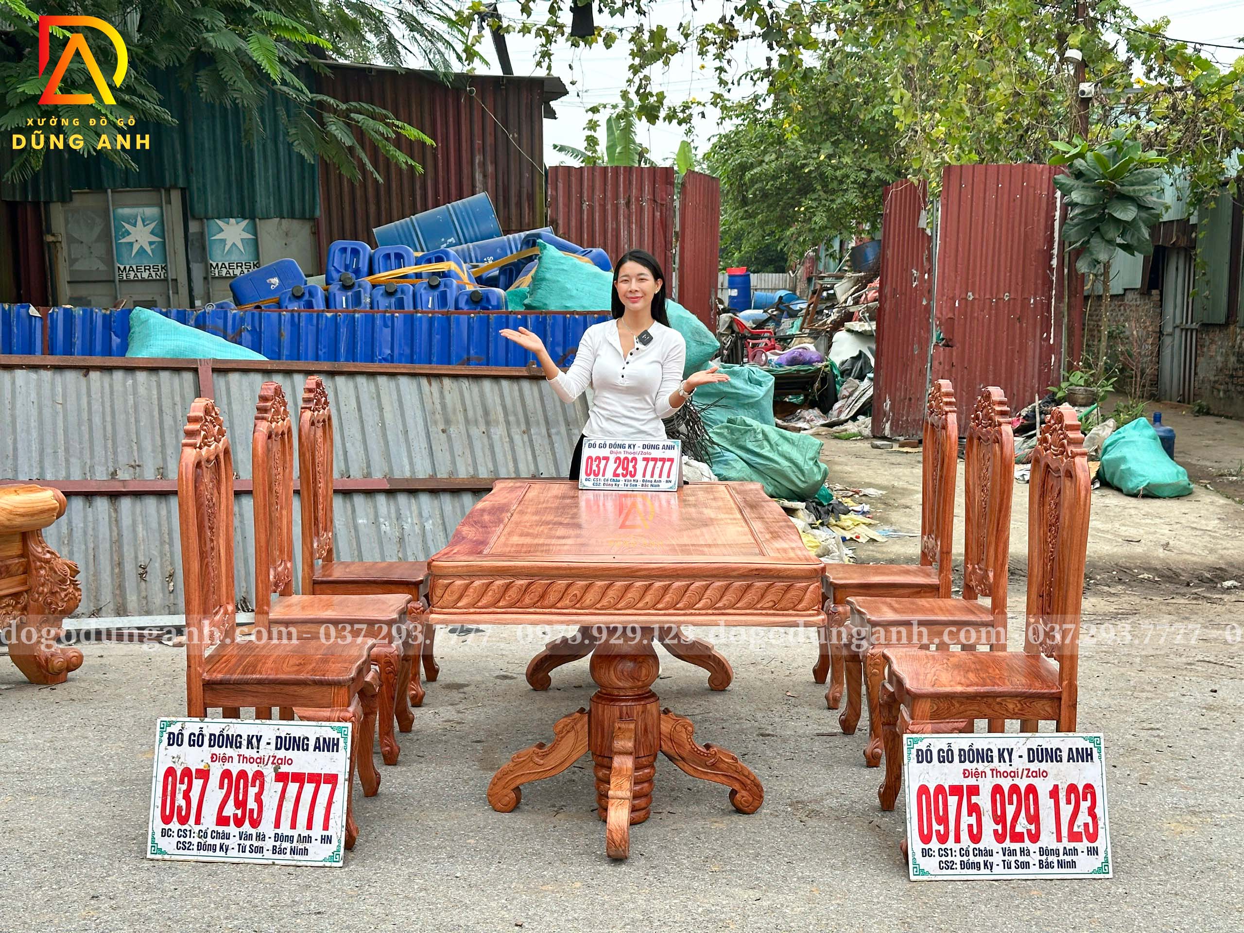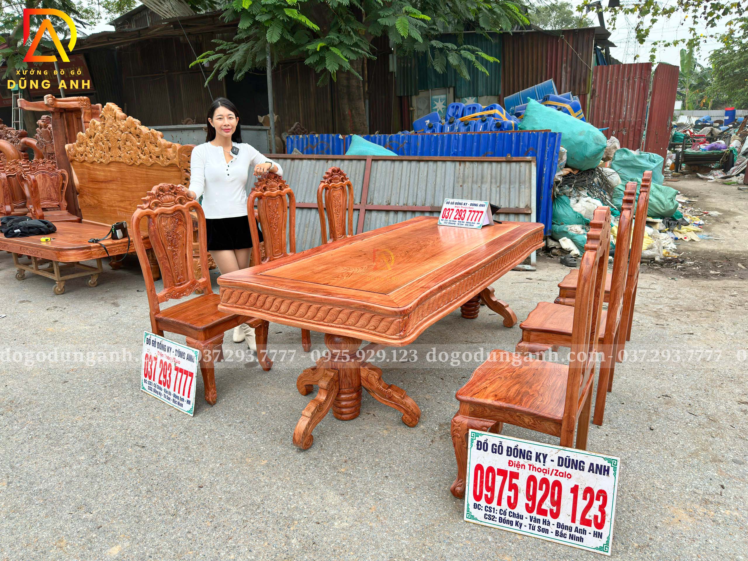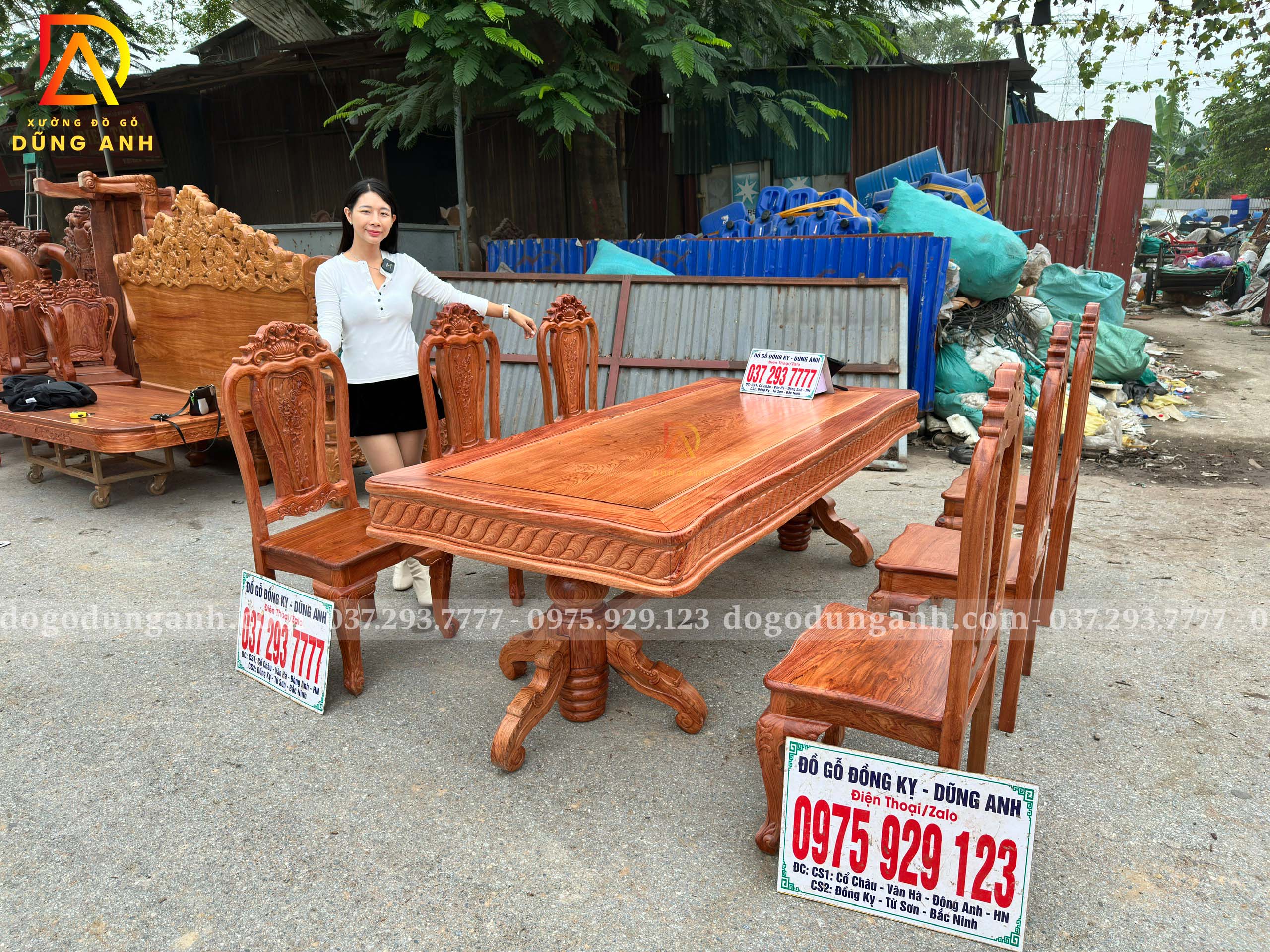 Đồ Gỗ Dũng Anh | Mẫu Bàn Ăn Siêu Vip 6 Ghế Hoa Cúc – Bàn Củ Lạc Siêu Vip – Gỗ Hương Đá