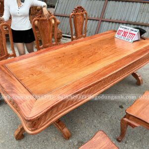 Bộ bàn ghế ăn 6 ghế hoa cúc kết hợp bàn Củ Lạc siêu vip gỗ hương đá tự nhiên 100% chinh phục mọi ánh nhìn nhờ kiểu dáng hiện đại sang trọng, hoa văn chạm tinh xảo và chất liệu gỗ quý cực bền. Thiết kế tối ưu cho nhà phố, căn hộ, biệt thự – vừa tiết kiệm diện tích, vừa nâng tầm giá trị không gian sống