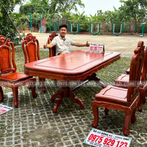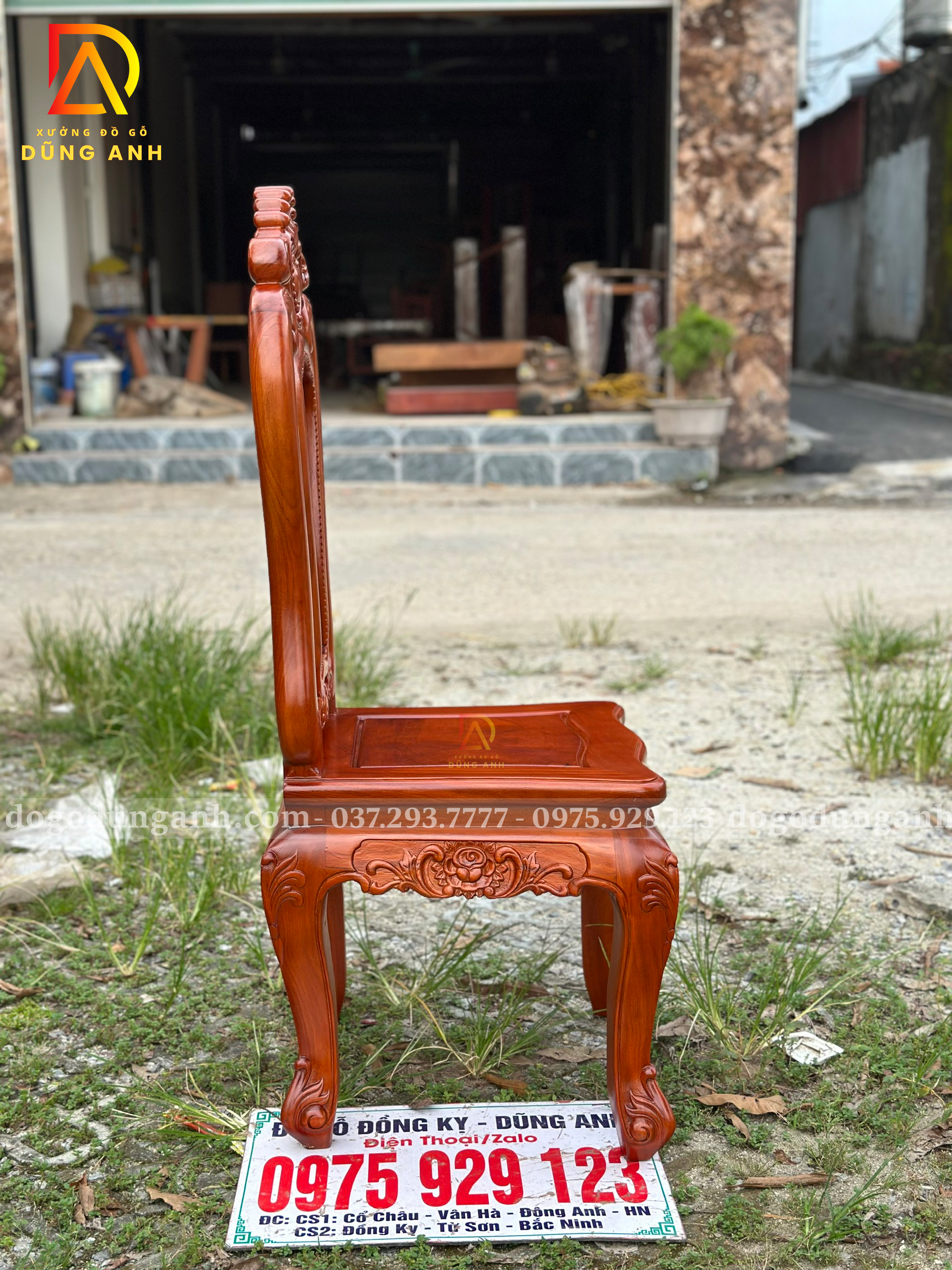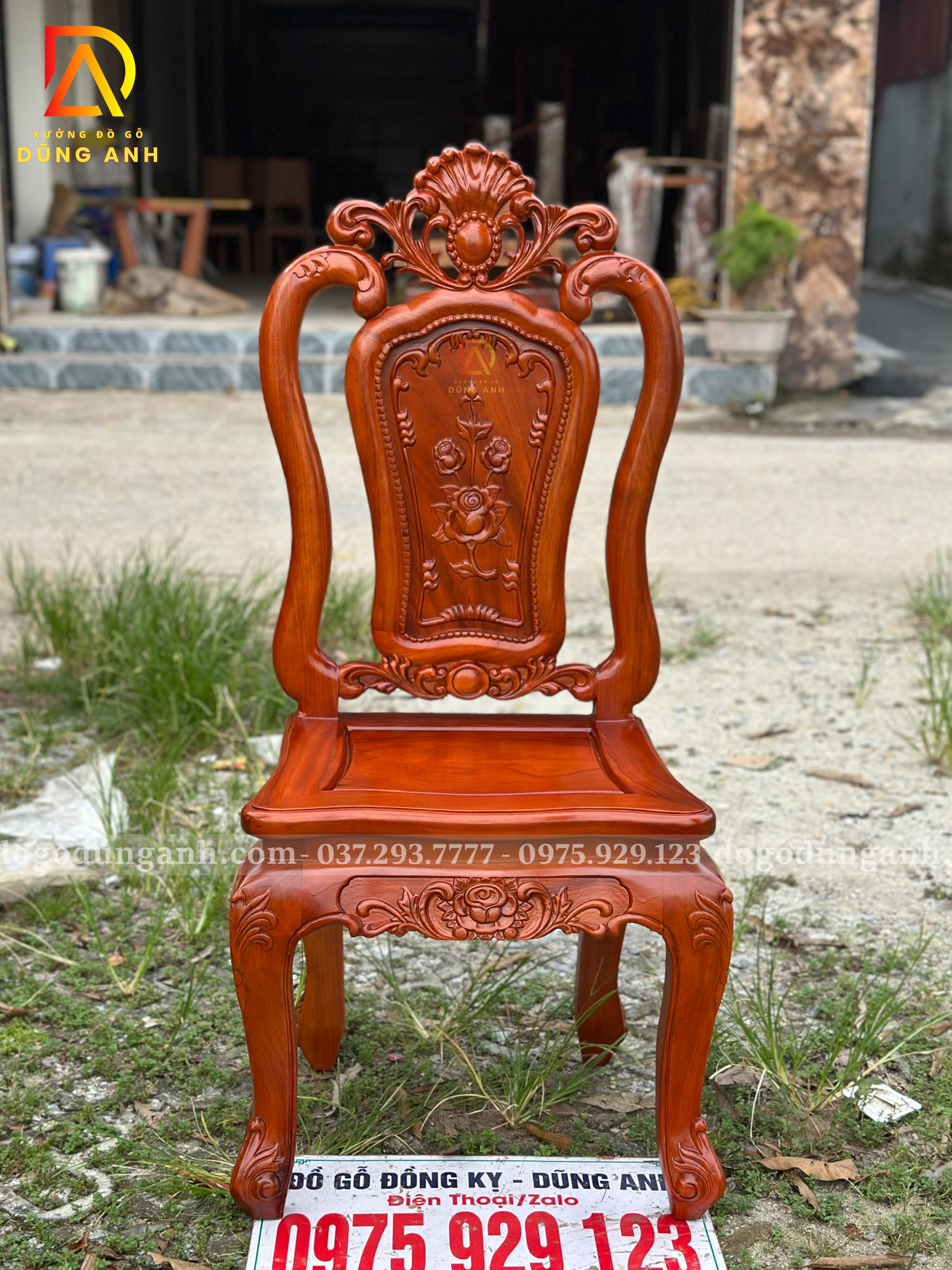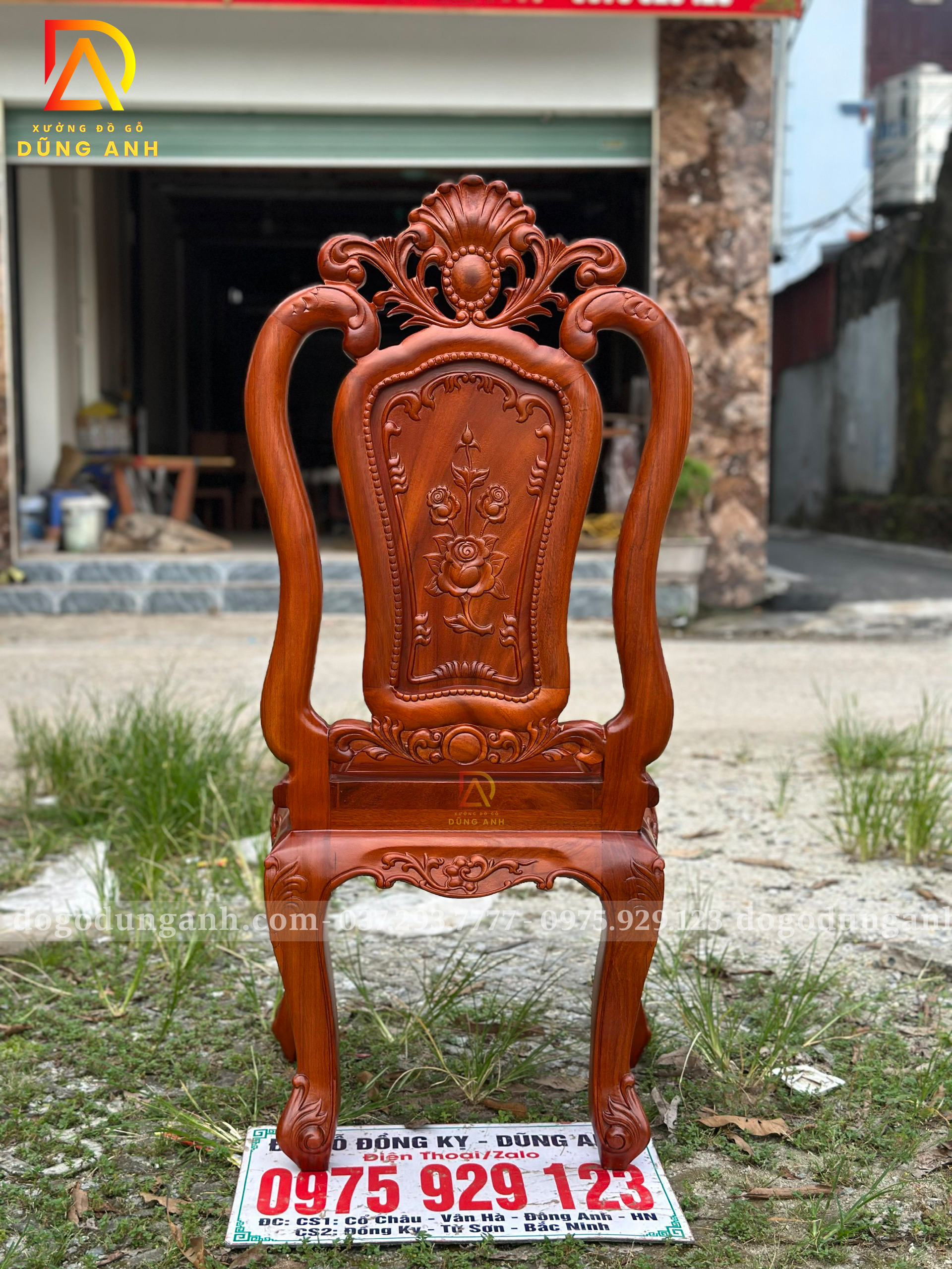 Bộ bàn ghế Louis 6 ghế hoa hồng kết hợp bàn Chữ Nhật gỗ Gõ Đỏ tự nhiên 100% chinh phục mọi ánh nhìn nhờ kiểu dáng hoàng gia sang trọng, hoa văn chạm tinh xảo và chất liệu gỗ quý cực bền. Thiết kế tối ưu cho nhà phố, căn hộ, biệt thự – vừa tiết kiệm diện tích, vừa nâng tầm giá trị không gian sống