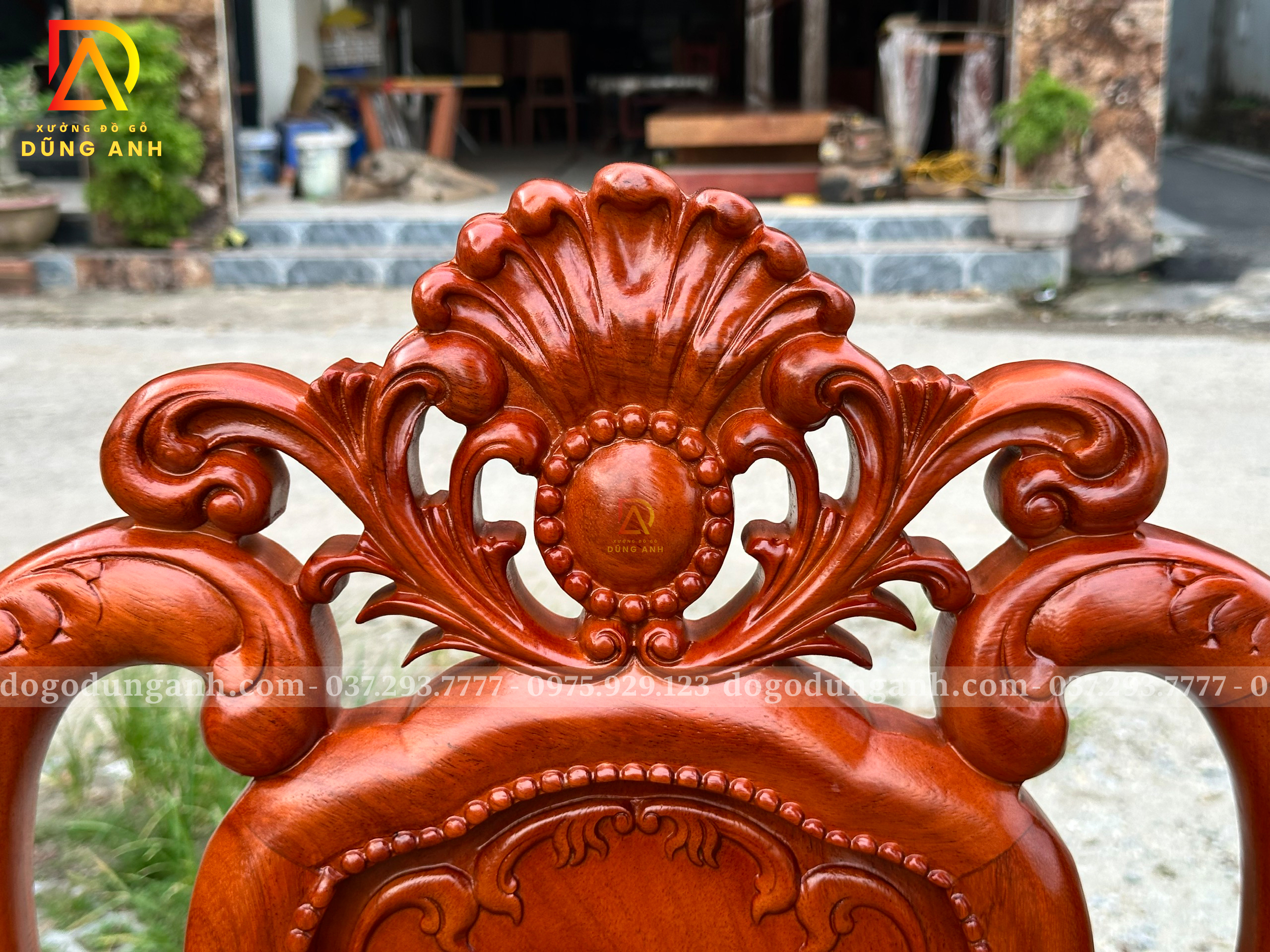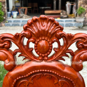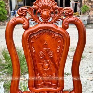 Bộ sản phẩm là sự kết hợp tinh hoa giữa nghệ thuật chạm khắc thủ công truyền thống và phong cách thiết kế mang hơi thở hoàng gia châu Âu. Mỗi chiếc ghế Louis được tạo tác với đường nét mềm mại, lưng tựa uốn lượn thanh thoát, điểm xuyết hoa văn chạm trổ tinh xảo – tất cả đều phản ánh tay nghề bậc thầy của những nghệ nhân dày dạn kinh nghiệm. Chân ghế và tay vịn được bố cục cân đối, vừa vững chắc vừa uyển chuyển, mang đến sự hài hòa tuyệt mỹ giữa tính thẩm mỹ và công năng, giúp người ngồi luôn tận hưởng cảm giác thoải mái, thư thái và sang trọng.