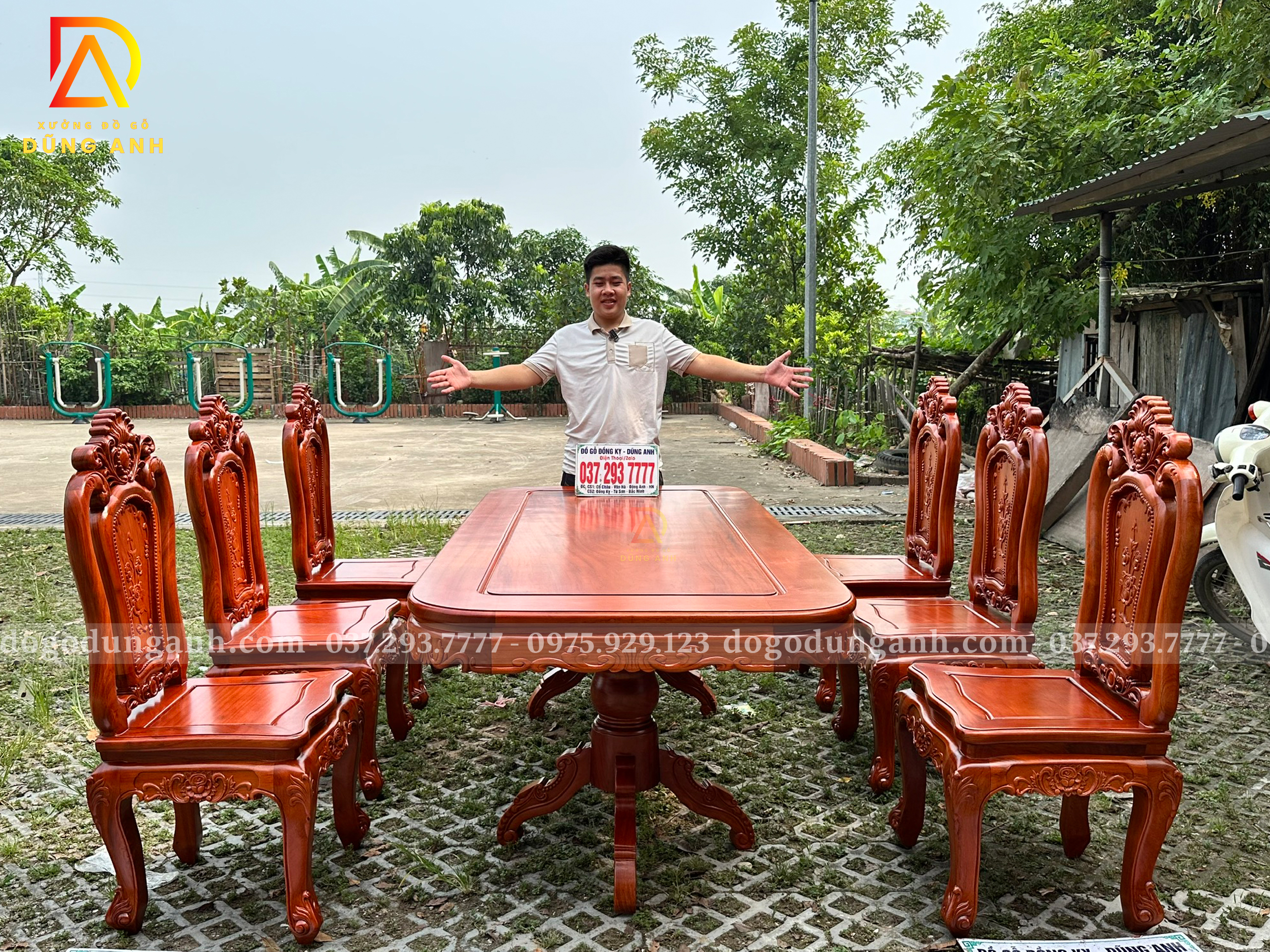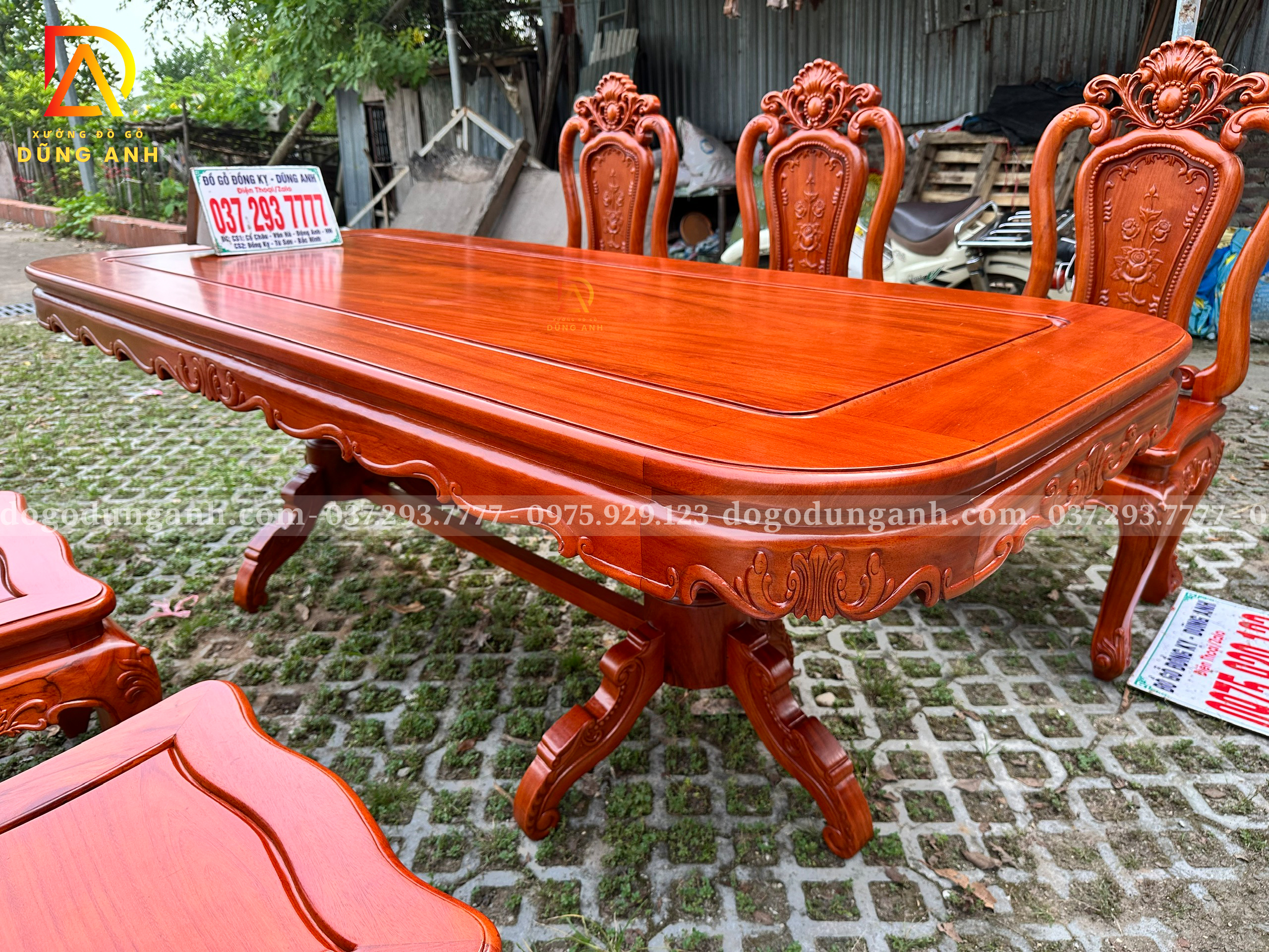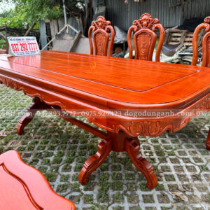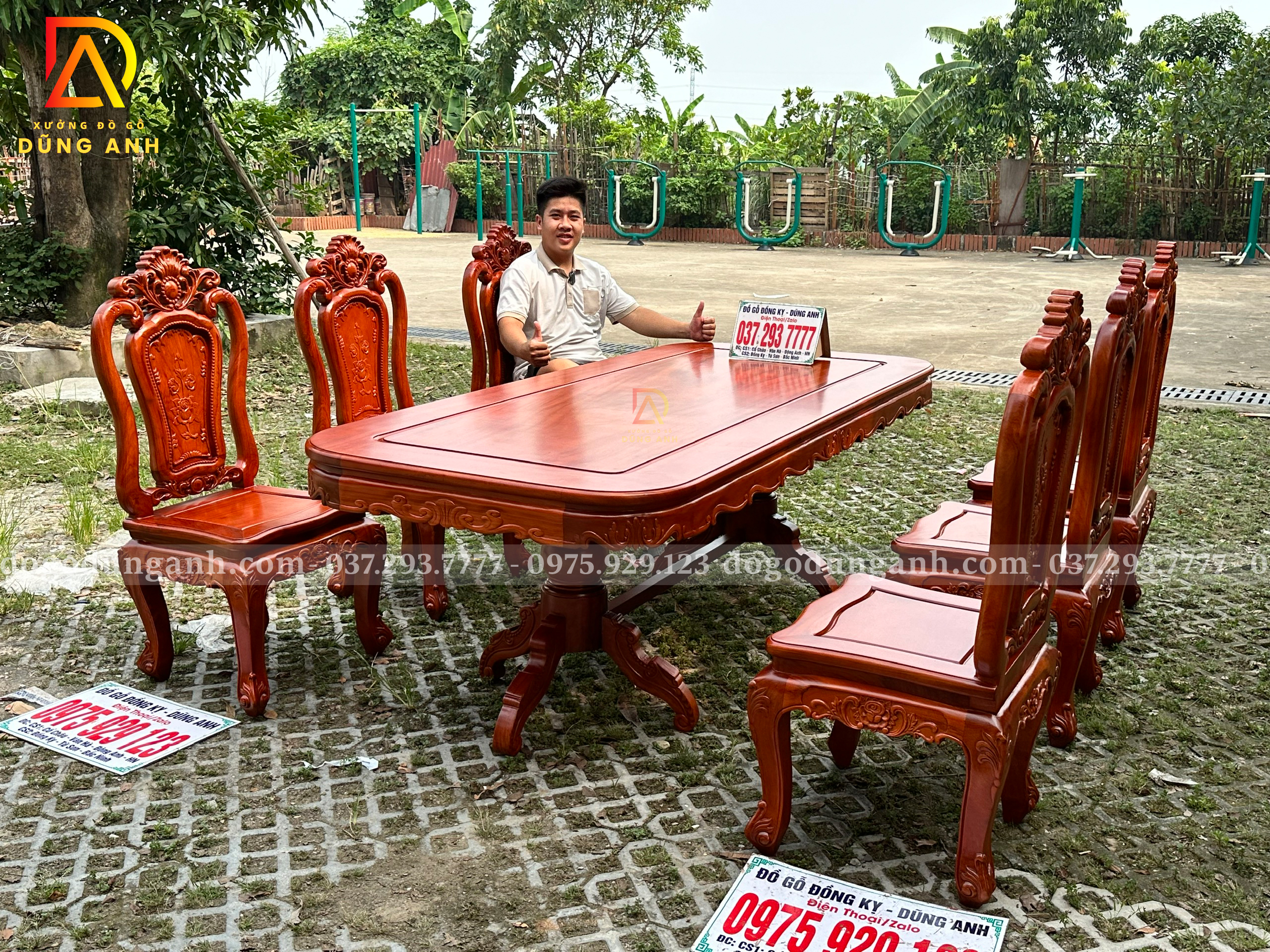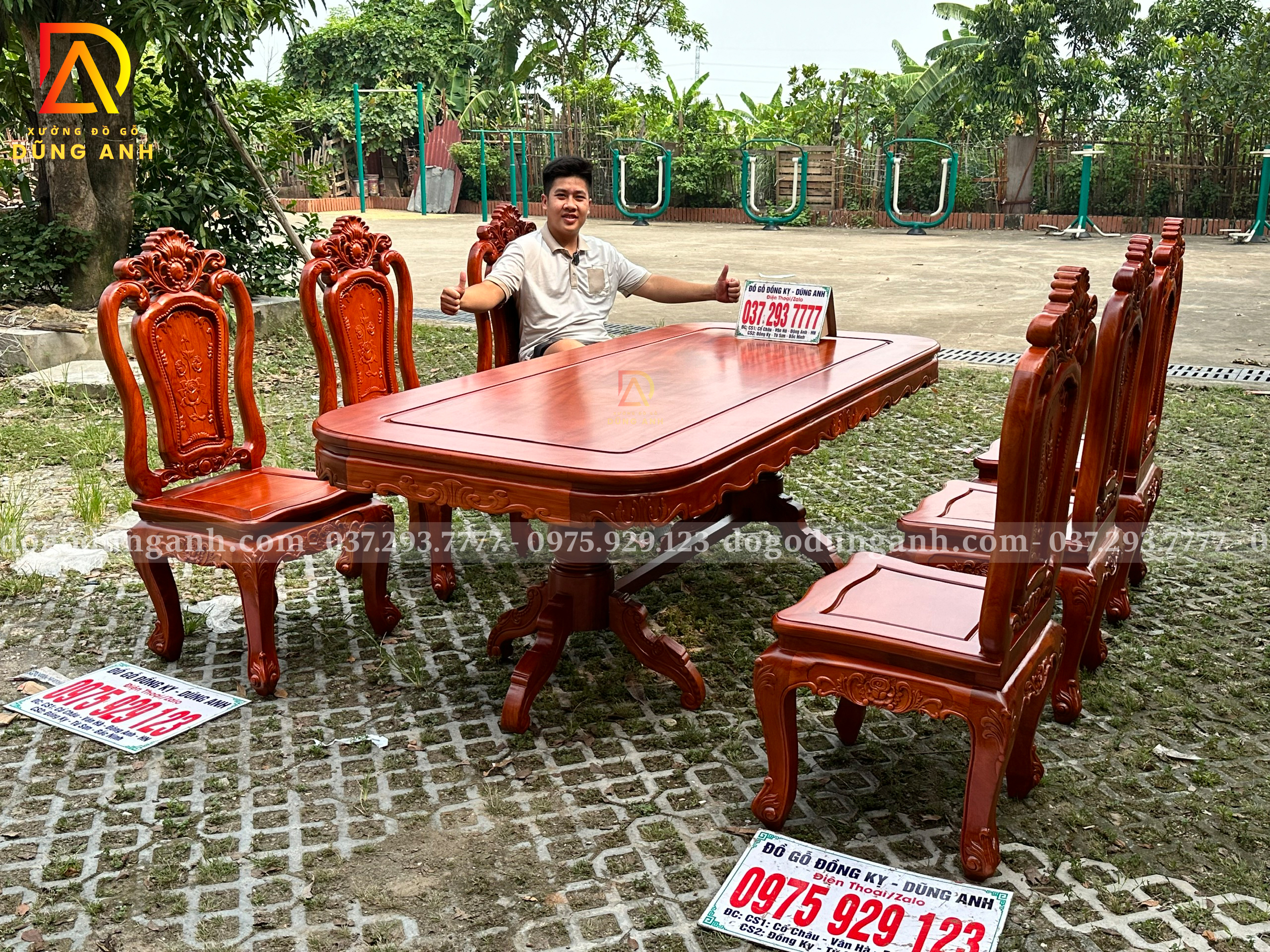 Đồ Gỗ Dũng Anh | Mẫu Bàn Ăn Siêu Vip 6 Ghế Louis Hoa Hồng Kết Hợp Bàn Chữ Nhật – Gỗ Gõ Đỏ