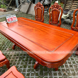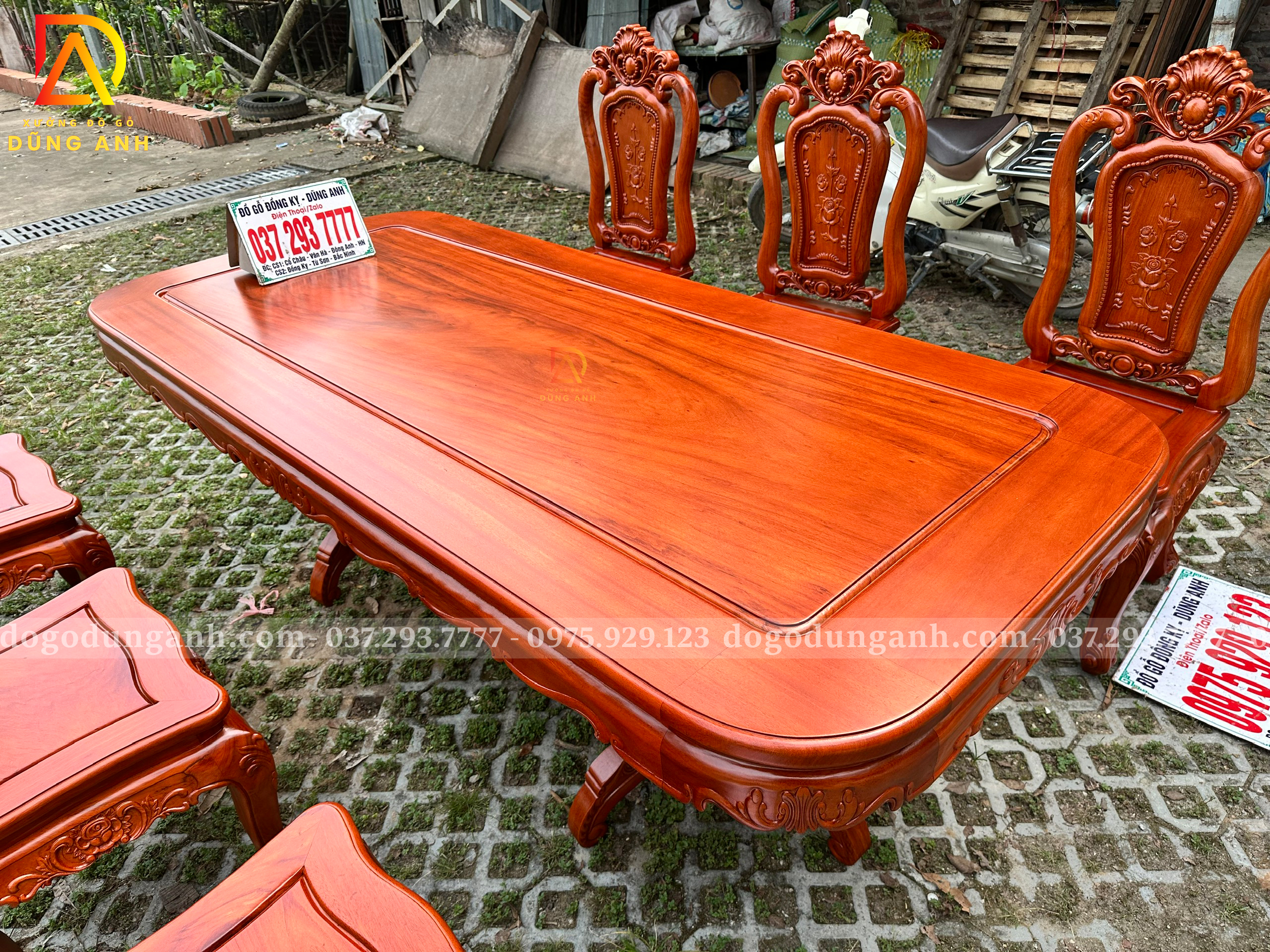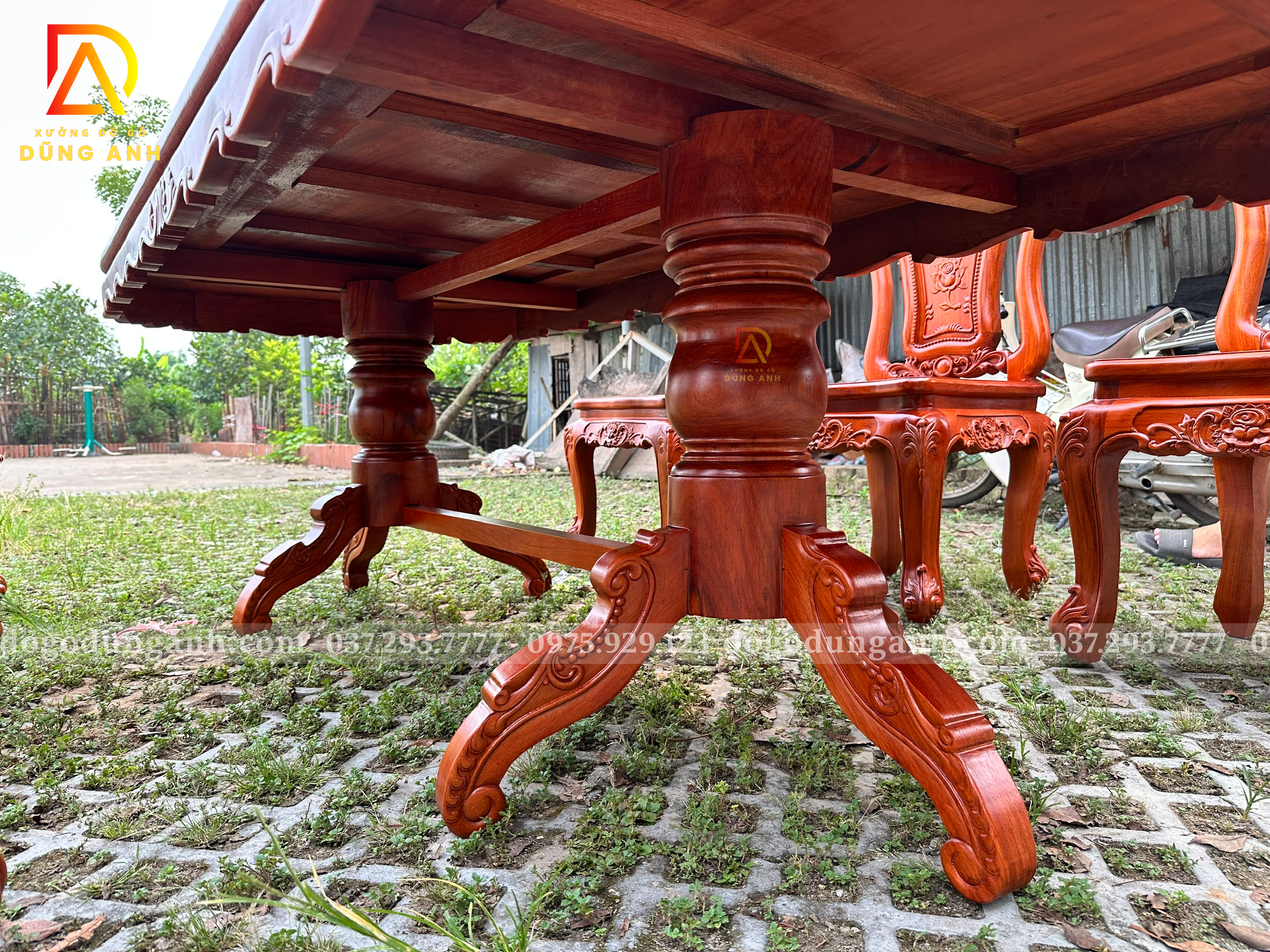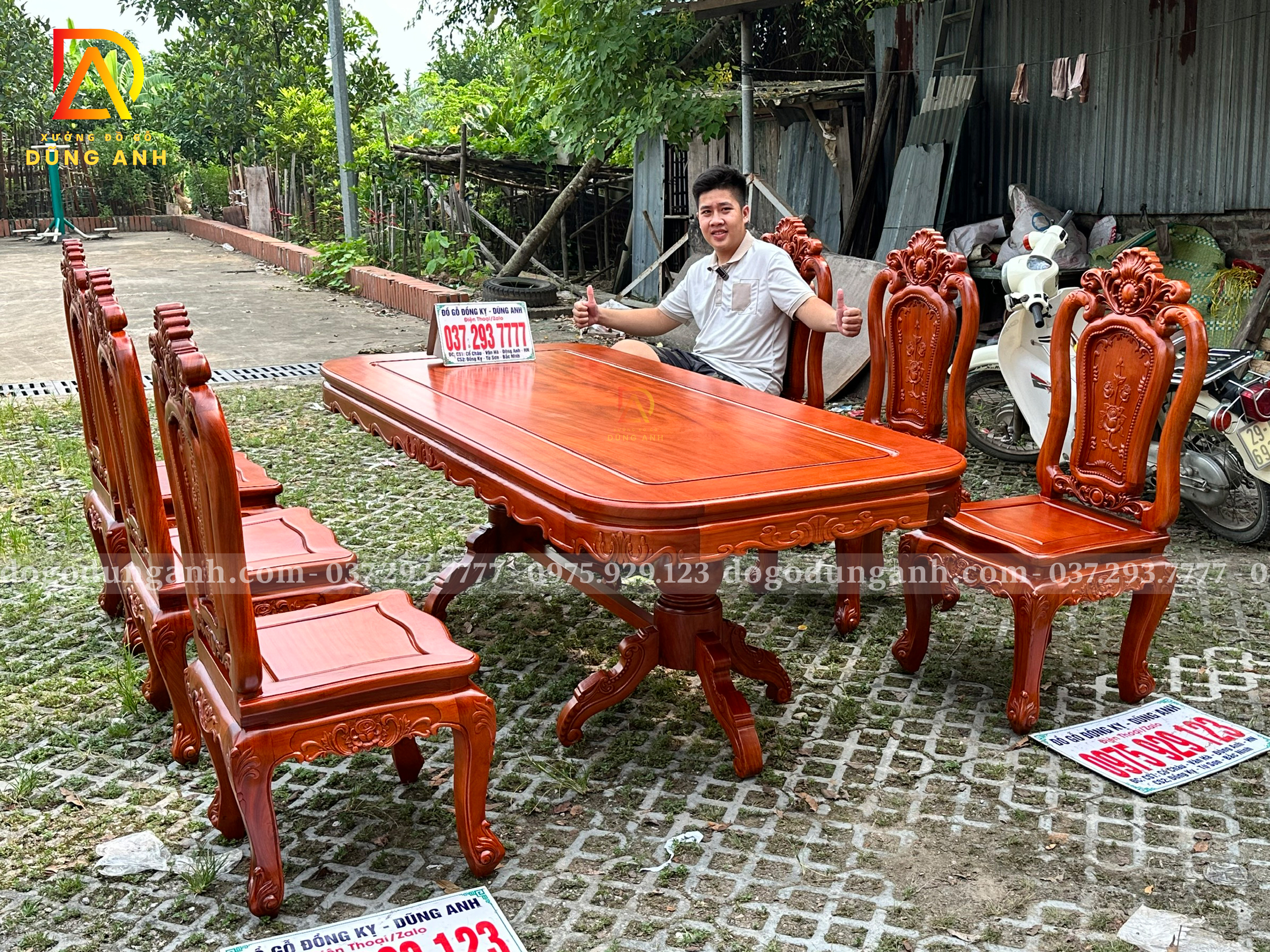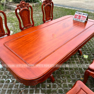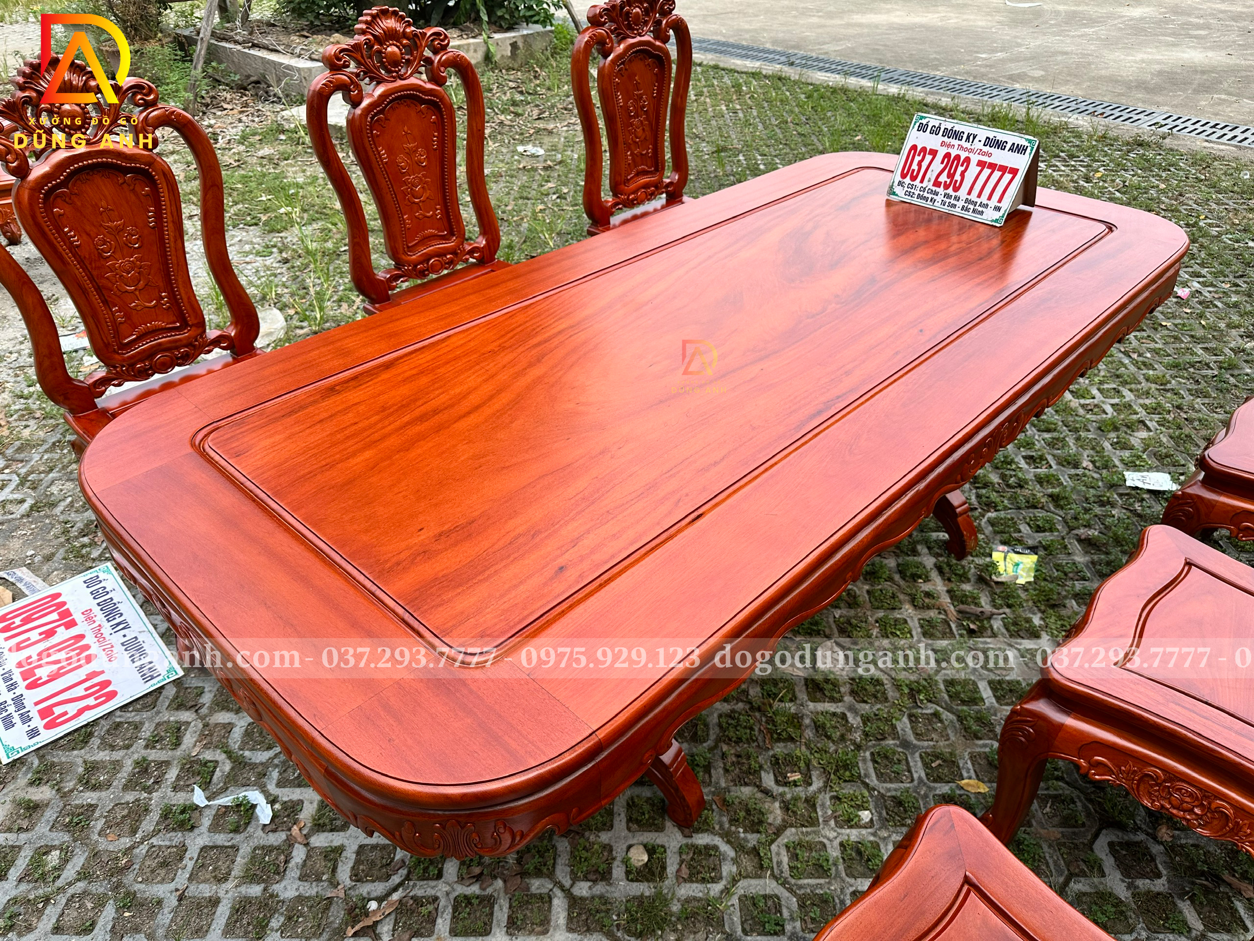 Đồ Gỗ Dũng Anh | Mẫu Bàn Ăn Siêu Vip 6 Ghế Louis Hoa Hồng Kết Hợp Bàn Chữ Nhật – Gỗ Gõ Đỏ