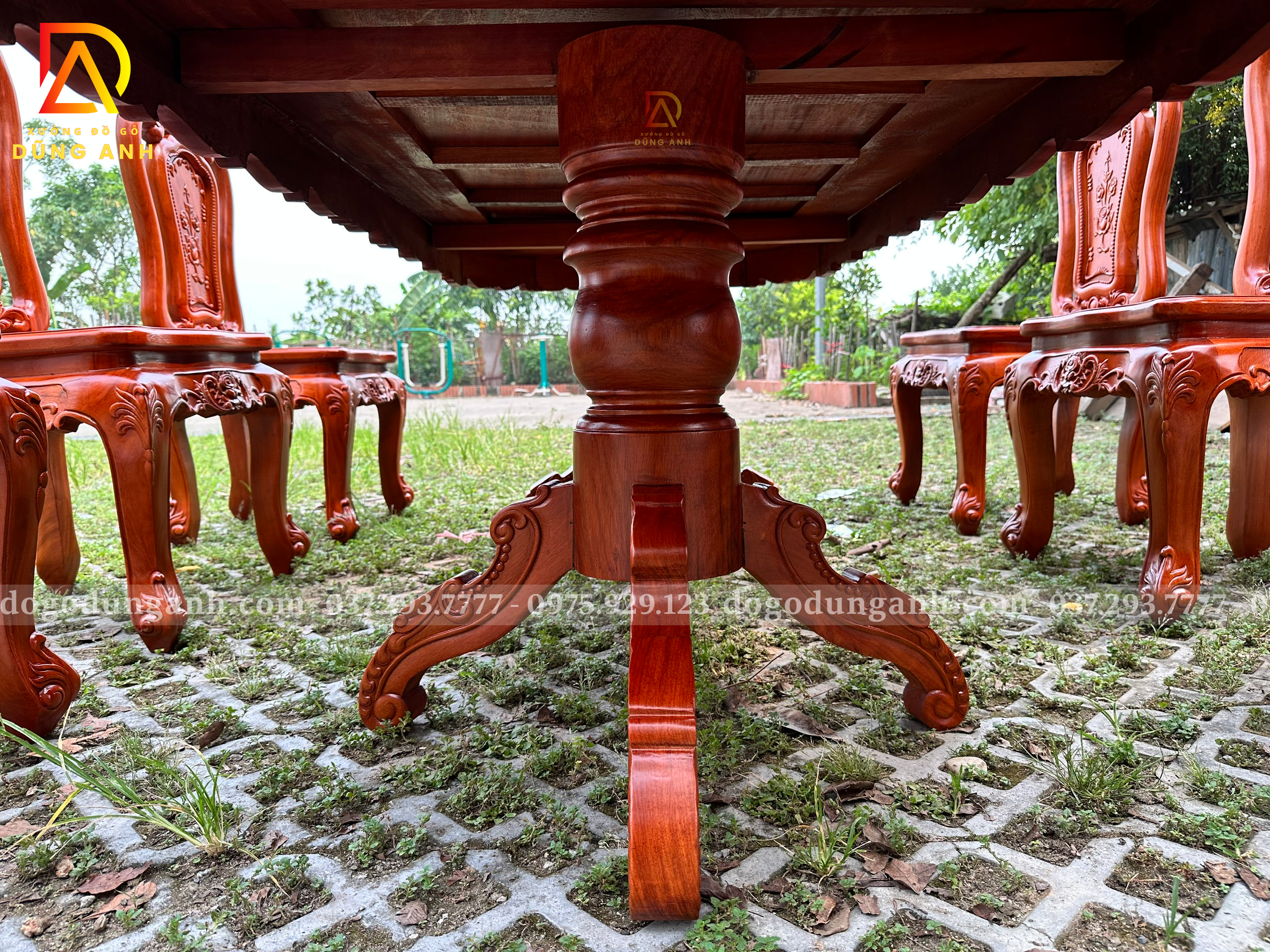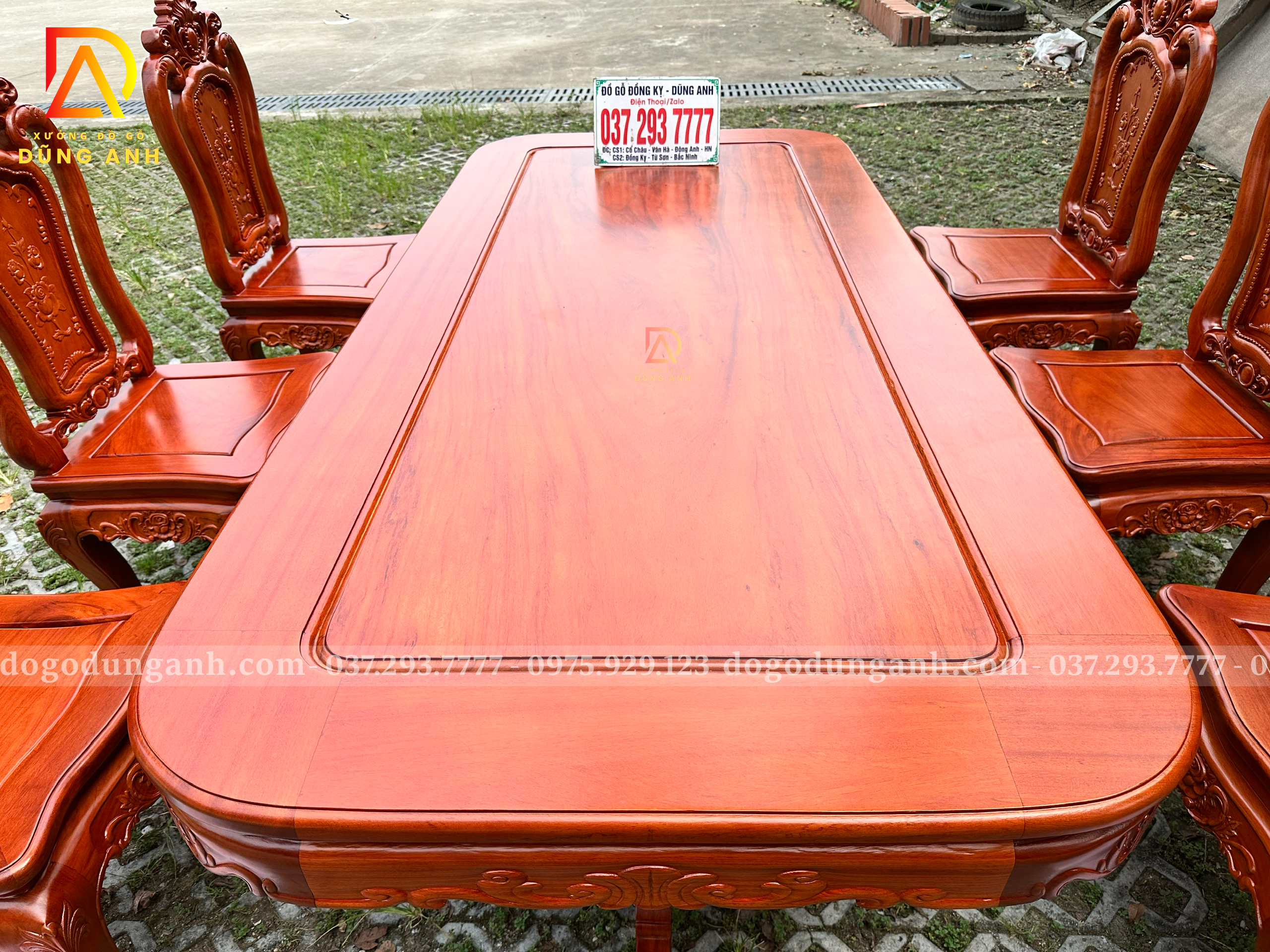 Không chỉ bền đẹp về chất liệu, Gõ Đỏ Pachy còn gây ấn tượng bởi màu đỏ nâu trầm ấm, vân gỗ đều và sắc nét, thể hiện sự quý phái, quyền uy và đẳng cấp của gia chủ. Khi được chế tác thành bộ bàn ăn, từng chi tiết đều toát lên vẻ tinh tế và sang trọng, vừa đáp ứng nhu cầu sử dụng tiện nghi, vừa là điểm nhấn nghệ thuật trong không gian sống.