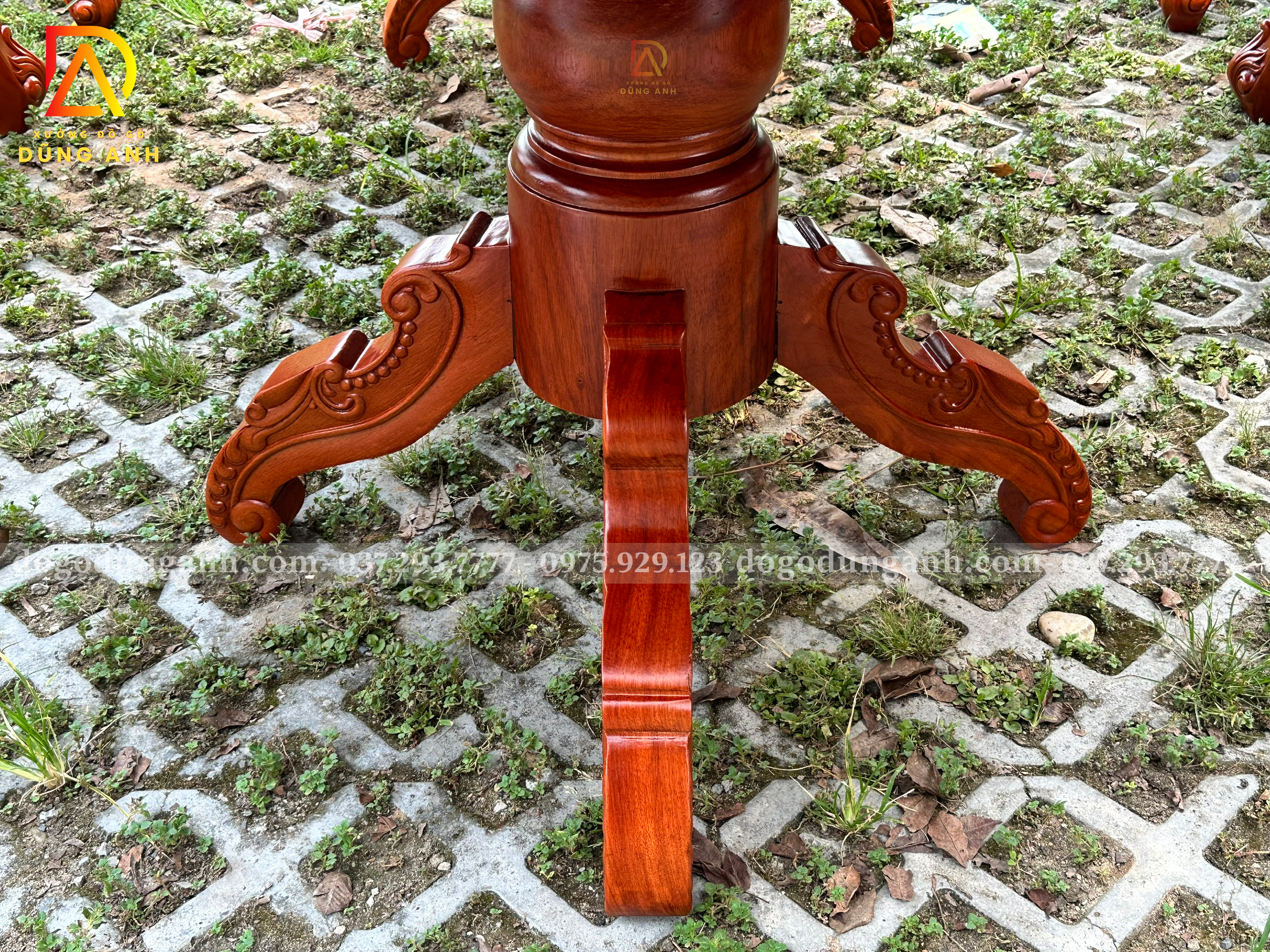Toàn bộ sản phẩm được chế tác từ gỗ Gõ Đỏ – một trong những loại gỗ quý hiếm và được ưa chuộng bậc nhất trong lĩnh vực nội thất cao cấp. Gỗ Gõ Đỏ nổi tiếng với màu đỏ nâu trầm ấm, càng dùng lâu càng bóng đẹp, thể hiện nét sang trọng, quyền quý và đẳng cấp vượt thời gian. Vân gỗ rõ nét, đều và mềm mại, tạo nên vẻ đẹp tự nhiên, cuốn hút khó loại gỗ nào sánh kịp. Không chỉ đẹp, gỗ Gõ Đỏ còn có độ cứng và độ bền cực cao, khả năng chống mối mọt, nứt nẻ và cong vênh vượt trội, giúp sản phẩm luôn giữ được hình dáng và chất lượng qua nhiều năm sử dụng. Bên cạnh giá trị thẩm mỹ và độ bền, gỗ Gõ Đỏ còn được xem là biểu tượng của tài lộc, may mắn và sự thịnh vượng, mang đến năng lượng tích cực và phong thủy tốt cho gia chủ. Chính vì vậy, các sản phẩm làm từ gỗ Gõ Đỏ luôn là sự lựa chọn hoàn hảo cho những ai yêu thích sự tinh tế, bền vững và đẳng cấp trong không gian sống.