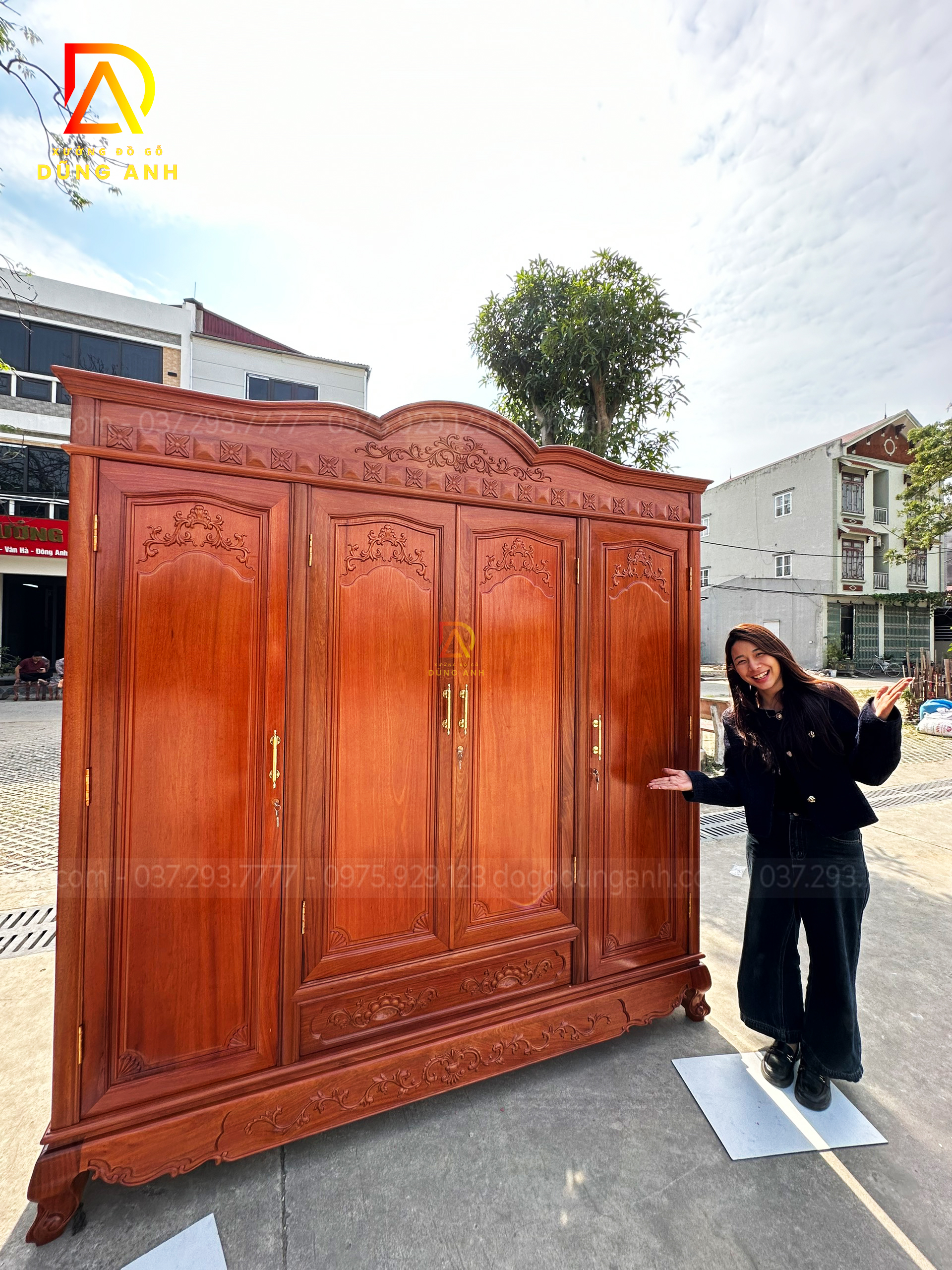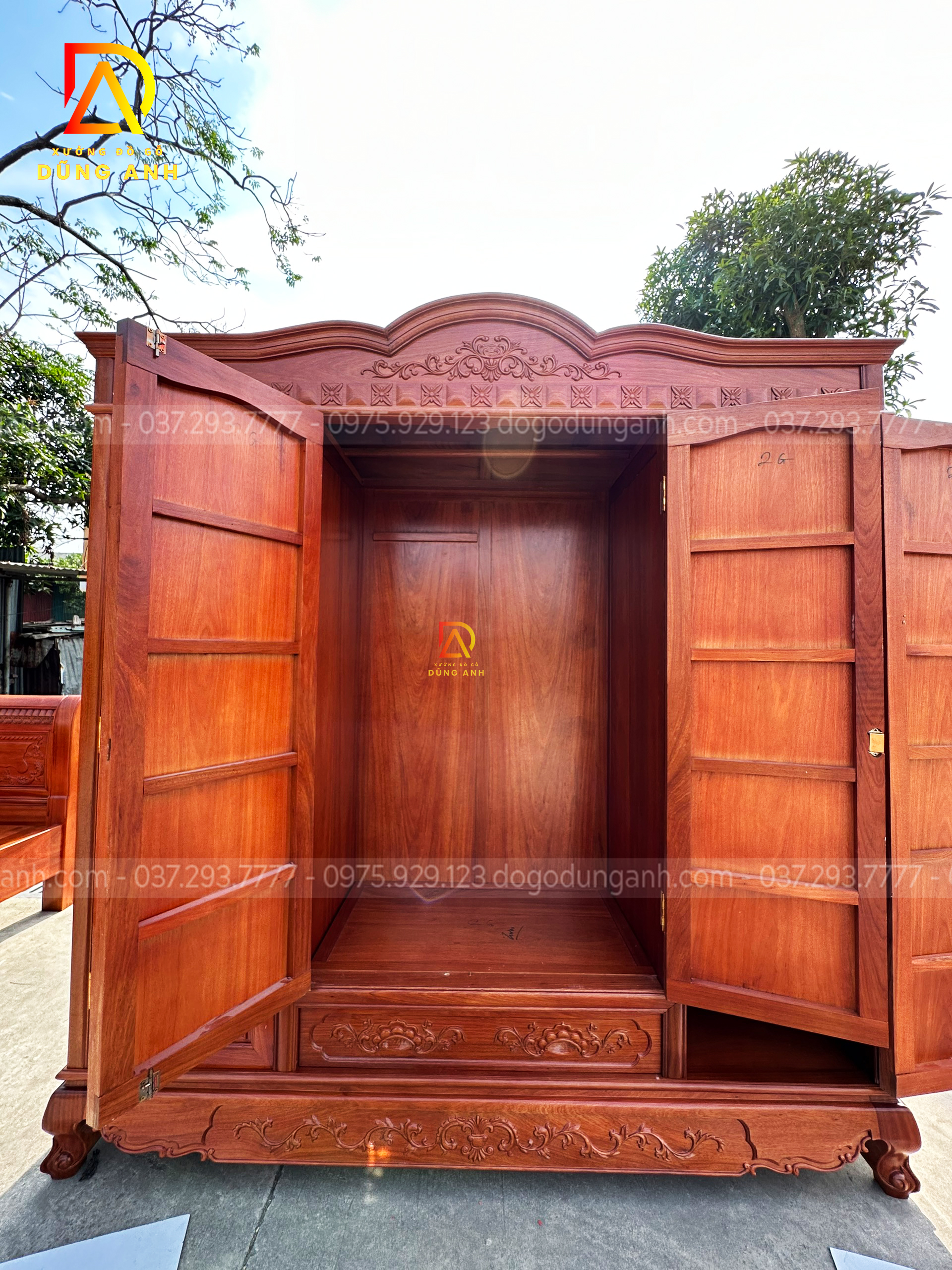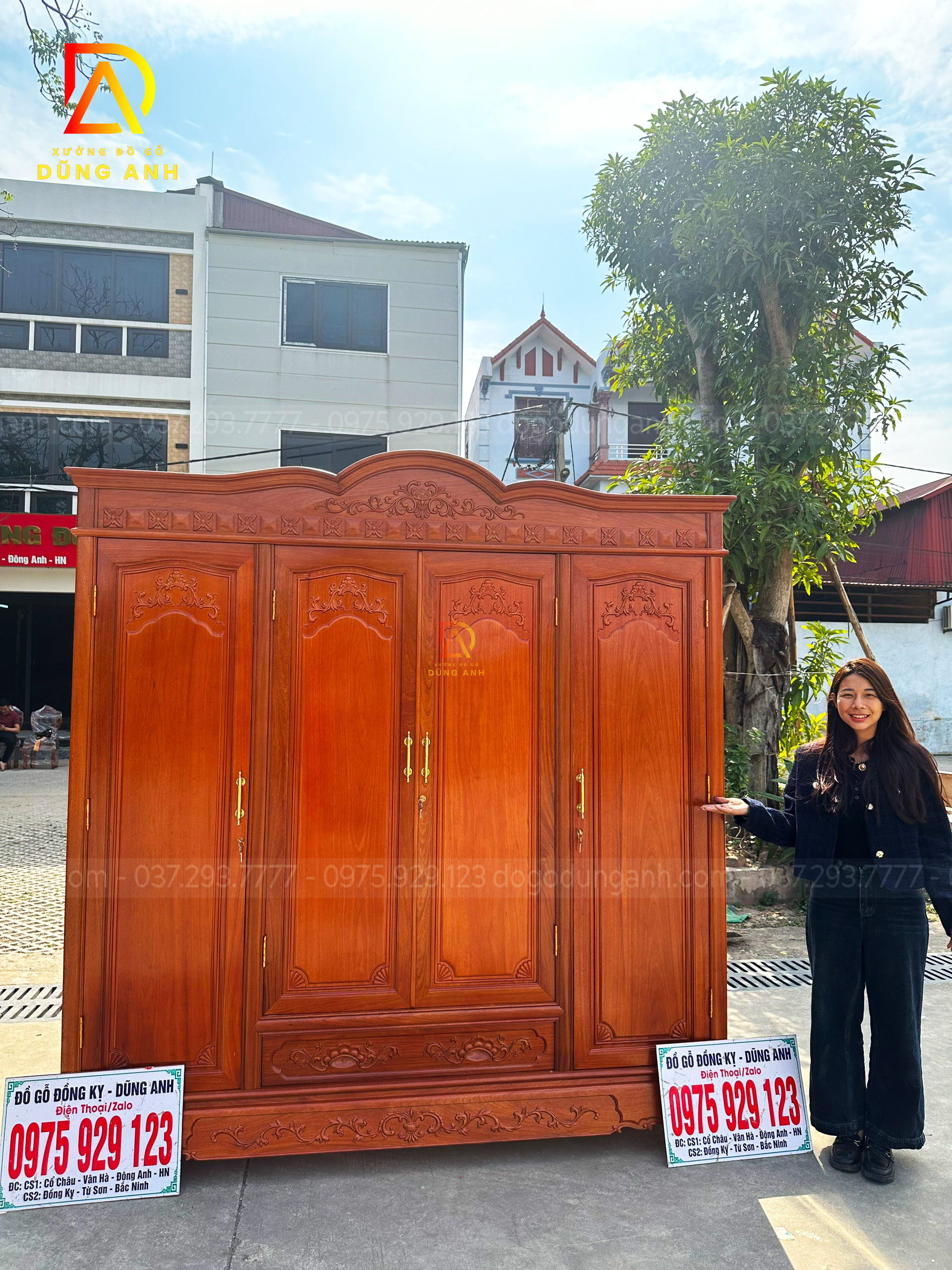 Đồ Gỗ Dũng Anh | Mẫu tủ quần áo 3 buồng 4 cánh Gỗ Gõ đỏ