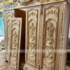 - Đỉnh tủ thiết kế dạng vòm cong đục họa tiết lá tây nhẹ nhàng – Mặt cánh chạm họa tiết tạo khung đẹp mắt càng làm gia tăng vẻ đẹp sang trọng và nổi bật cho sản phẩm.
