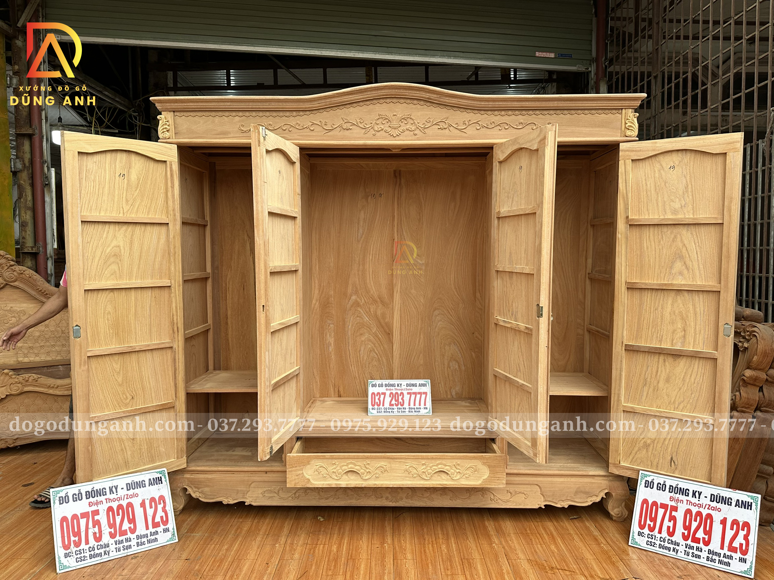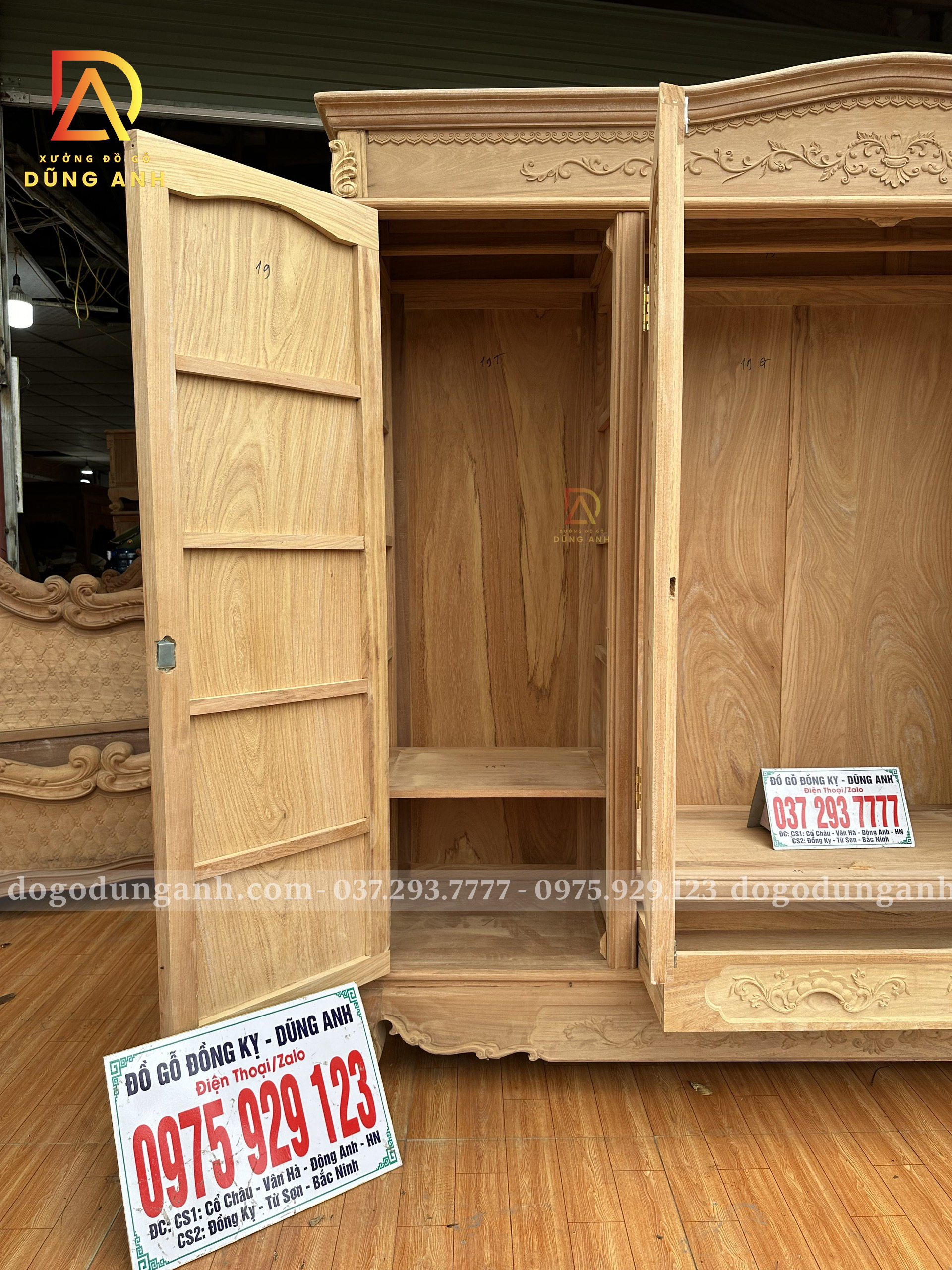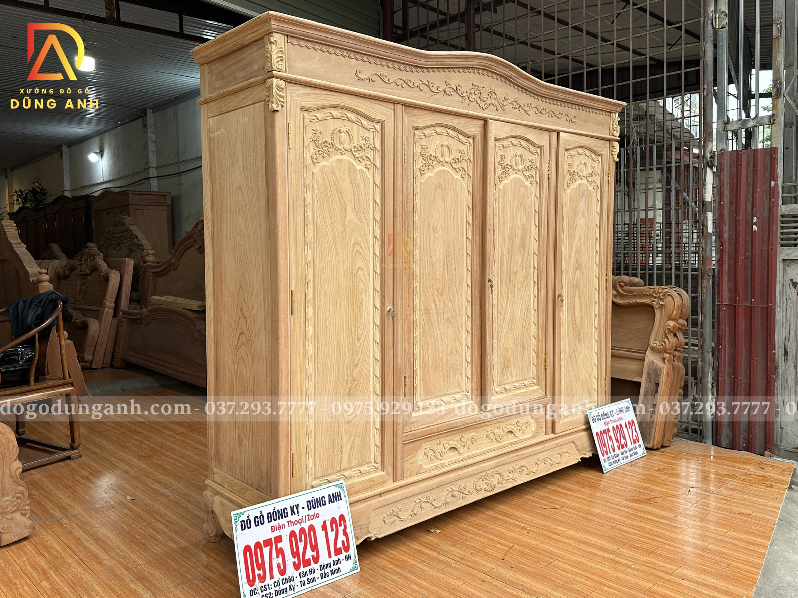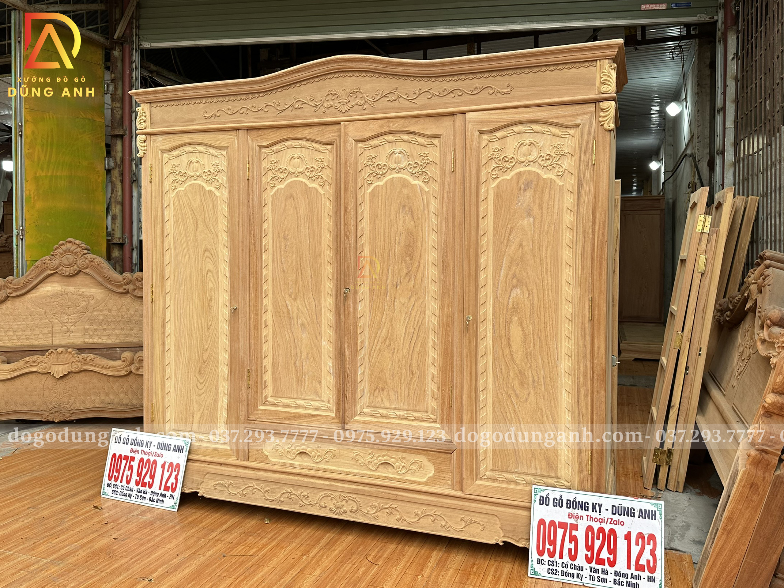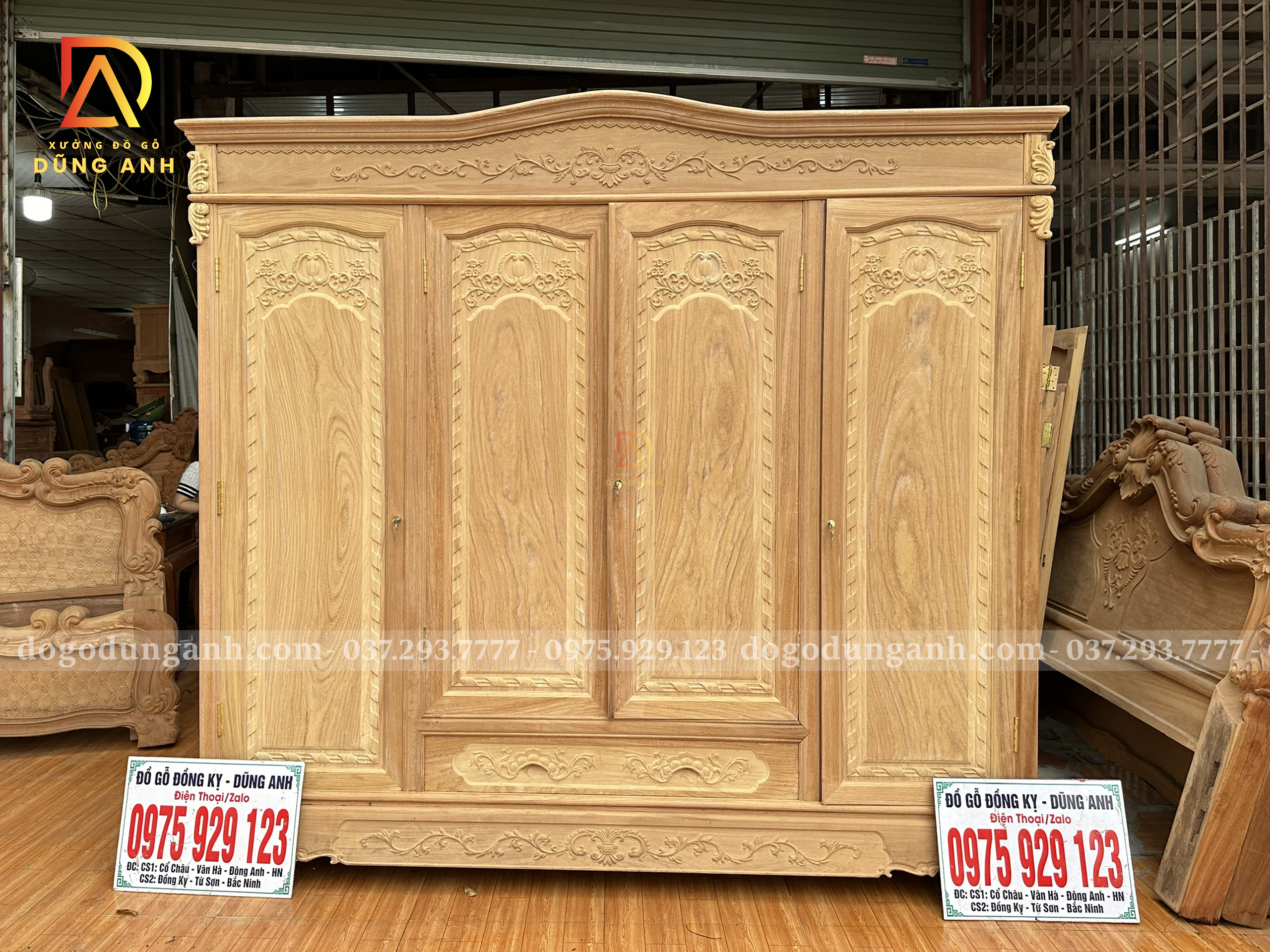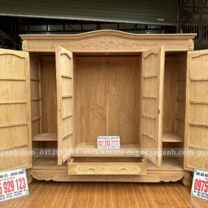 Mẫu Tủ Quần Áo 3 buồng 4 cánh Gỗ Gõ Đỏ VIP
