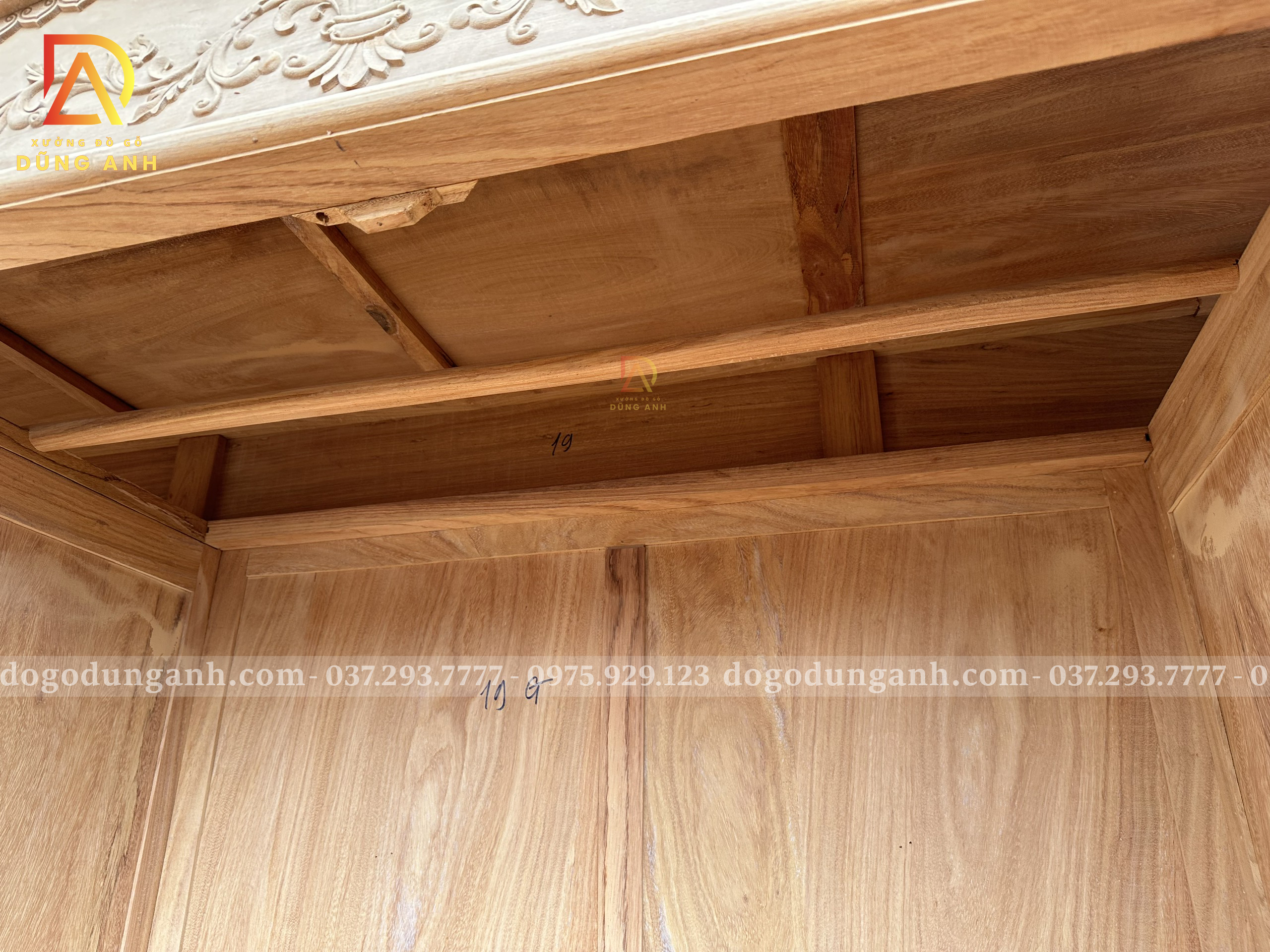 - Mặt trong của tủ cũng được thiết kế ván liền hàng làm kỹ đánh giáp bóng mịn.