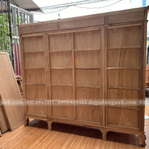 Mặt sau của tủ cùng được thiết kế từ chất liệu gỗ Gõ Đỏ như mặt trước đảm bảo không pha gỗ tạp và được thiết kế khung tranh ván liền được gia cố nhiều thang ngang chịu lực để đảm bảo độ chắc chắn, bền bỉ lâu dài cho sản phẩm.