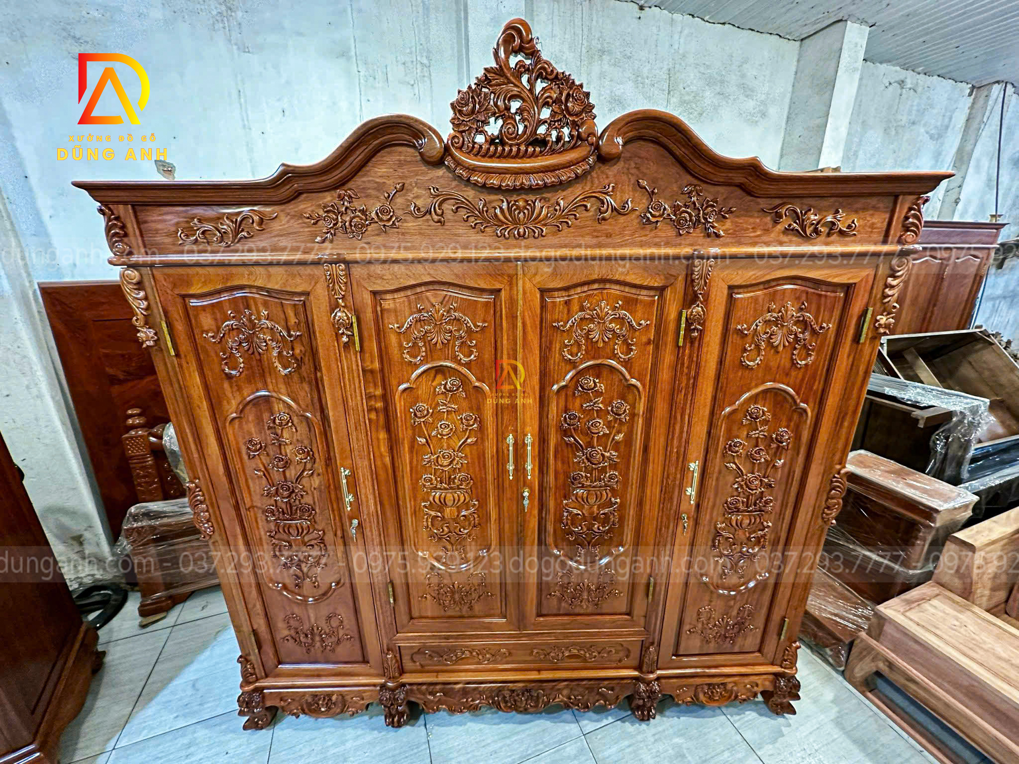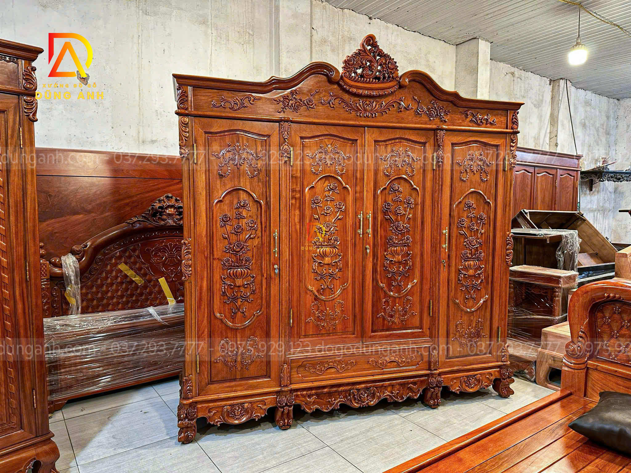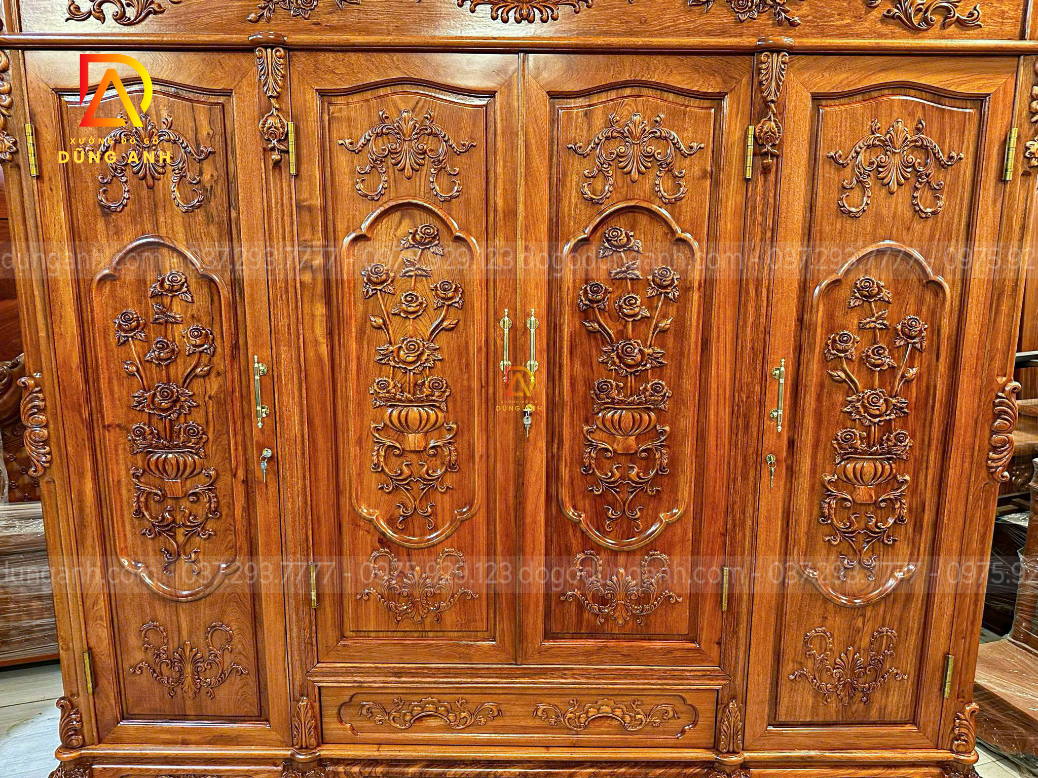 Đồ Gỗ Dũng Anh | Mẫu tủ quần áo Hoa Hồng 3 buồng 4 cánh-Gỗ Hương Đá
