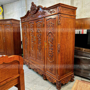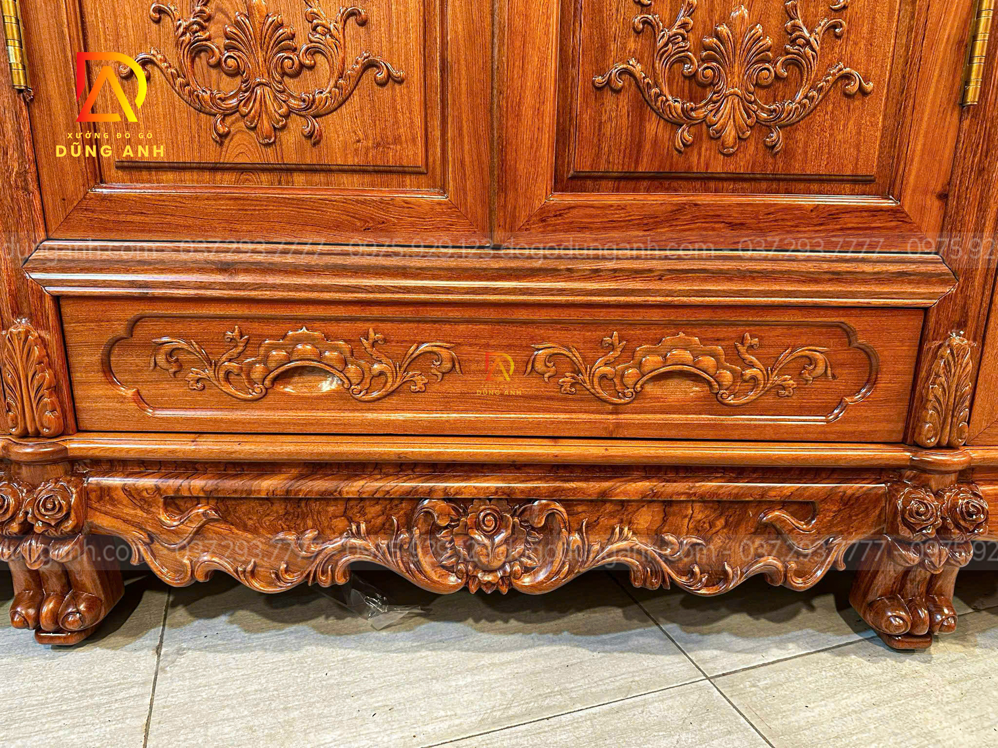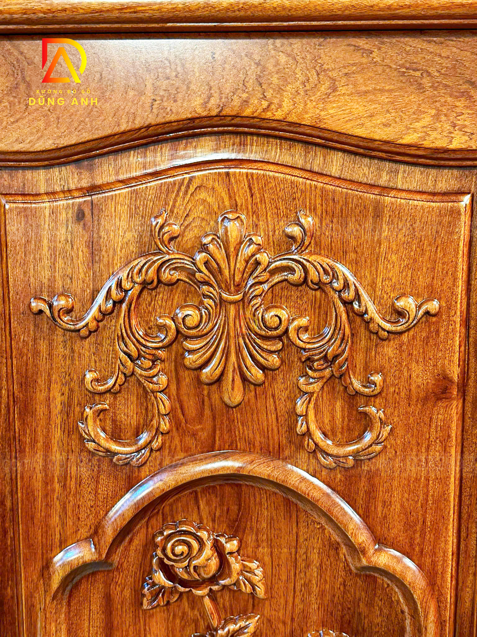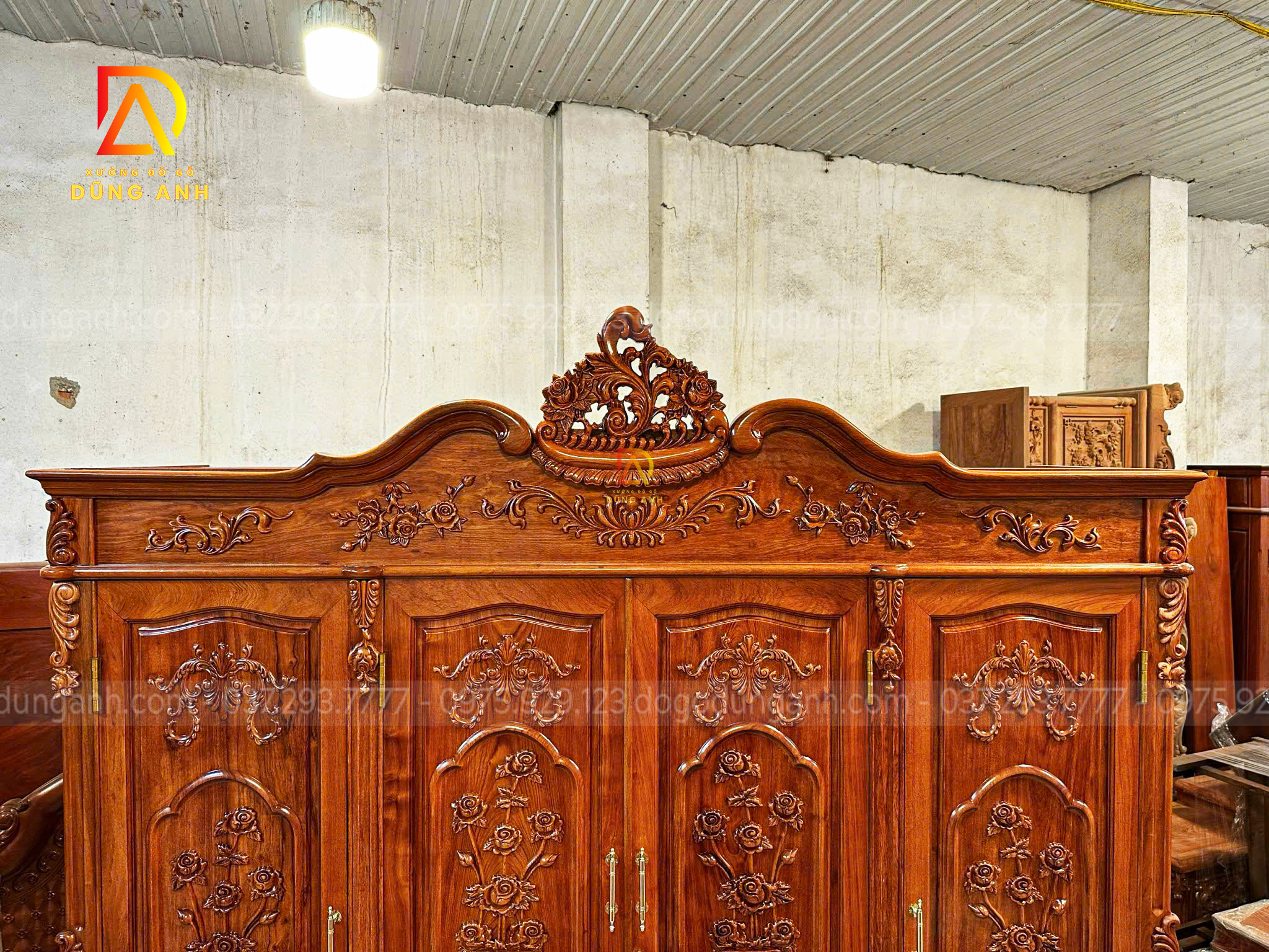 Đồ Gỗ Dũng Anh | Mẫu tủ quần áo Hoa Hồng 3 buồng 4 cánh-Gỗ Hương Đá