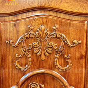 - Mặt ngăn kéo chạm họa tiết hoa lá tây tạo điểm nhấn nhẹ nhàng tạo sự đồng điệu tổng thể cho mẫu sản phẩm.