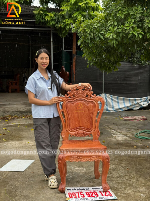 🔸 Ghế Louis Hoàng Gia nổi bật với phần lưng uốn lượn, chương ghế chạm trổ tinh tế và vai cong mềm mại. Mỗi chi tiết đều được hoàn thiện tỉ mỉ, thể hiện sự khéo léo của bàn tay người thợ