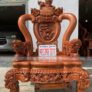 - Ở mỗi chiếc ghế đơn thì bản chương đều được đục trạm tạo hình ” Nghê ôm cầu đạp chân mây ”