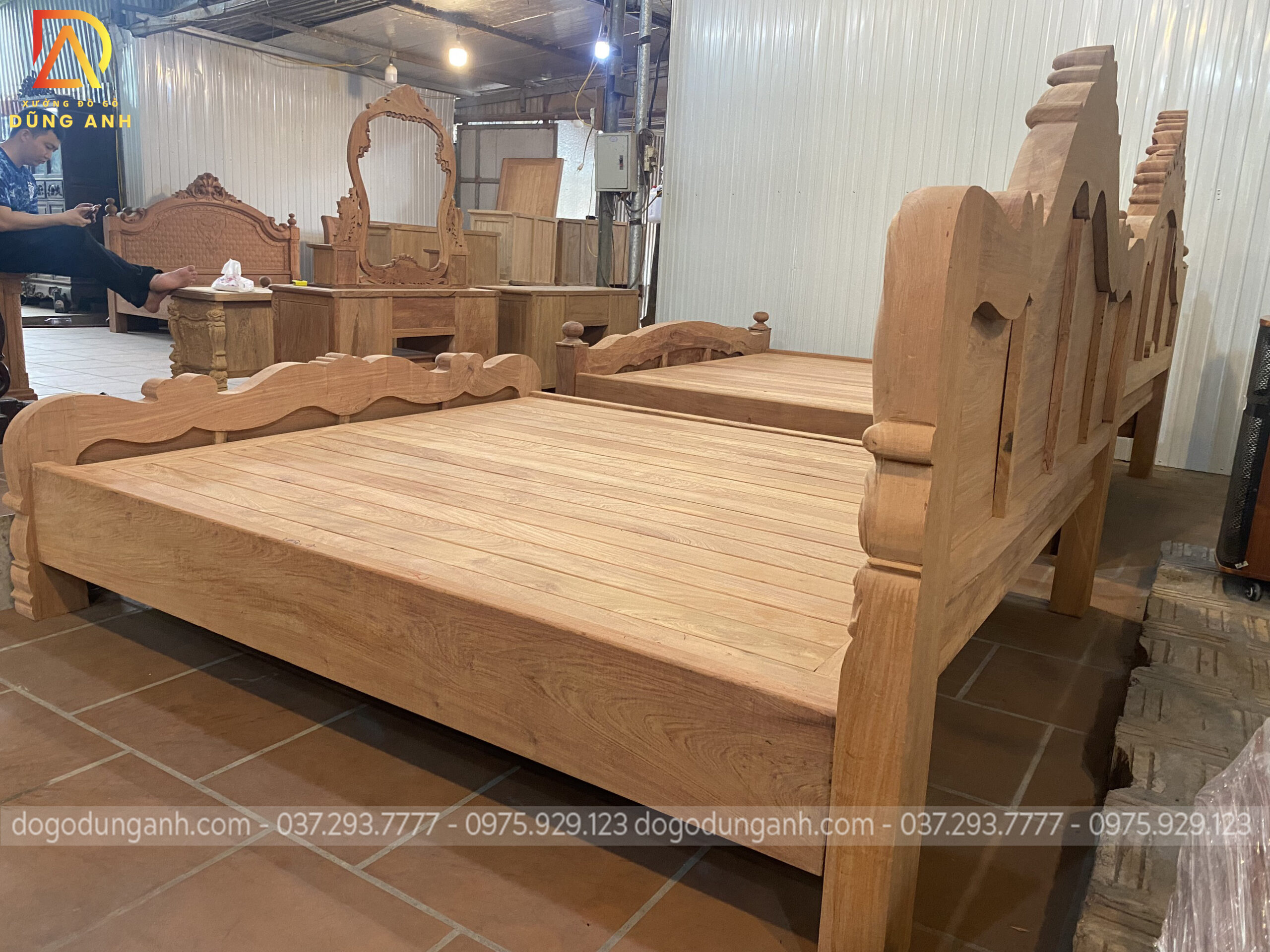Giường Hoa Lá Tây Trơn chất liệu gỗ hương đá vô cùng đẳng cấp