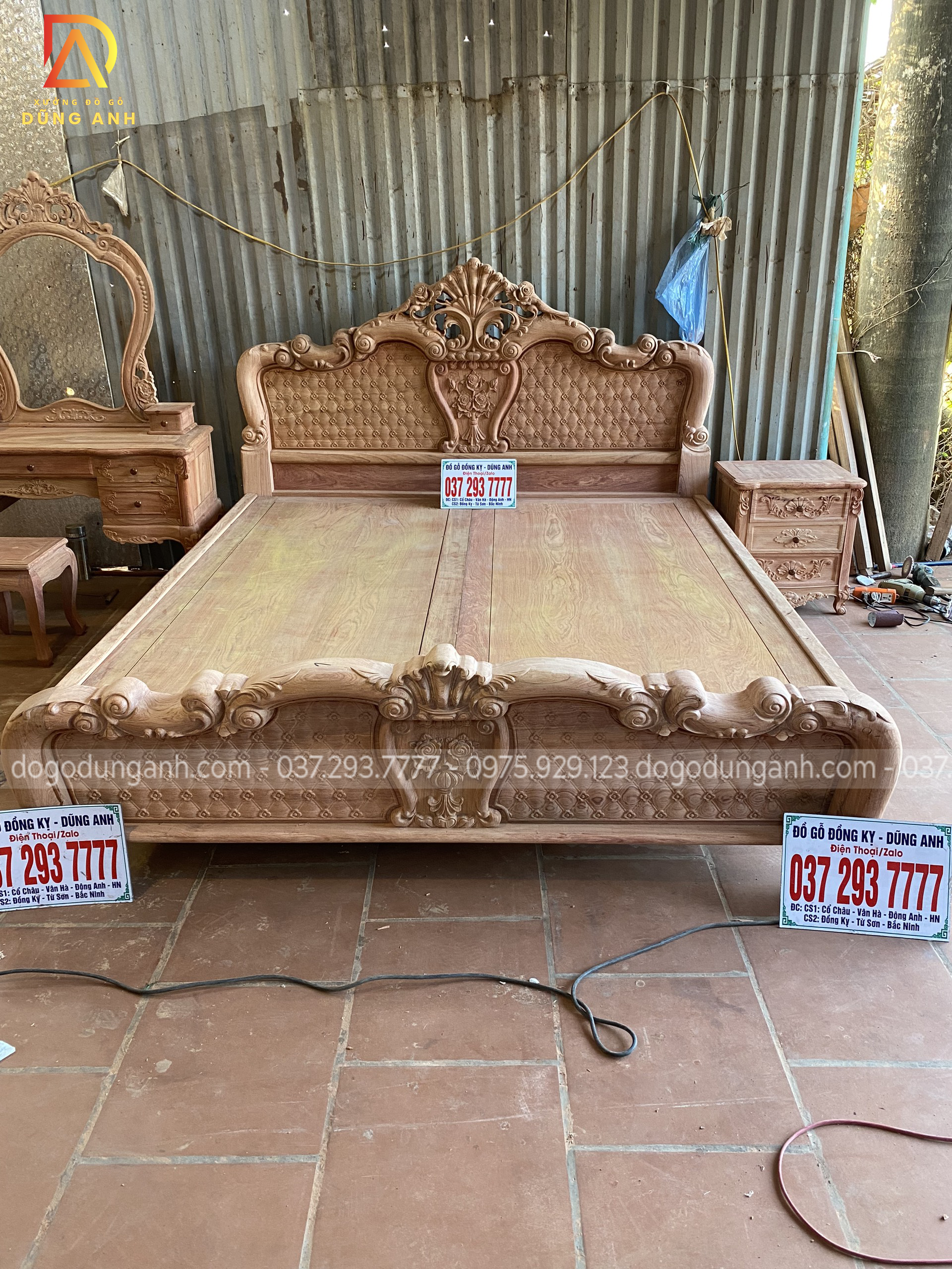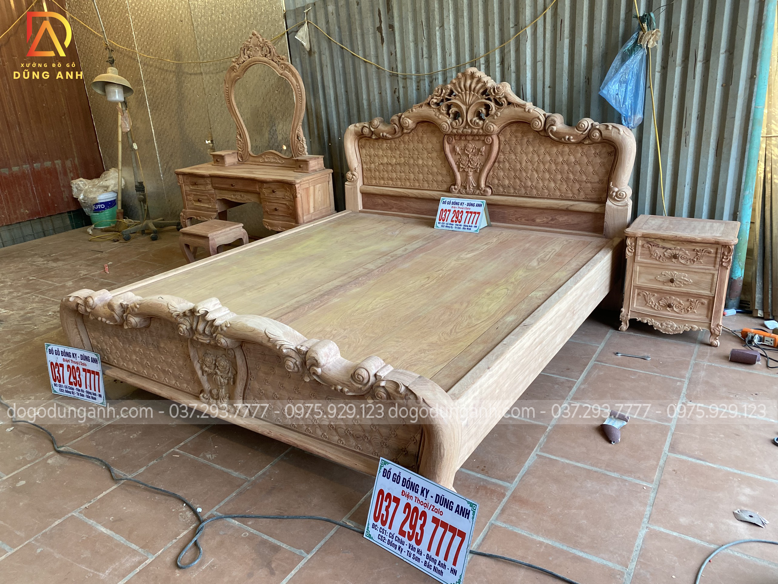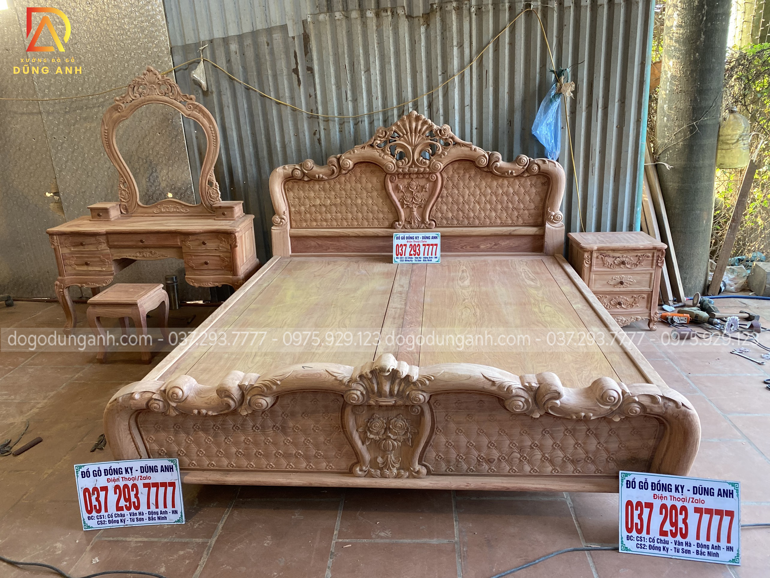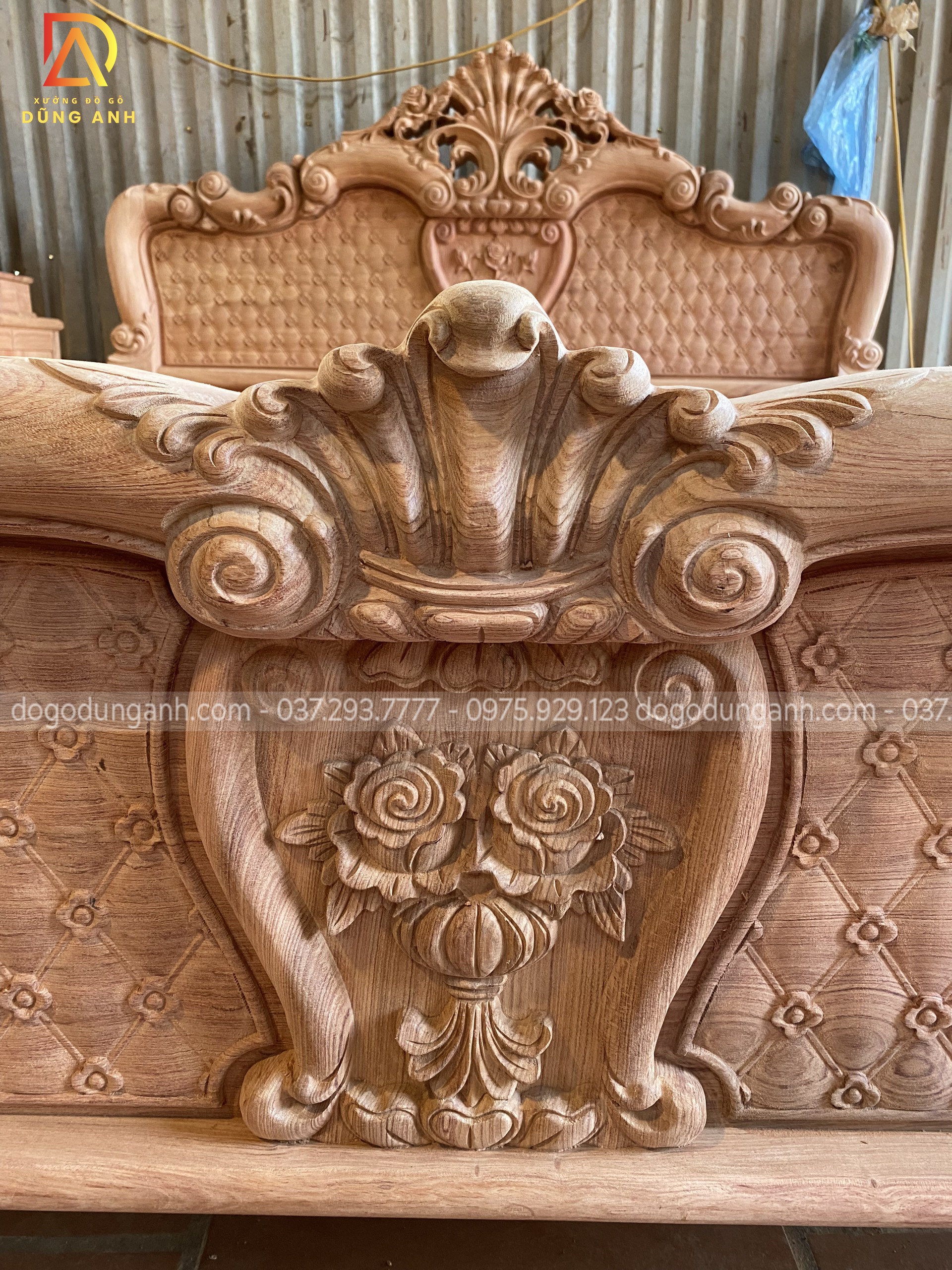 Mẫu giường ngủ được các nghệ nhân trong đồ gỗ Dũng Anh sản xuất bằng gỗ hương quý hiếm.