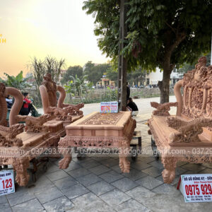 Bộ bàn ghế minh quốc nghê bảo đỉnh tay 15 gỗ hương đá 6 món siêu vip – Anh Bắc, Hải Phòng